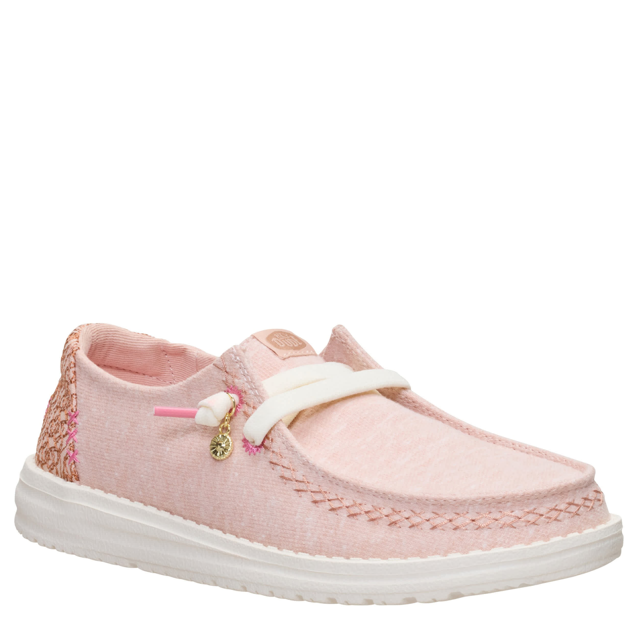Take a well-deserved break in the HEYDUDE Wendy Break Surf slip-on sneaker. With a woven upper featuring a stitched trim and contrasting heel, this slip-on also has a metal lace charm. The removable insole offers cushioning, while the lightweight outsole is flexible enough to set you free to explore.