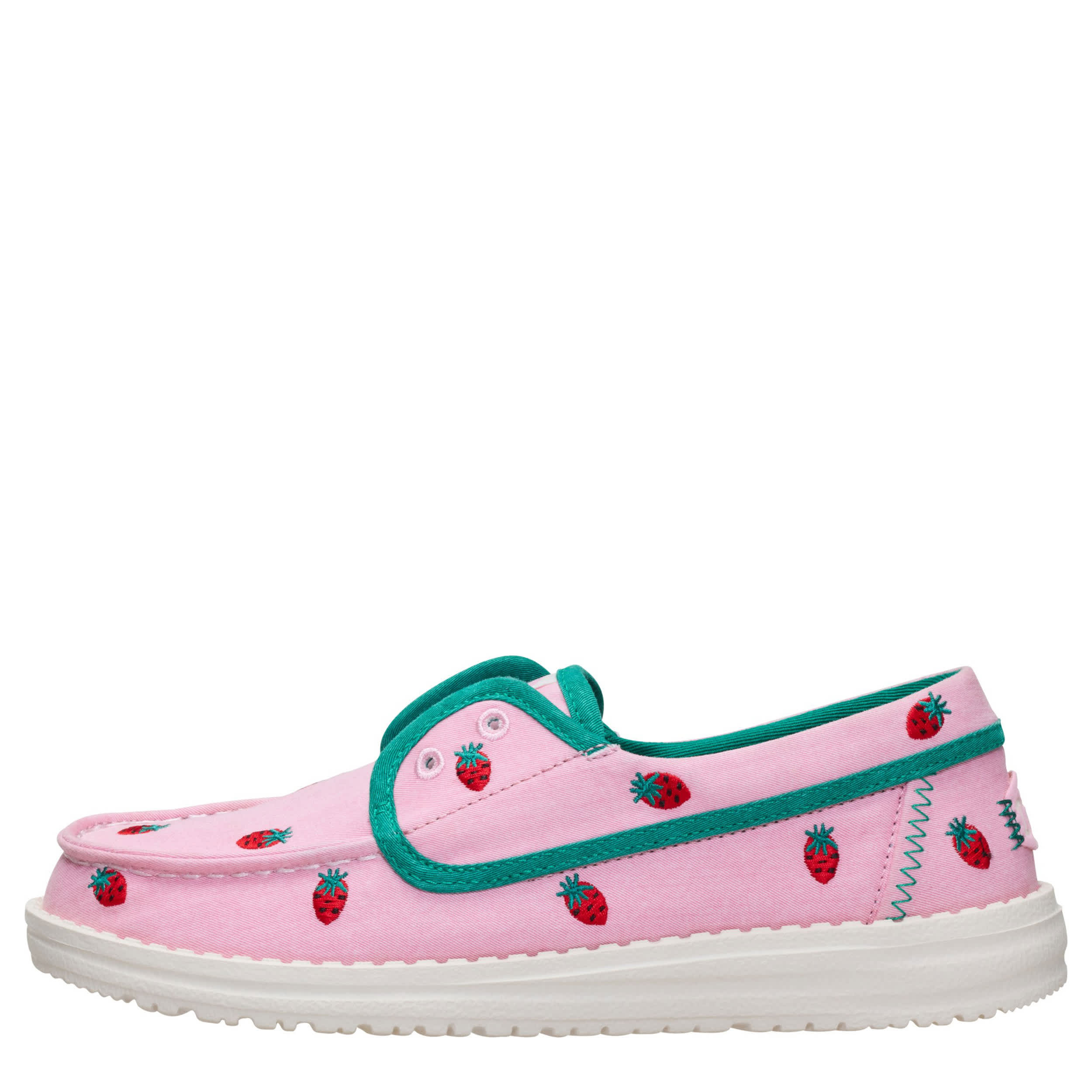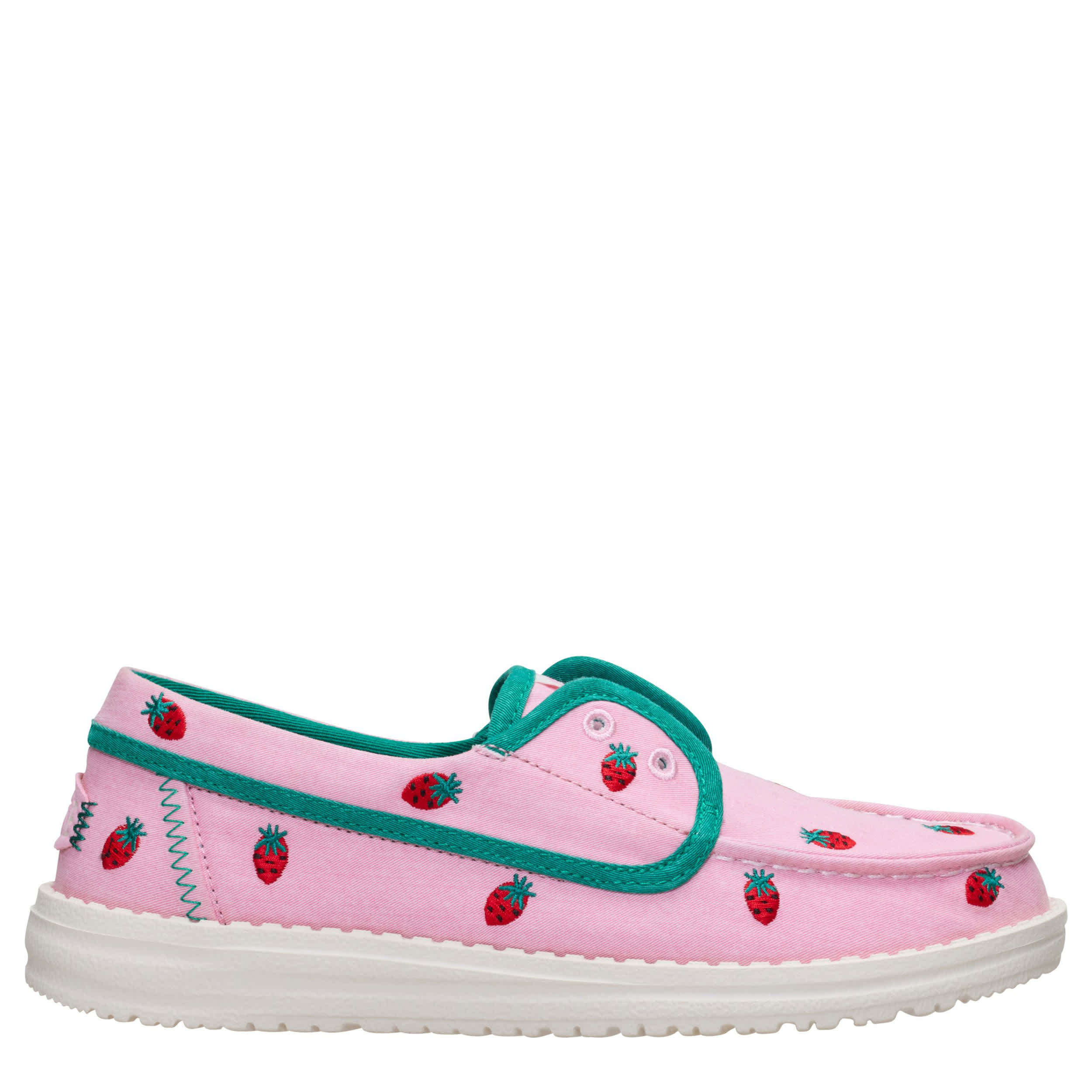 Spring is the perfect time to showcase the HEYDUDE Wendy Cru Embroidered women's slip-on sneaker. With a textile upper featuring a laceless design, this slip-on also has stitched detailing on the heel. The removable insole comforts your foot with every step, while the lightweight outsole provides flexible traction.