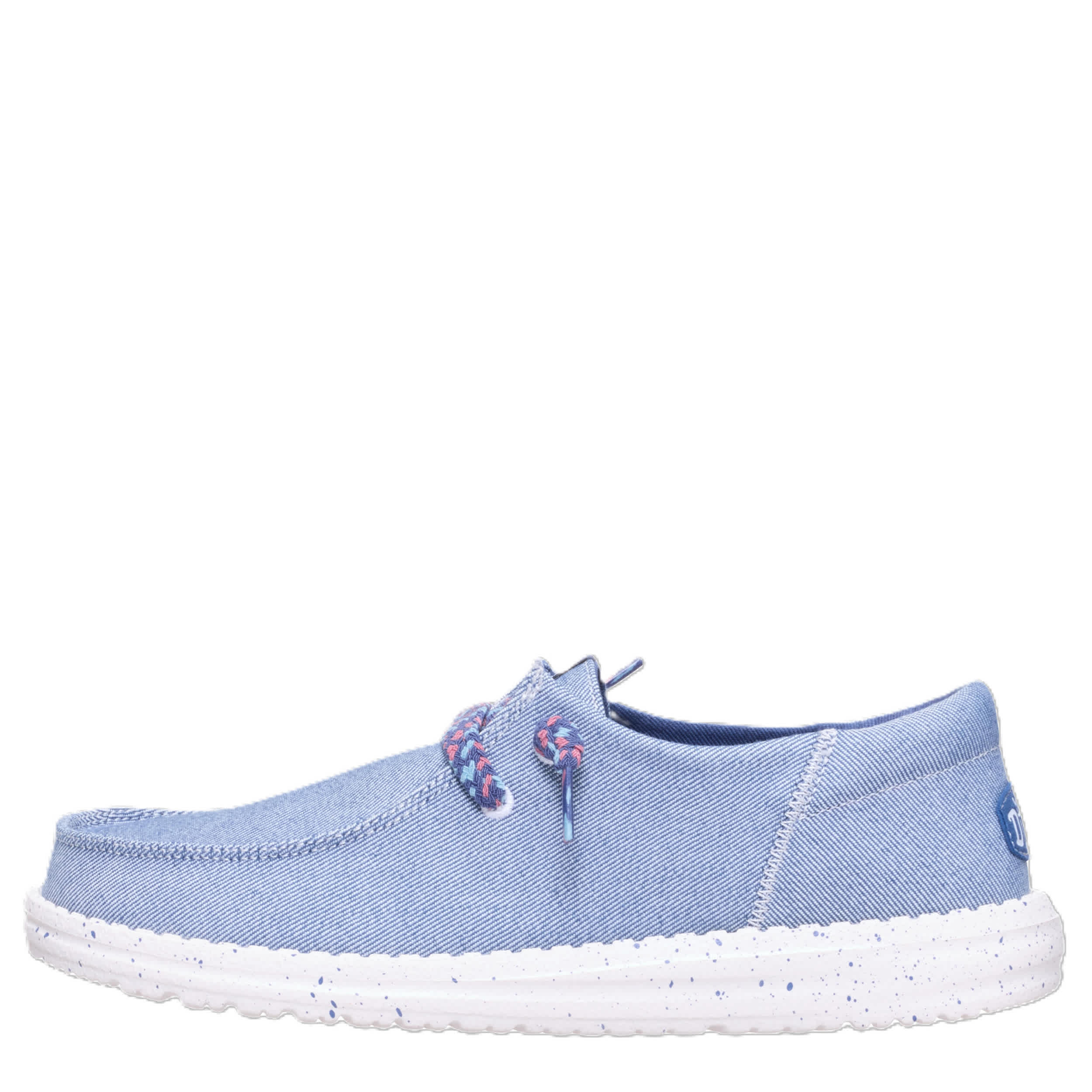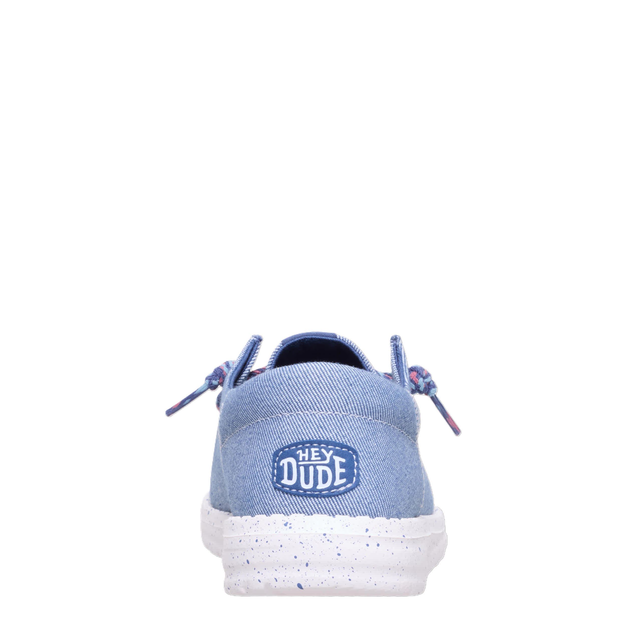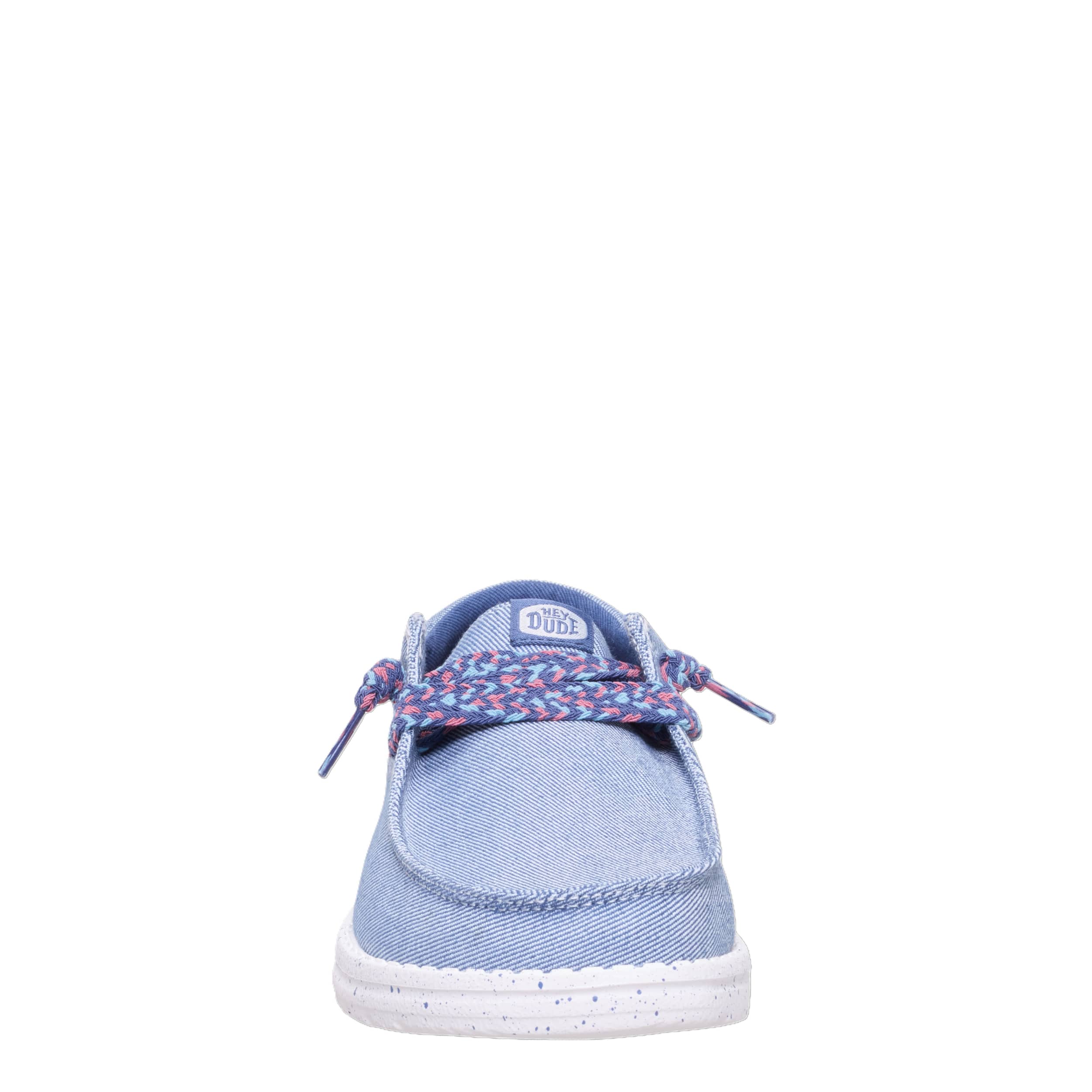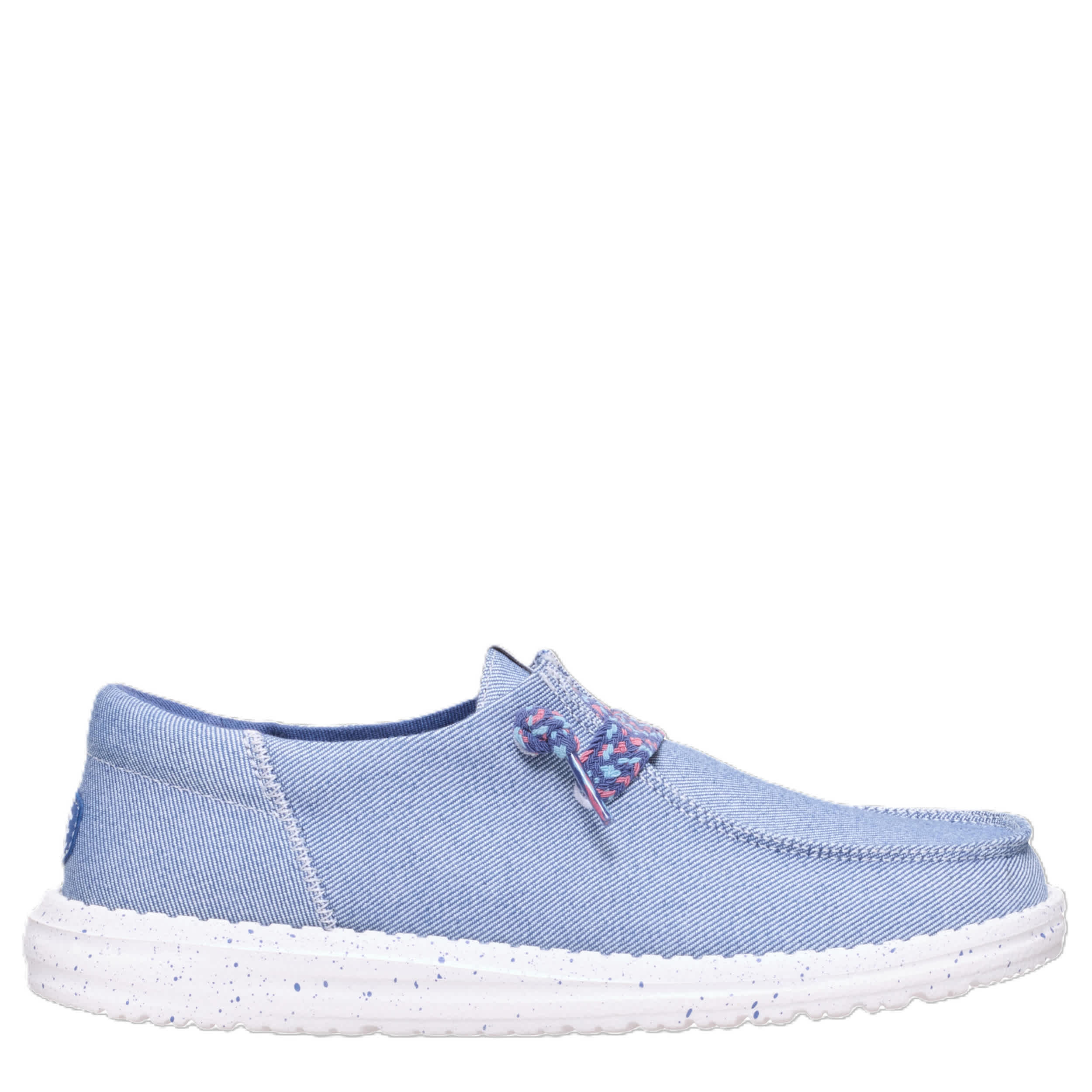 Make your style more campy with the HEYDUDE Wendy Funk Friendship Lace slip-on sneaker. Complete with a denim & textile upper, this slip-on has colorful no-tie laces for an extra fun touch. The removable insole offers cushioned comfort, while the durable outsole is lightweight.
