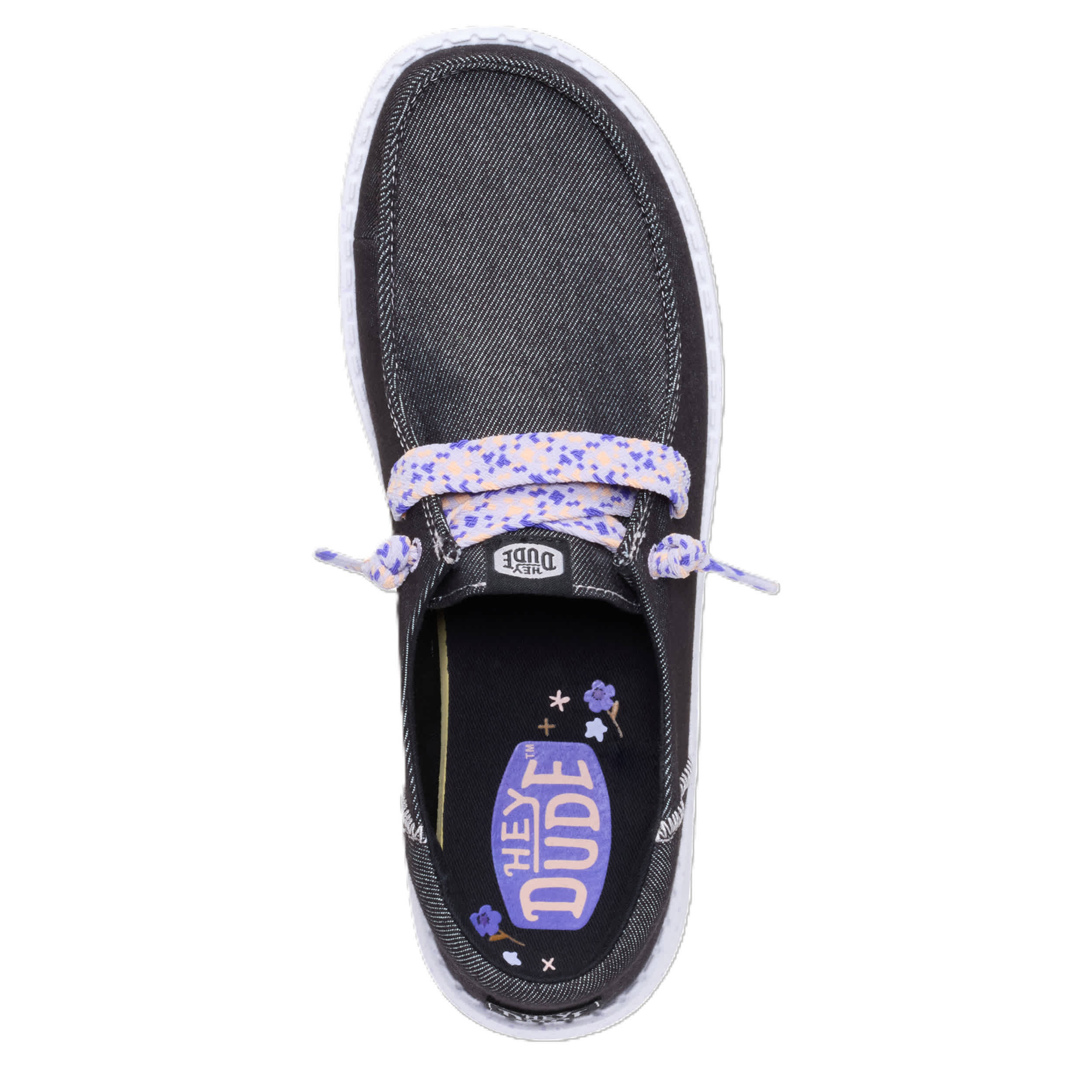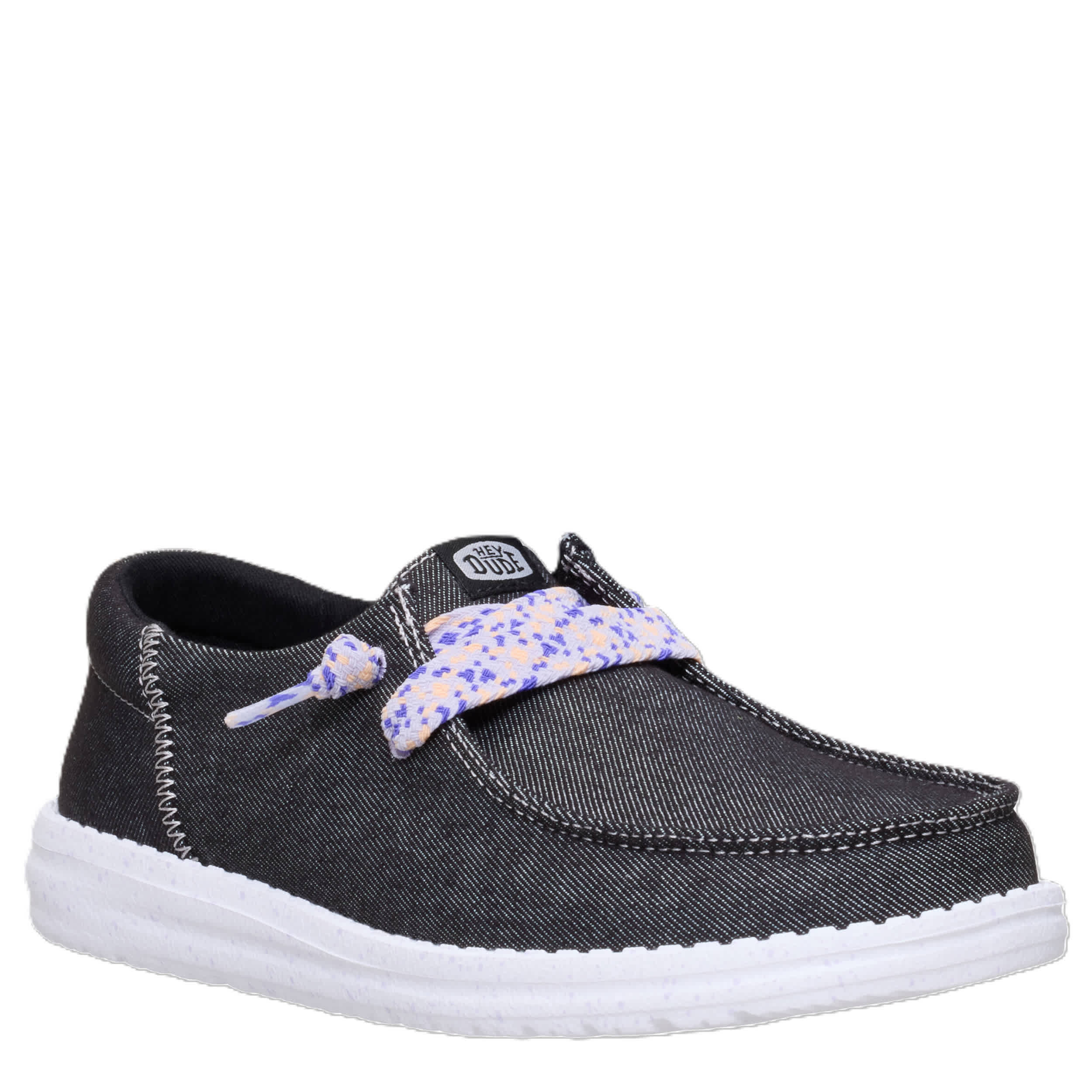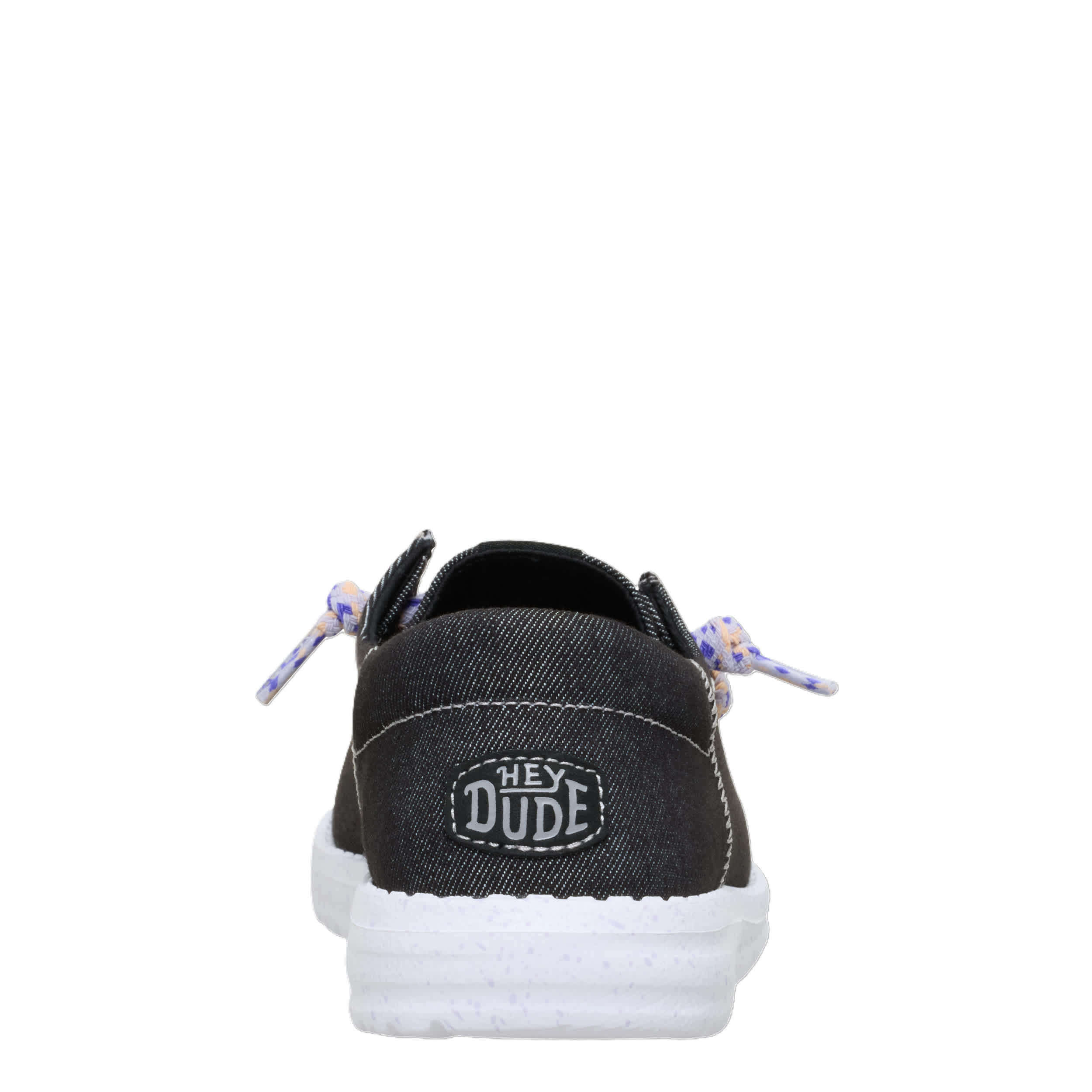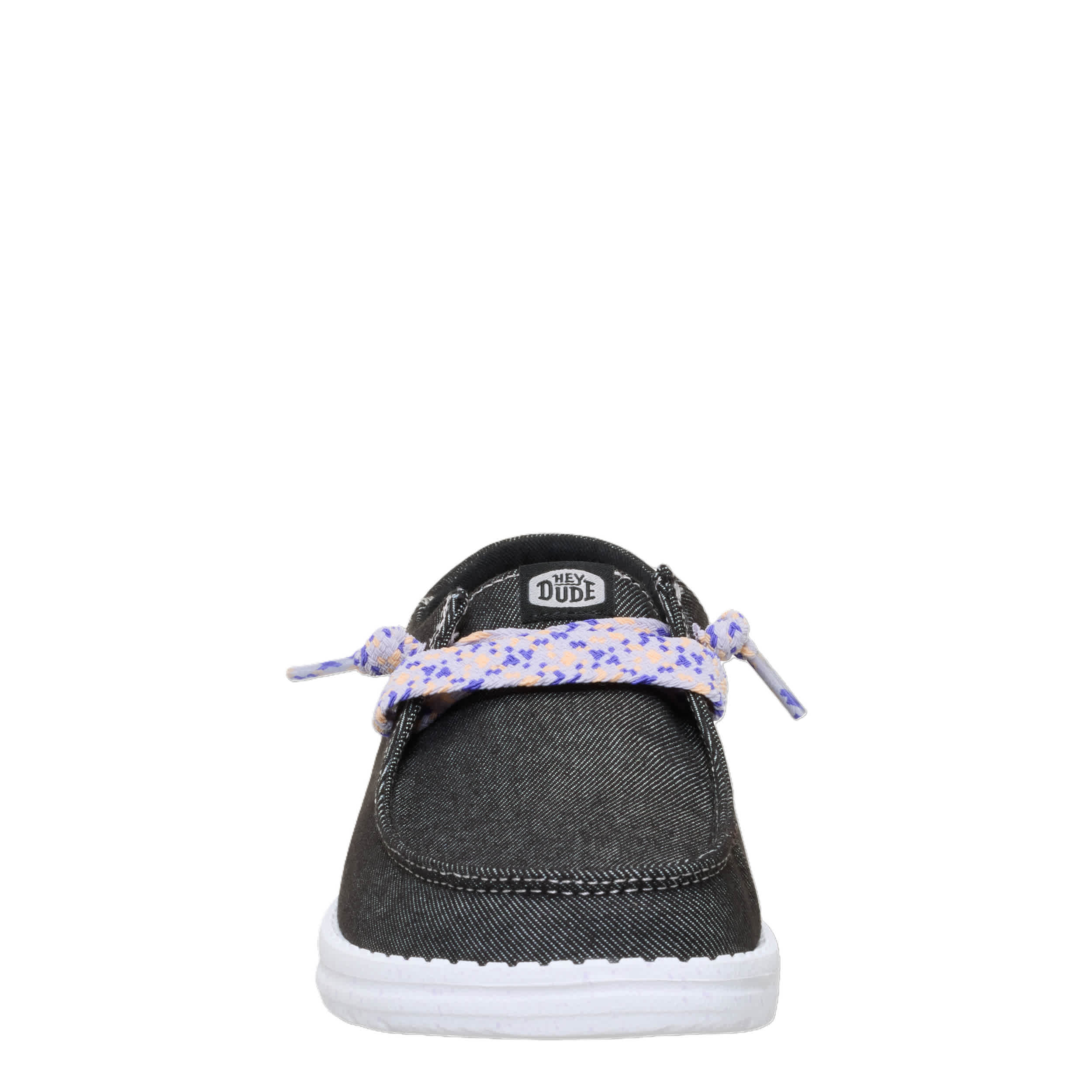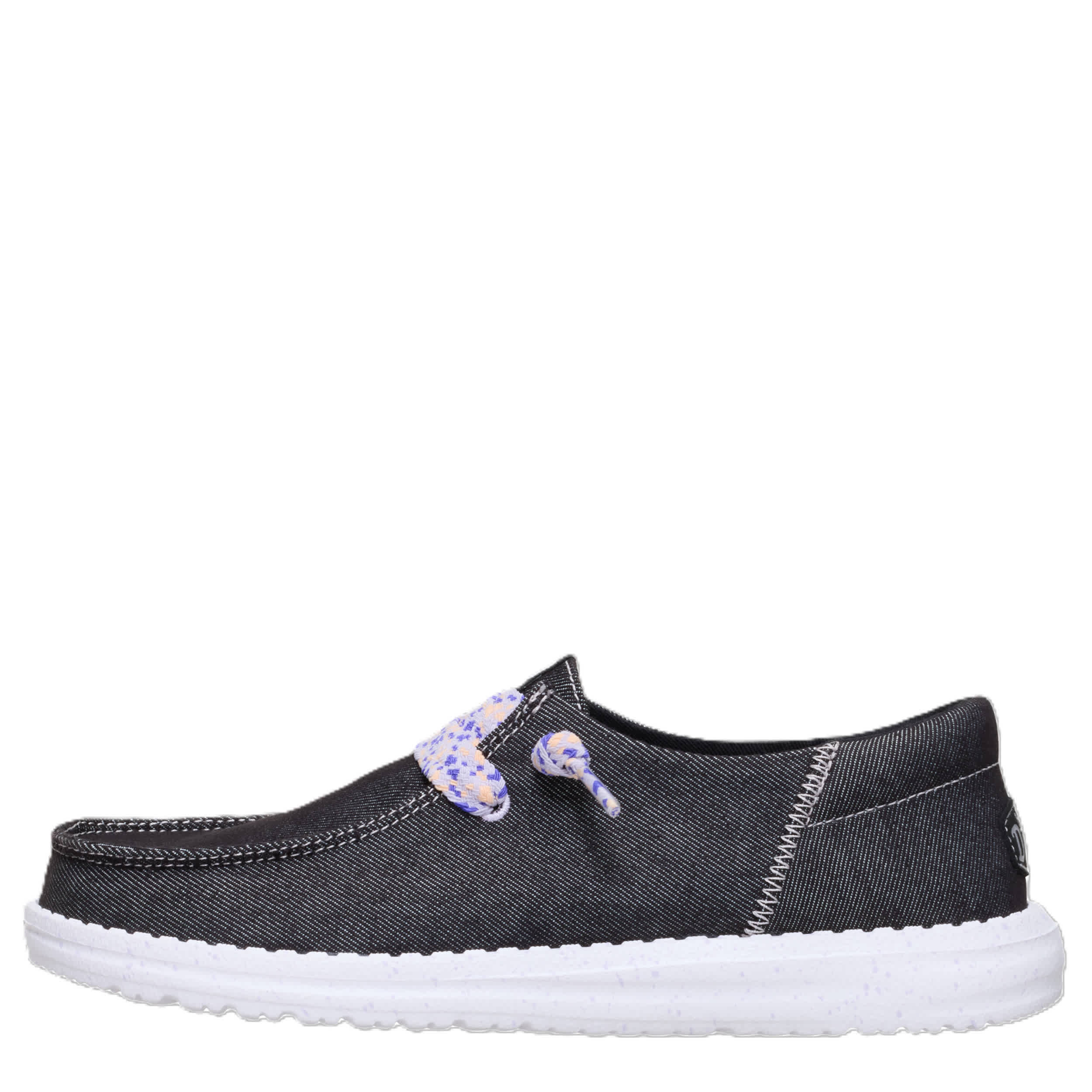 Make your style more campy with the HEYDUDE Wendy Funk Friendship Lace slip-on sneaker. Complete with a denim & textile upper, this slip-on has colorful no-tie laces for an extra fun touch. The removable insole offers cushioned comfort, while the durable outsole is lightweight.