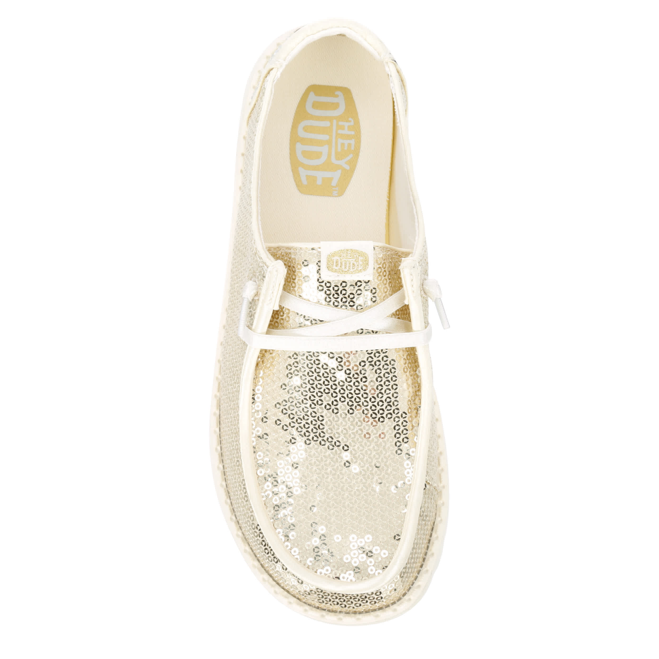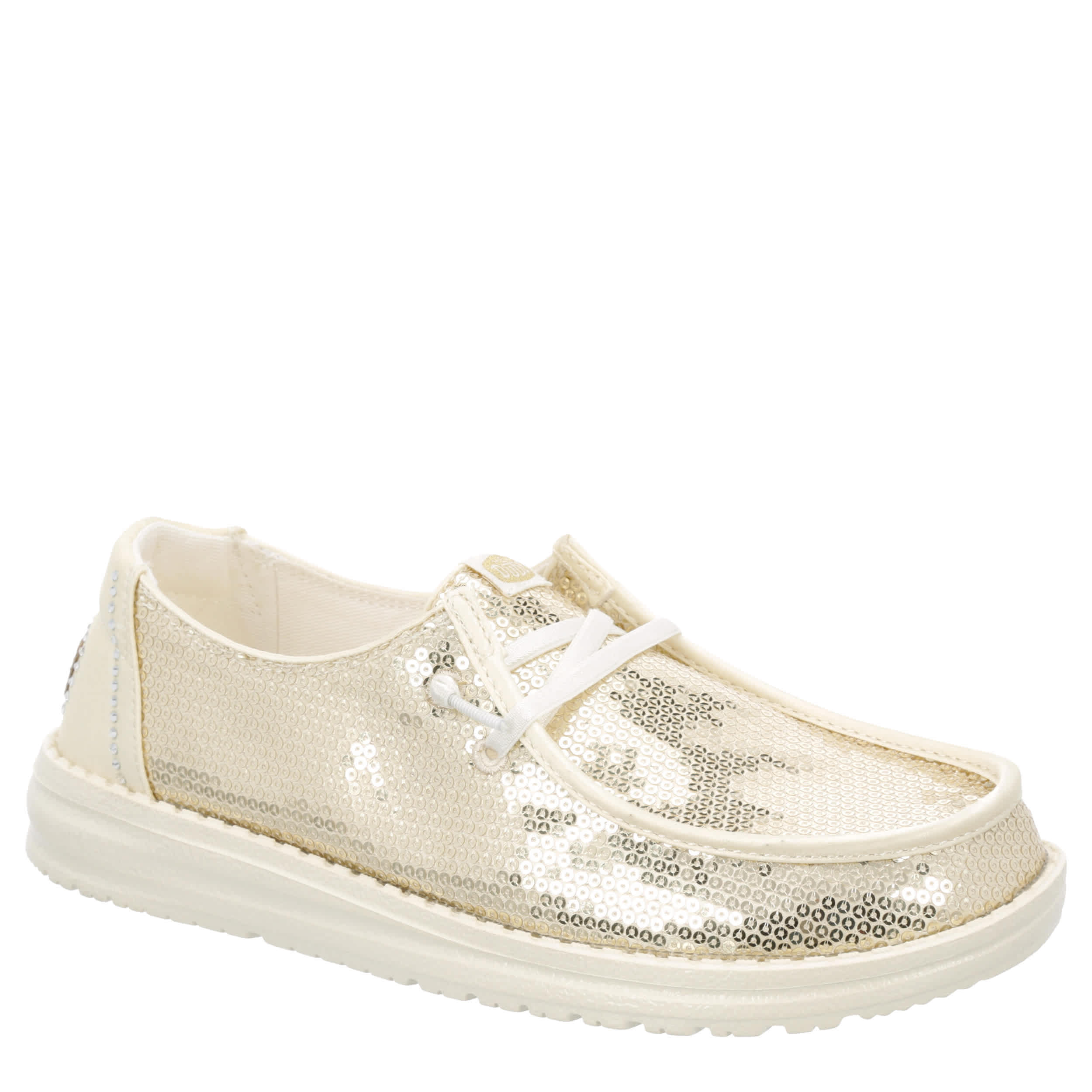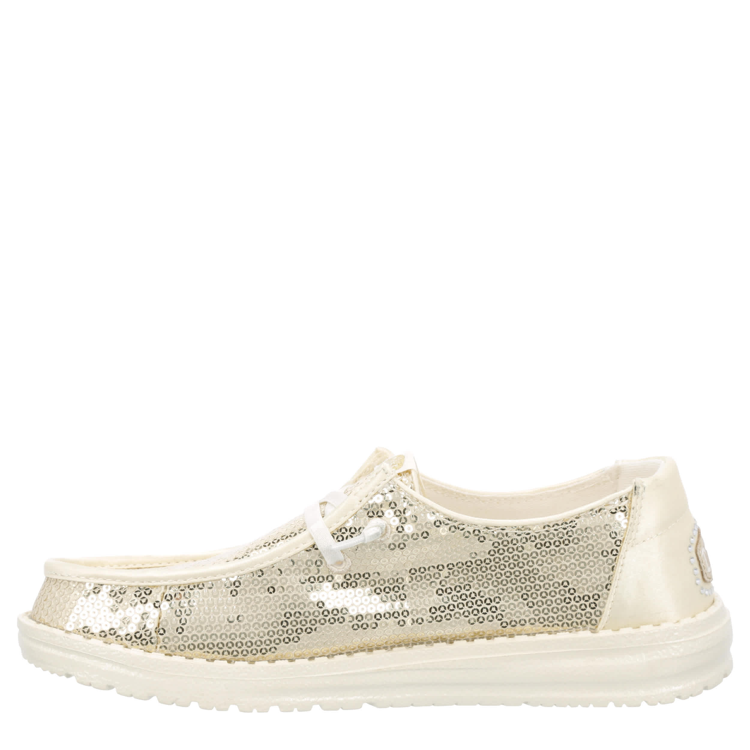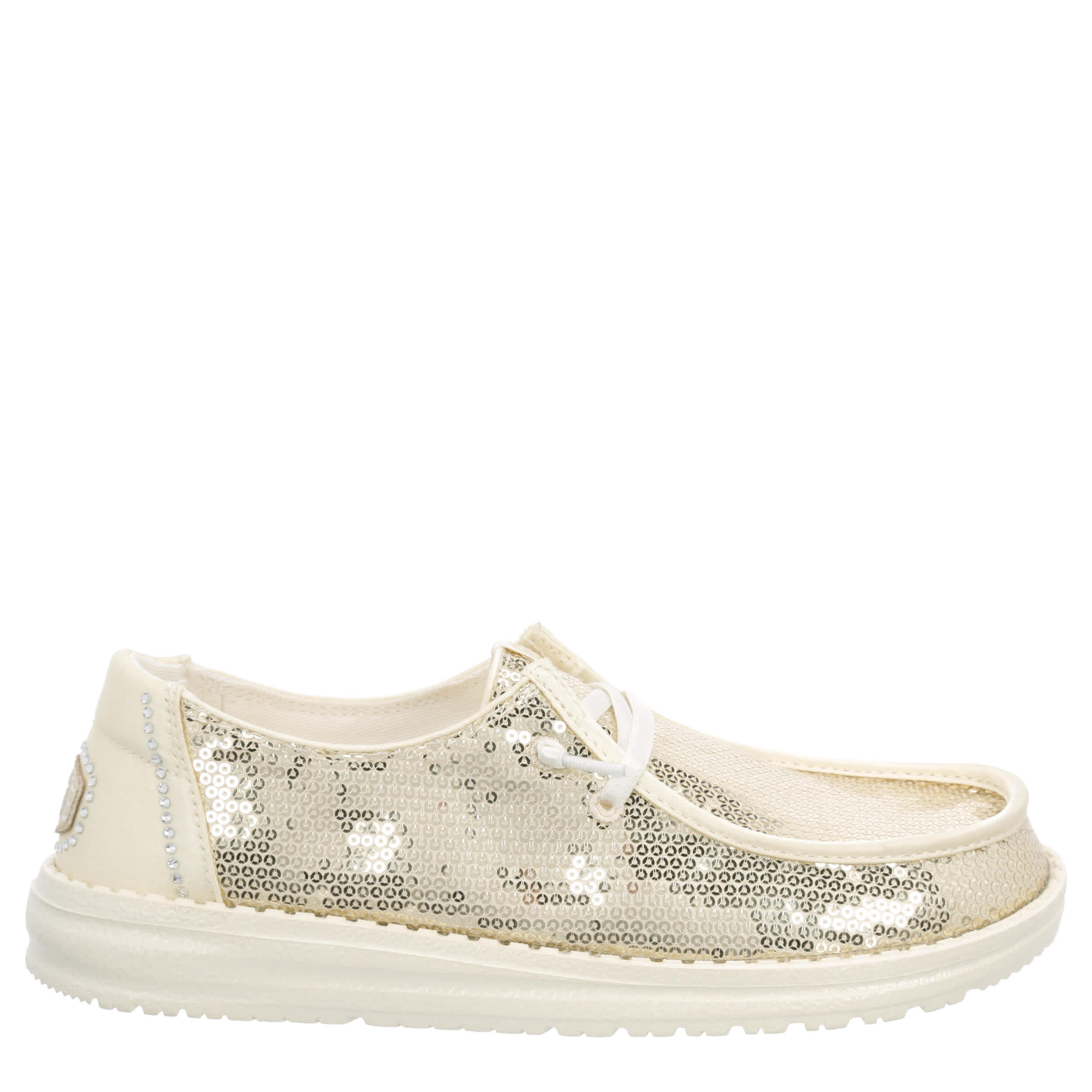 Turn everyday into a party with the Wendy Disco Sequin women's slip-on sneaker from HEYDUDE. Featuring a sequined upper with a rhinestone-accented heel detail, this shoe is travel ready and low maintenance. The foam insole cushions while the lightweight & flexible outsole adds durability.