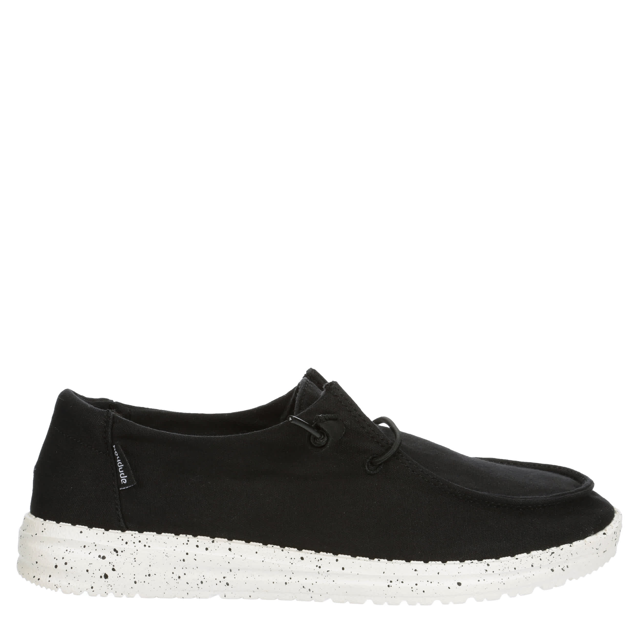 Relax into your passion with the HEYDUDE Wendy women's slip-on sneaker. With a canvas upper featuring a wide fit and elastic laces for a secure fit, this sneaker is machine washable for easy maintenance. The removable Memory Foam insole and leather lining offer ergonomic support and cushioning while the ultralight outsole sets you free to explore unfettered.