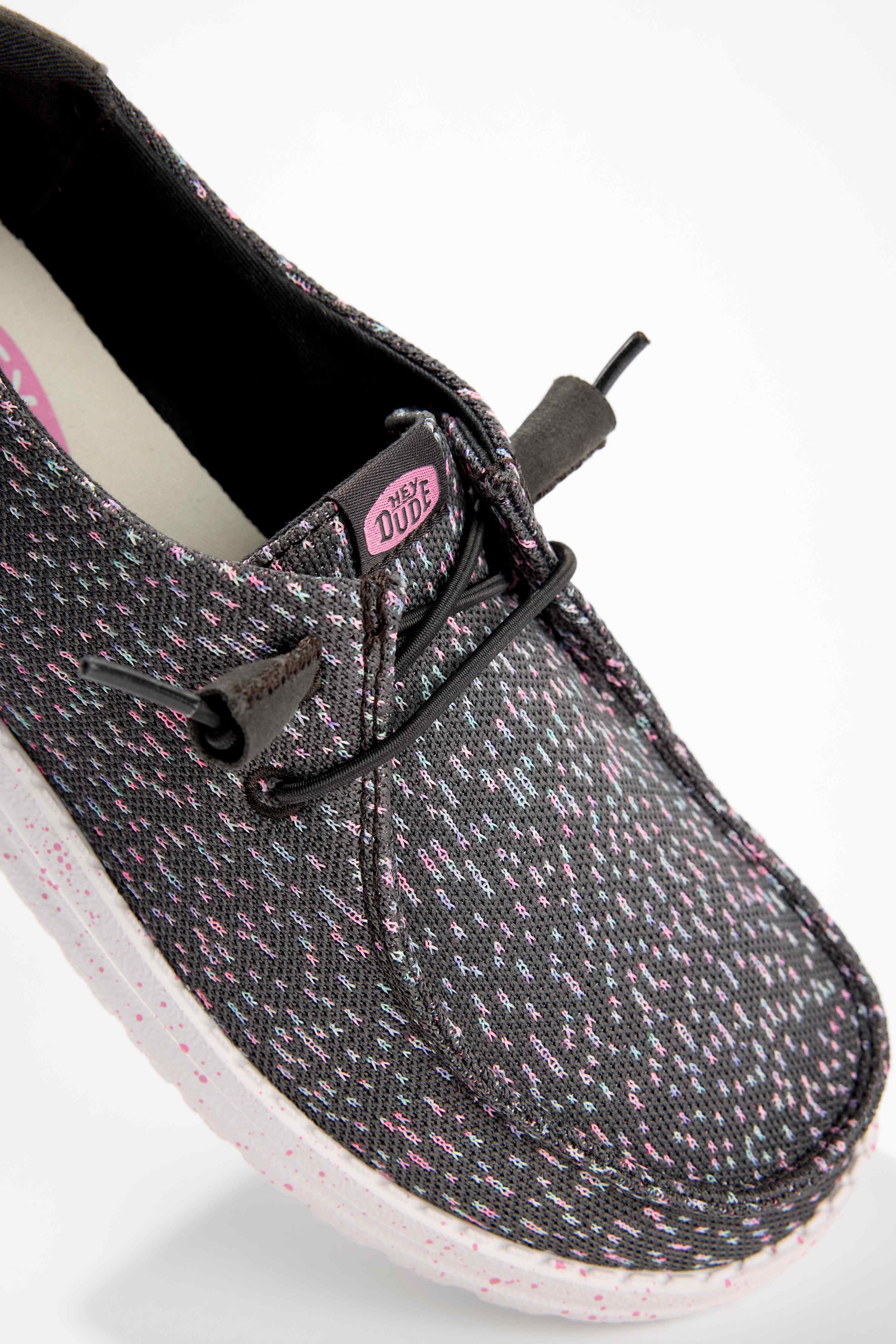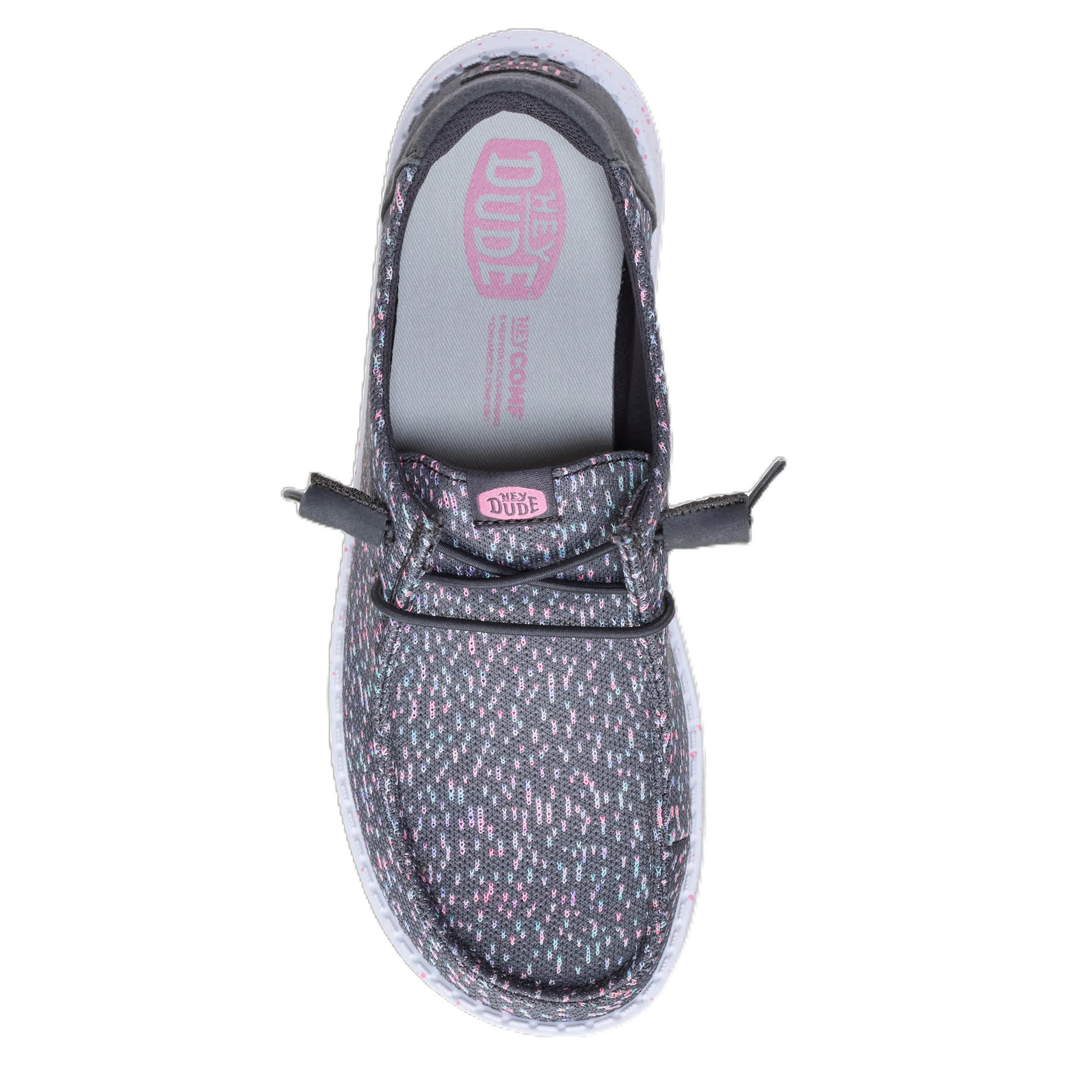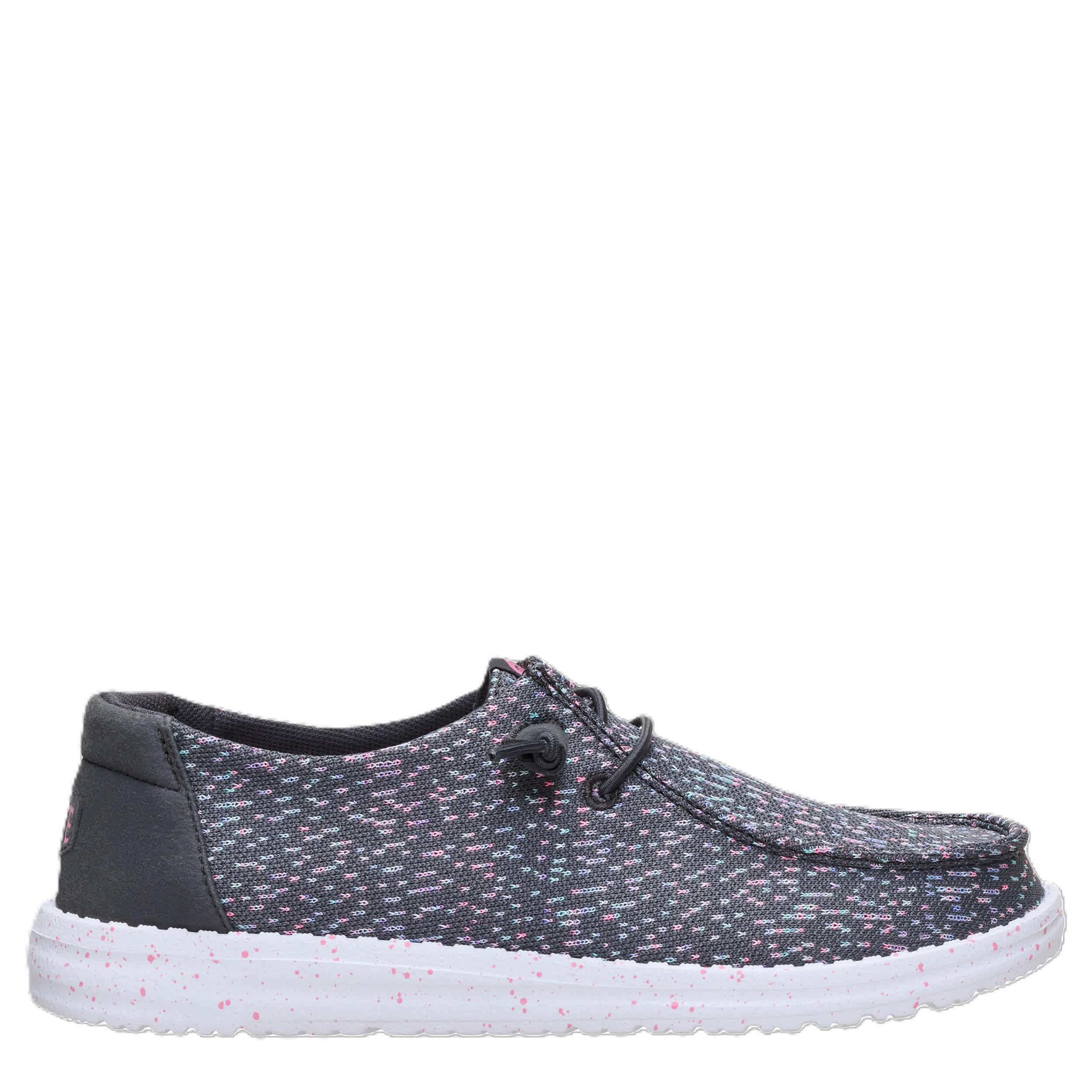 Travel light in the HEYDUDE Wendy Stretch Speckle women's slip-on sneaker. Featuring a printed canvas upper with a speckled midsole just for fun, this slip-on is easygoing and playful. The foam insole offers nice cushioning while the almost weightless outsole sets you free to explore unfettered.
