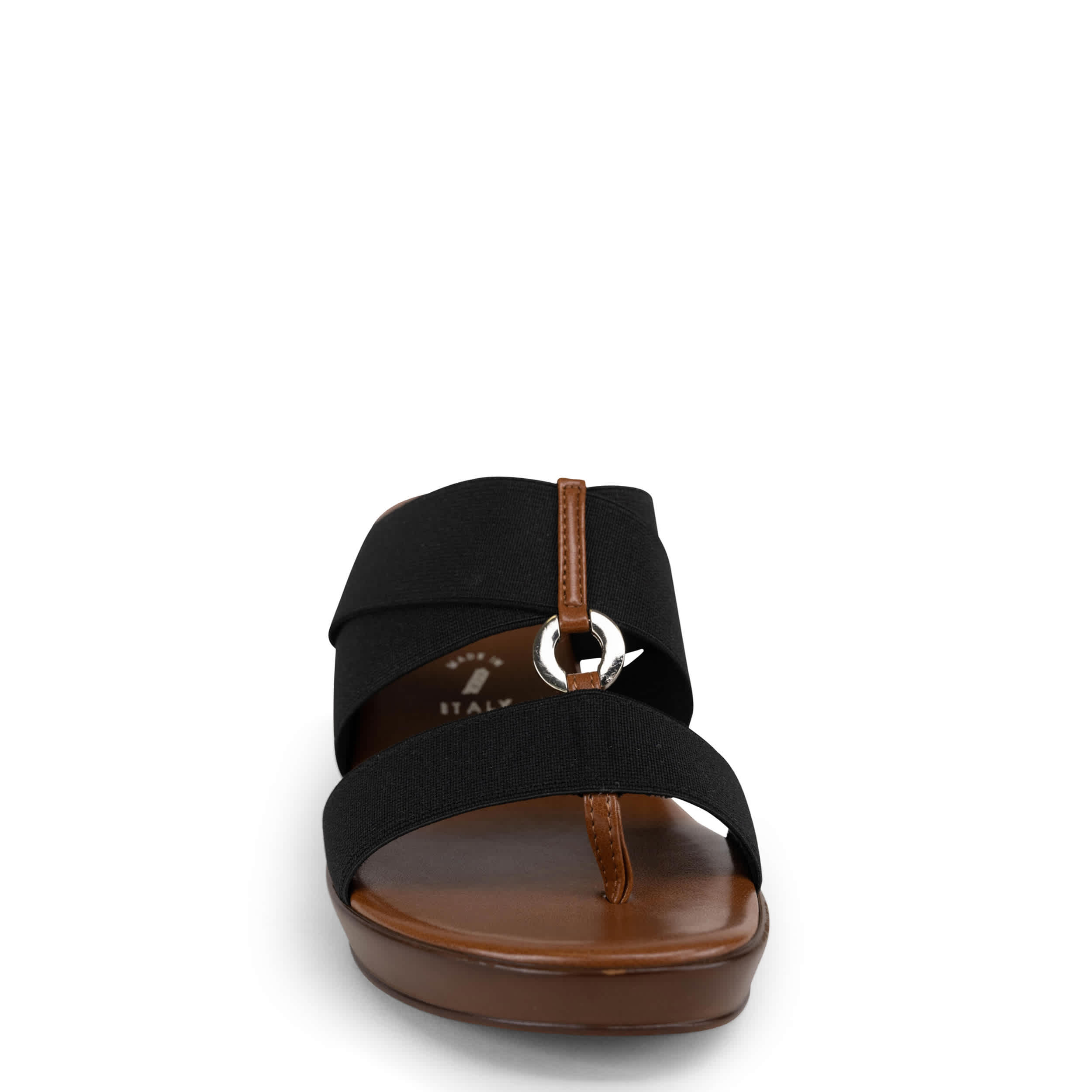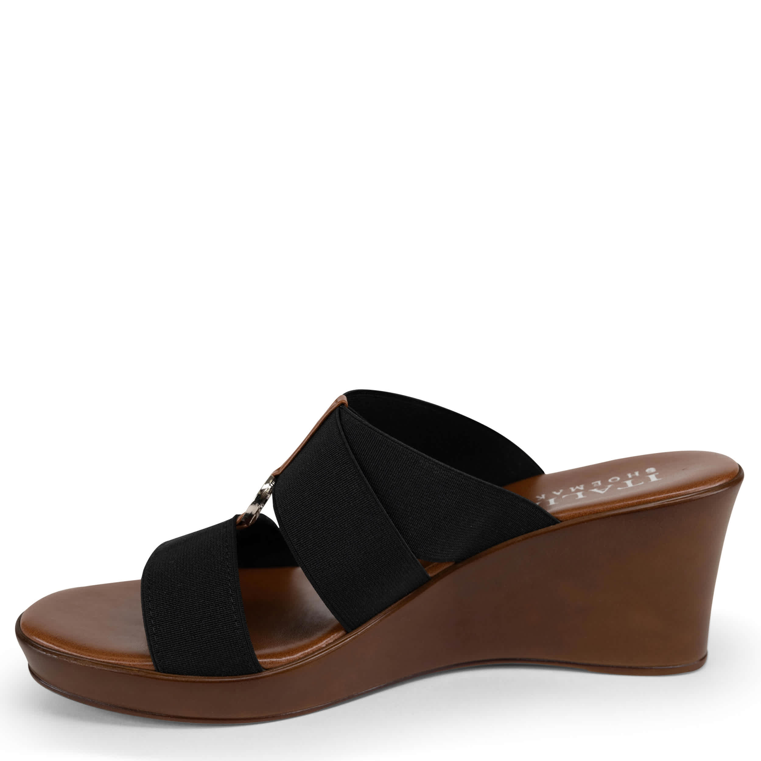 Move elegantly in the Celsi women's wedge sandal from the Italian Shoemakers. With a stretch elastic upper featuring an O-ring connector with a thong toe post for a secure fit, this sandal is comfortably open. The insole cushions, while the wedge heel offers just enough lift.