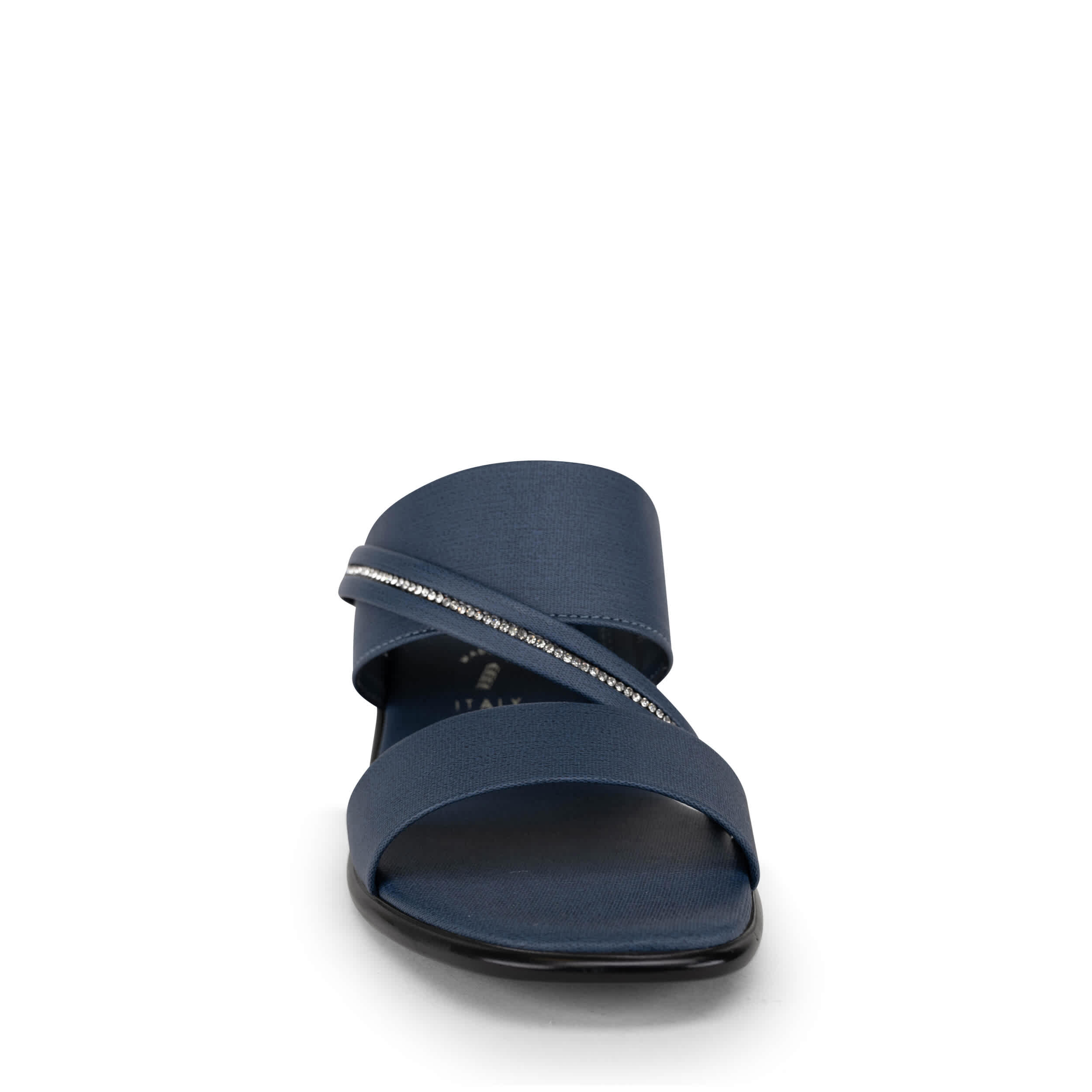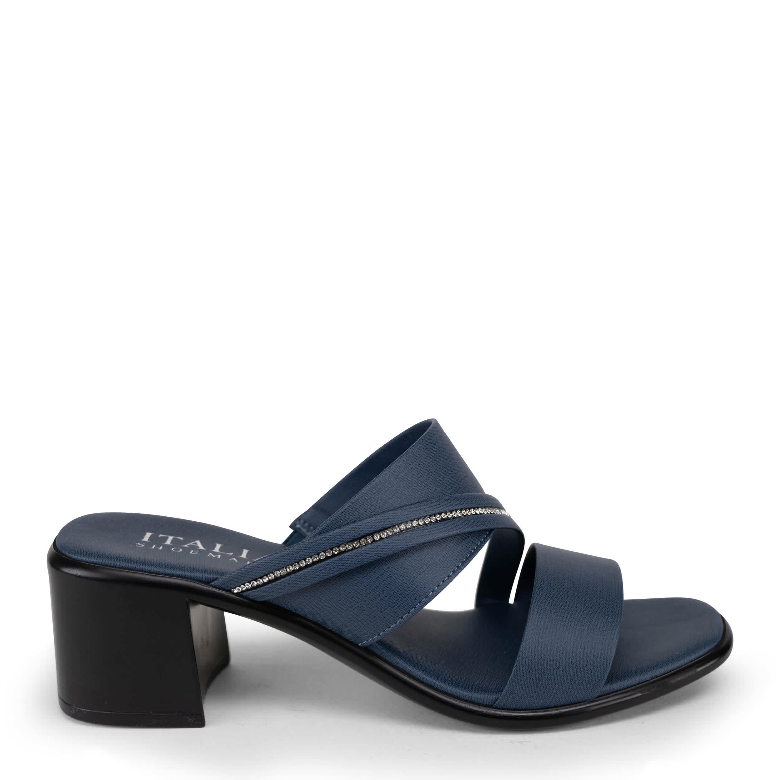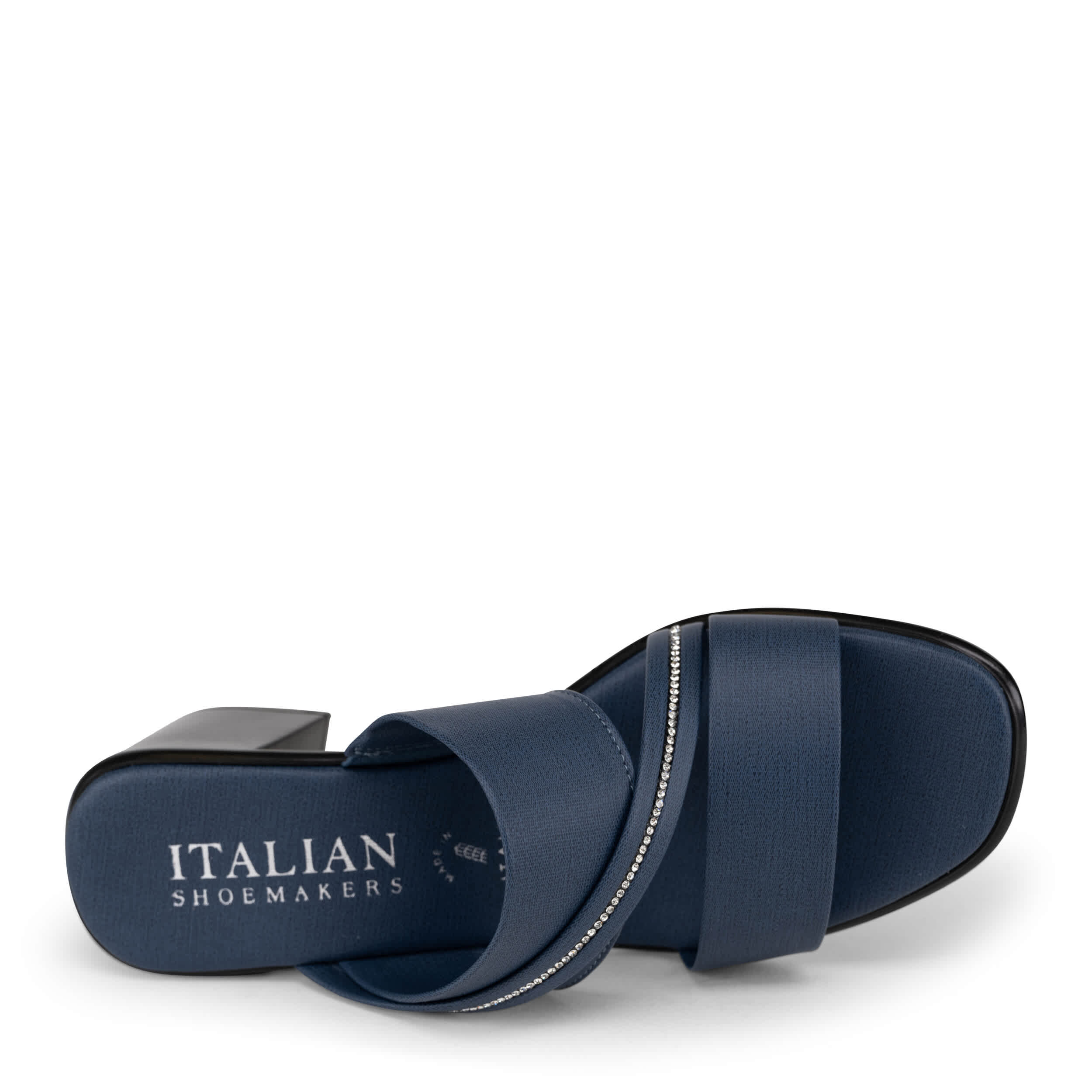 Friday nights call for the Coletty women's slide sandal from Italian Shoemakers. With a faux leather upper featuring an asymmetrical strap highlighted by rhinestones for extra style, this slip-on also has a square toe. The footbed cushions your foot while the heel adds just enough lift.