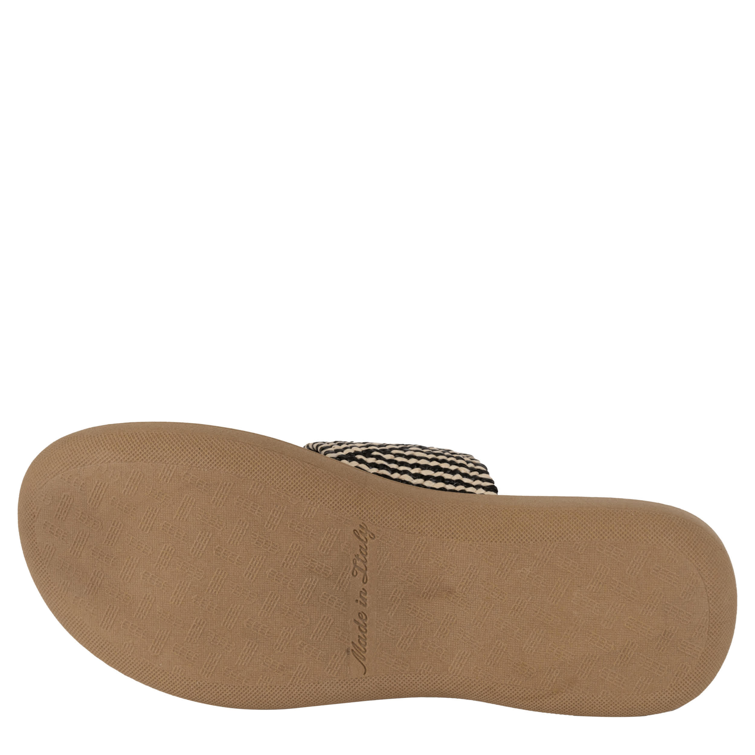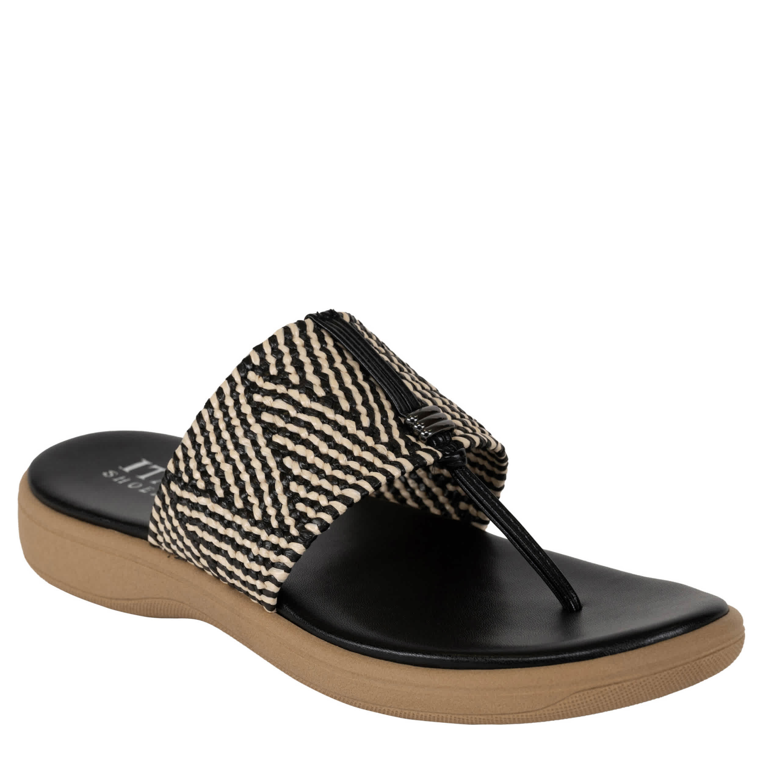 Rich color becomes you in the Rylah flat sandal from Italian Shoemakers. Breezy style with an elastic chevron-woven upper, this sandal also features a metallic ornament. The footbed comforts, while the low heel offers subtle lift.