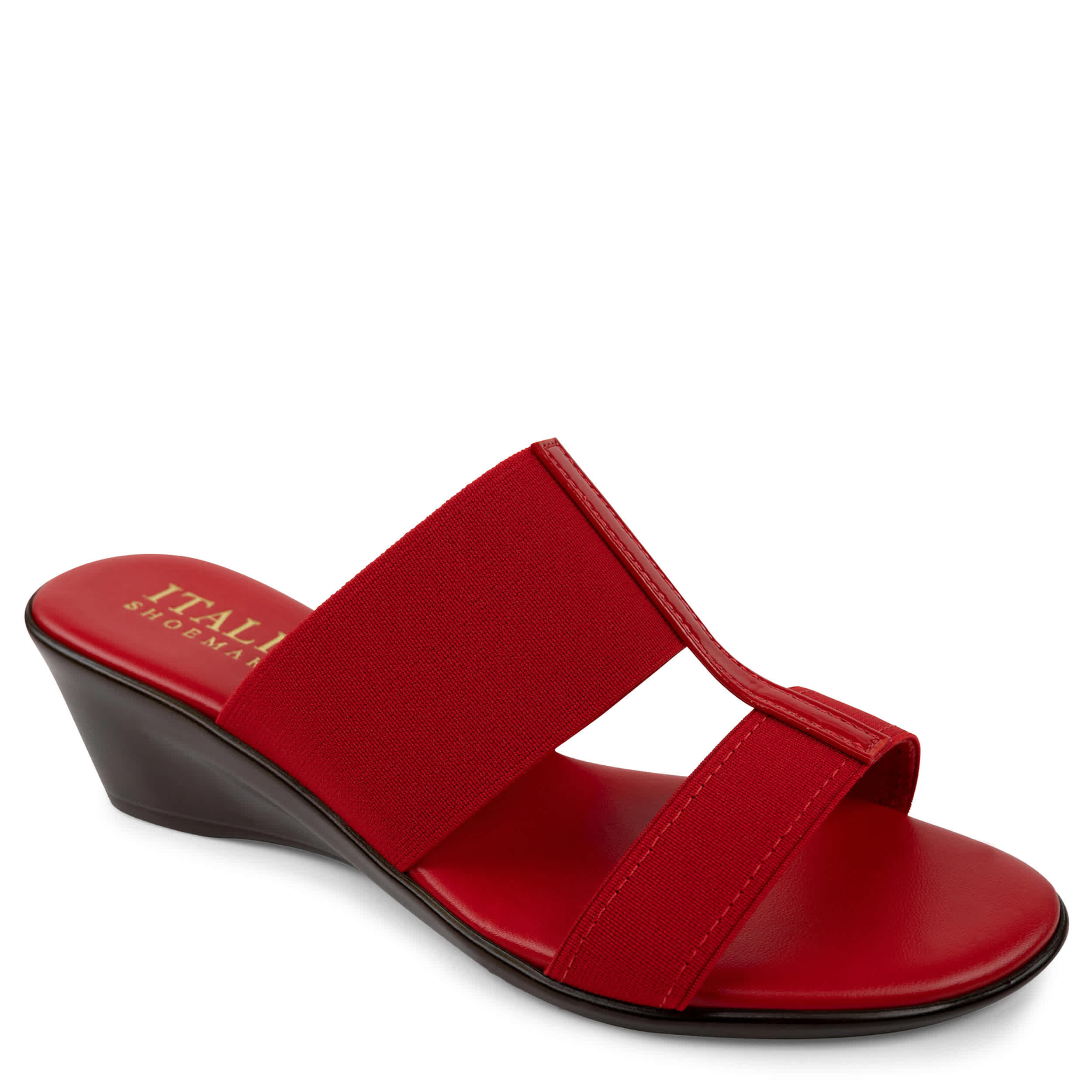 Leisure is chic in the Sadey women's wedge sandal from the Italian Shoemakers. With a soft elastic upper featuring a H-strap design for extra style, this slide boosts your flexibility. The insole cushions, while the just right heel adds elegant lift.