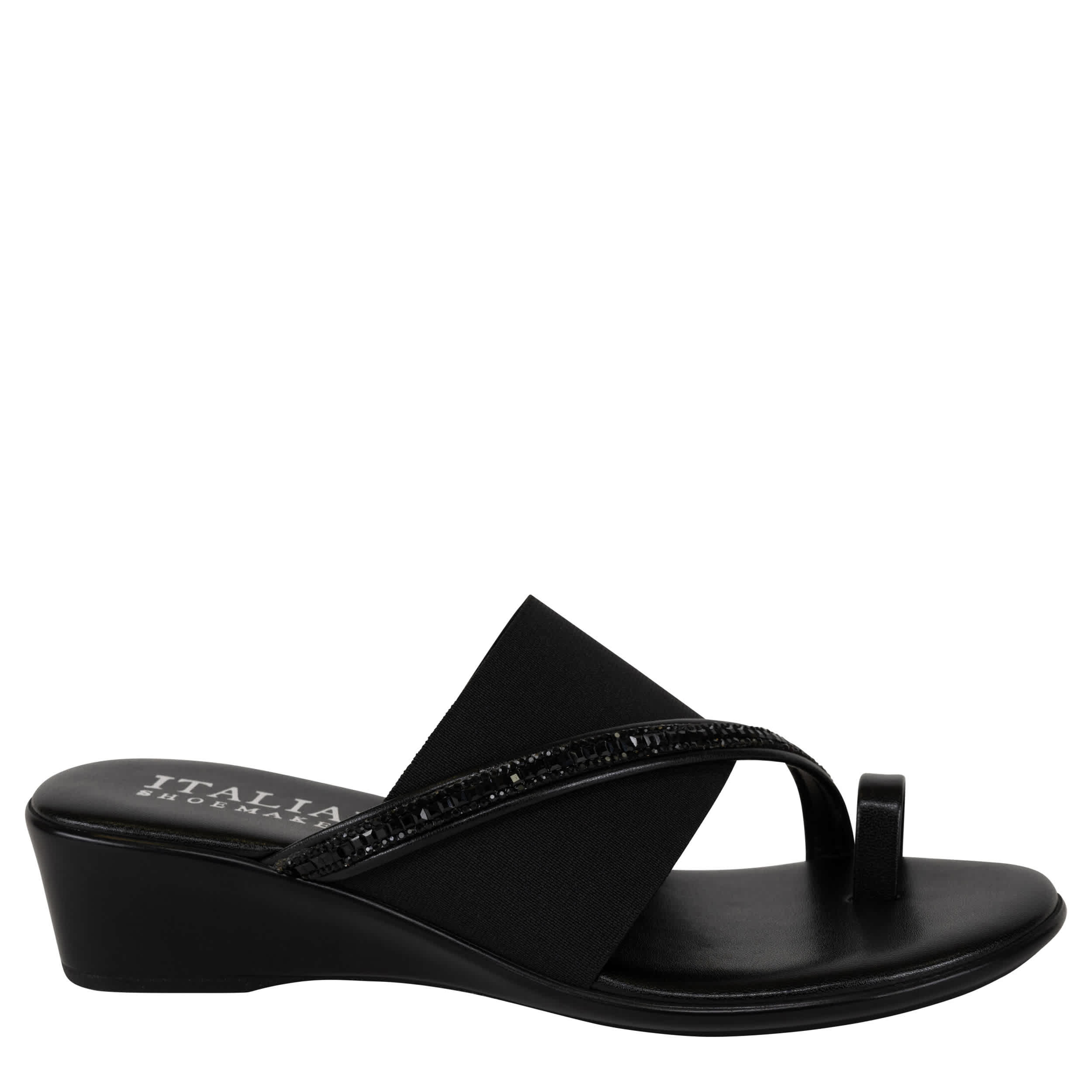 You'll shine this summer in the Sianni wedge sandal from Italian Shoemakers. Featuring a stretchy elastic upper with an embellished strap, this sandal has a secure toe loop. The footbed cushions your steps, while the wedge heel adds just enough lift.