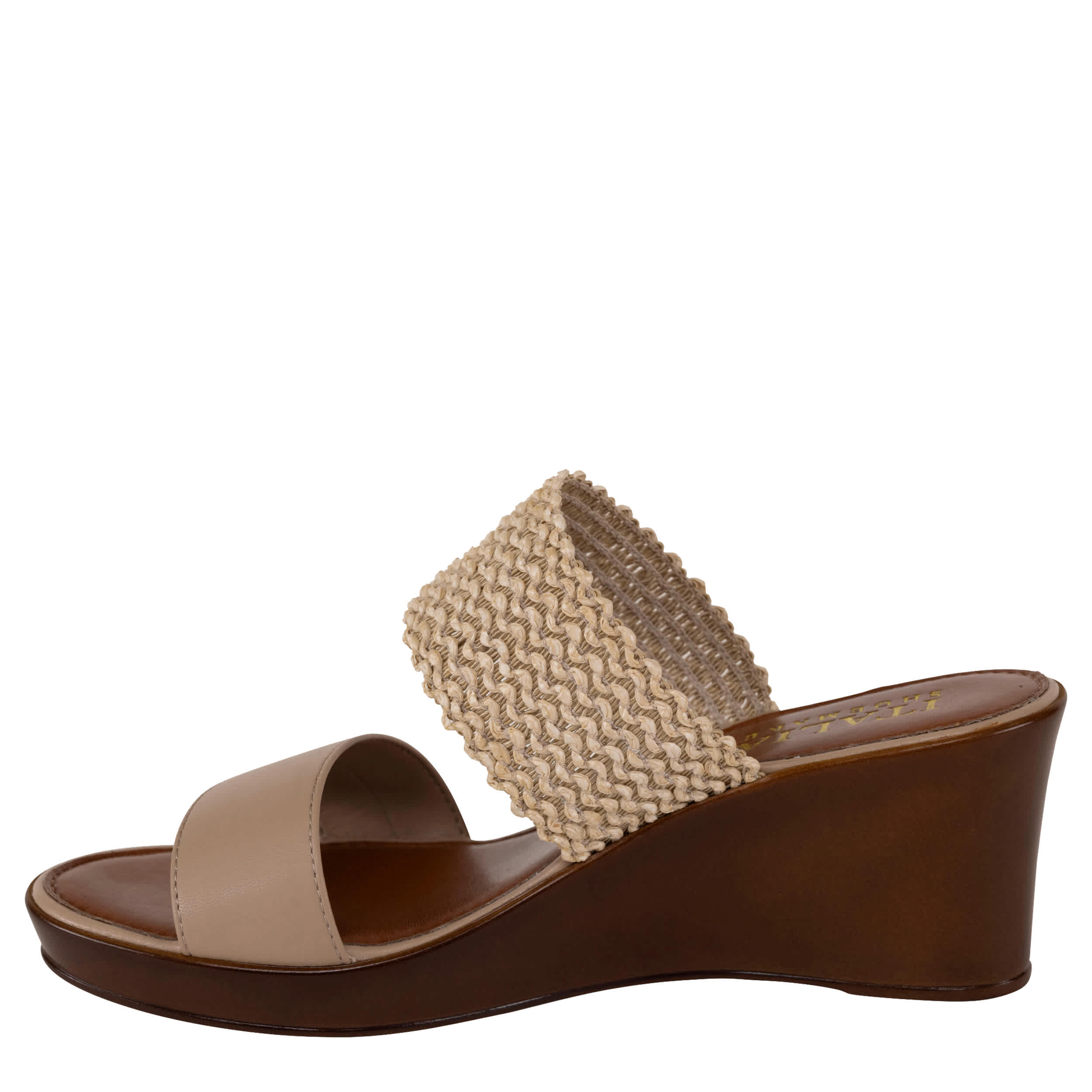 Elevate your style in the Yamari wedge sandal from Italian Shoemakers. With a woven, elastic strap and faux leather band, this sandal features a padded footbed that cushions every step. The wedge heel adds the perfect lift.