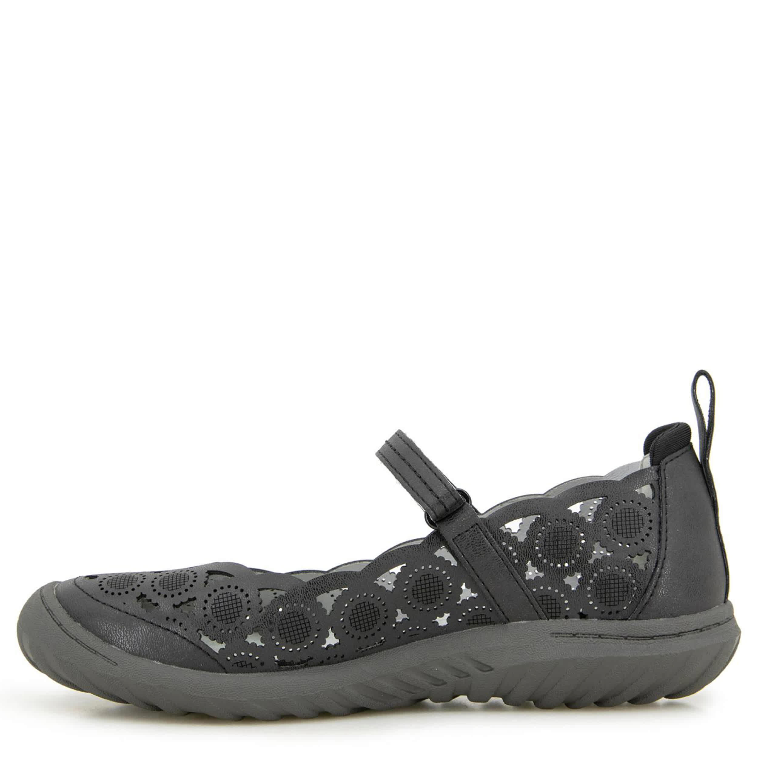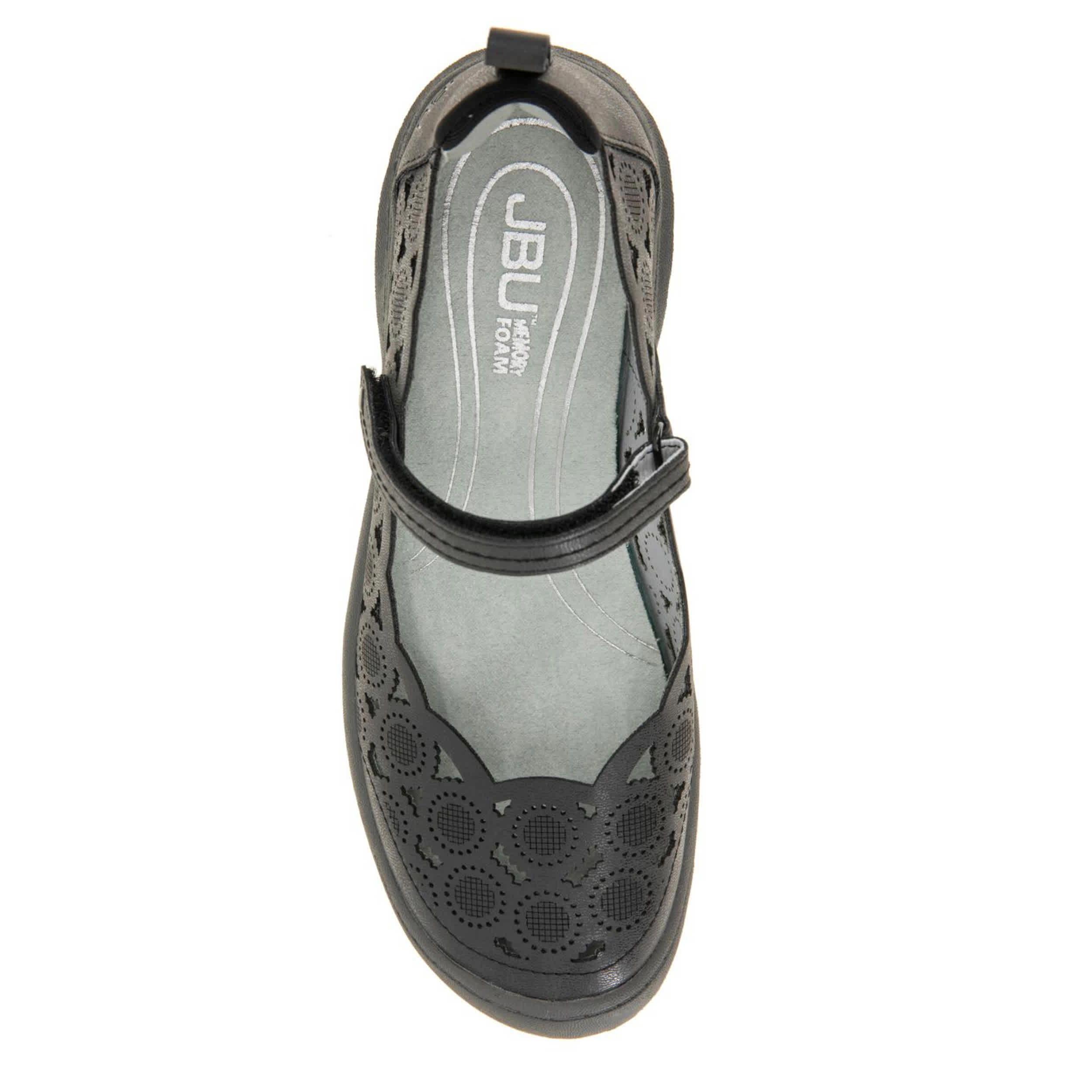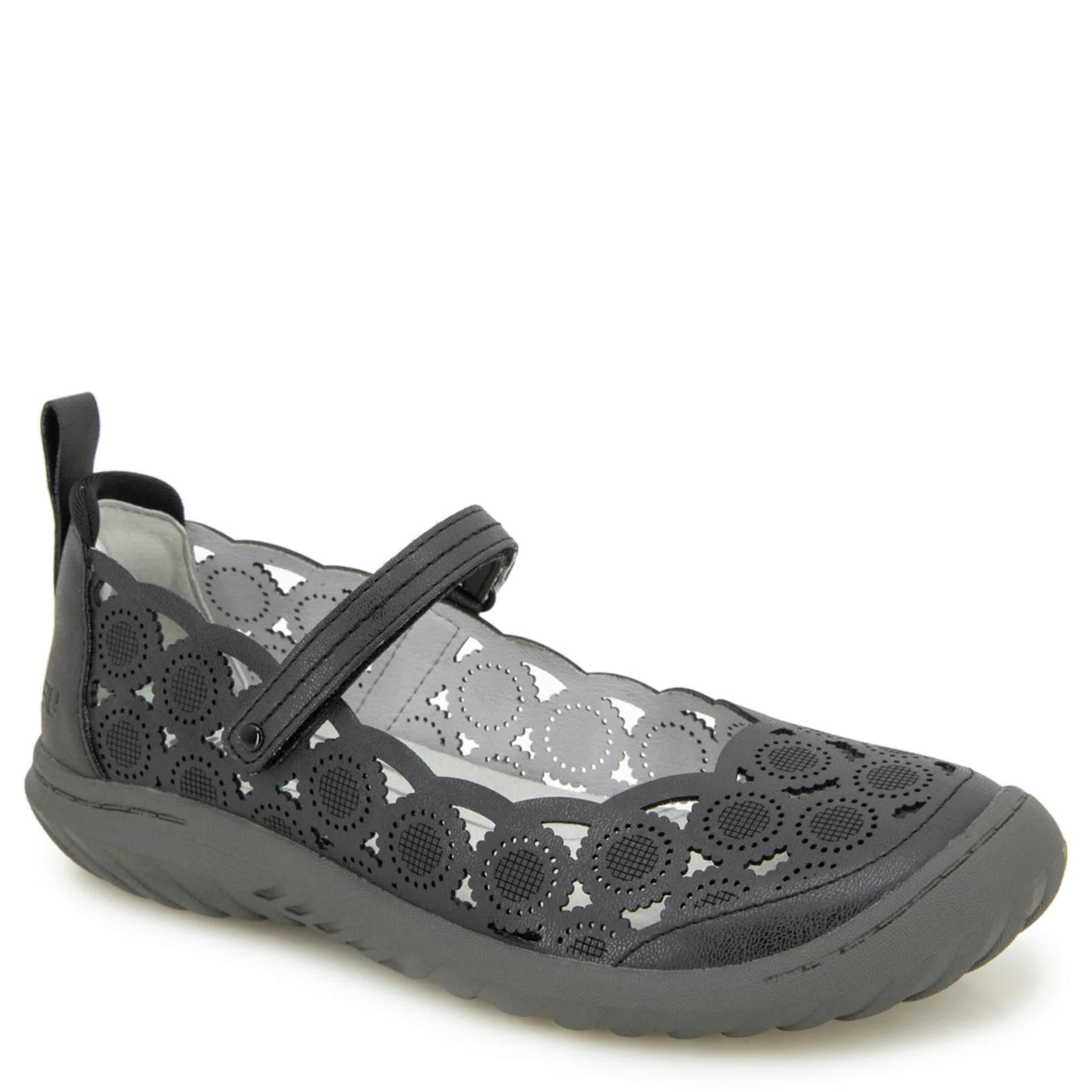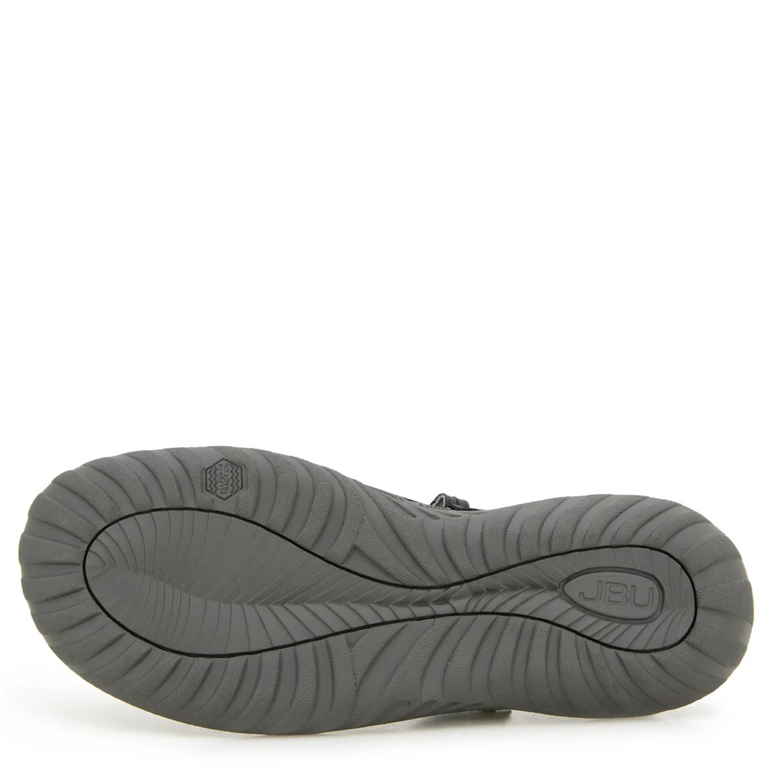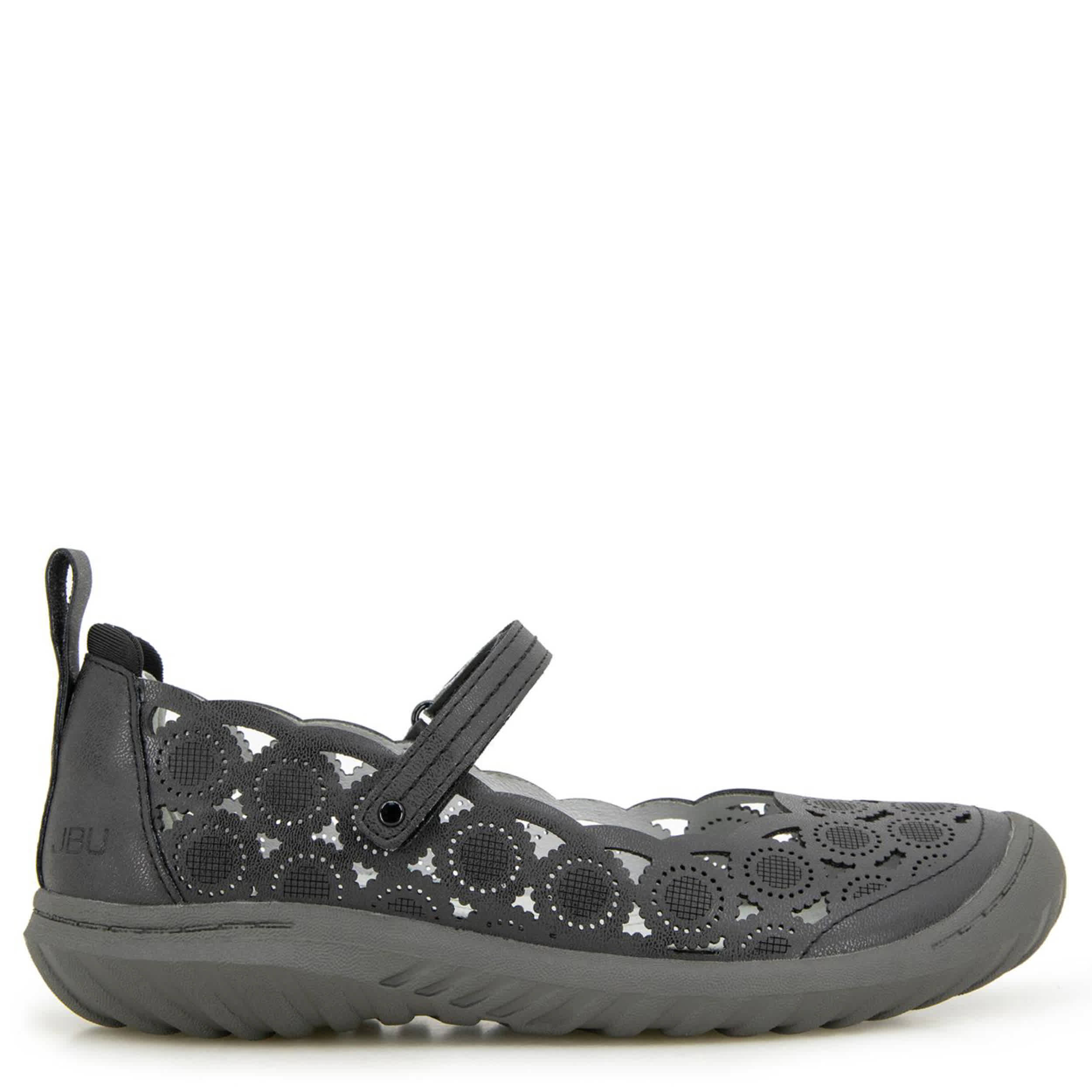 Flirty yet simple equals the rugged JBU Daffodil women's clog. With a faux leather, elastic & neoprene upper featuring floral-inspired perforations, this shoe has a classic T-strap closure for a flexible fit. The Memory Foam insole pampers your foot while the durable outsole adds All Terra Traction.