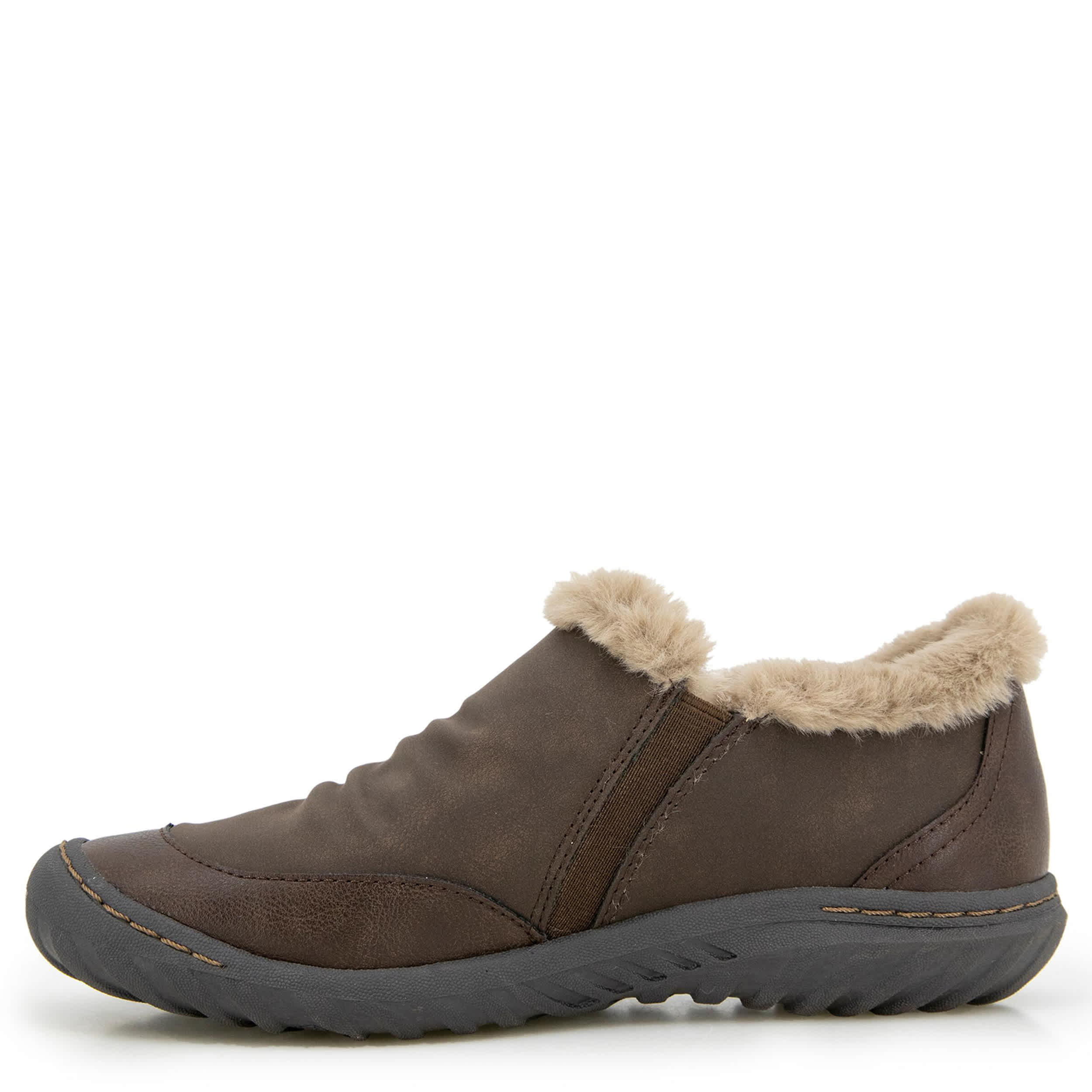 Stay all warm & fuzzy in the JBU Heather Faux Fur slip-on sneaker. Featuring a slightly ruched upper with a soft microfiber terry lining, this slip-on has a hook-and-loop tape closure for a snug fit. The Memory Foam cushions, while the durable outsole has All Terra traction.
