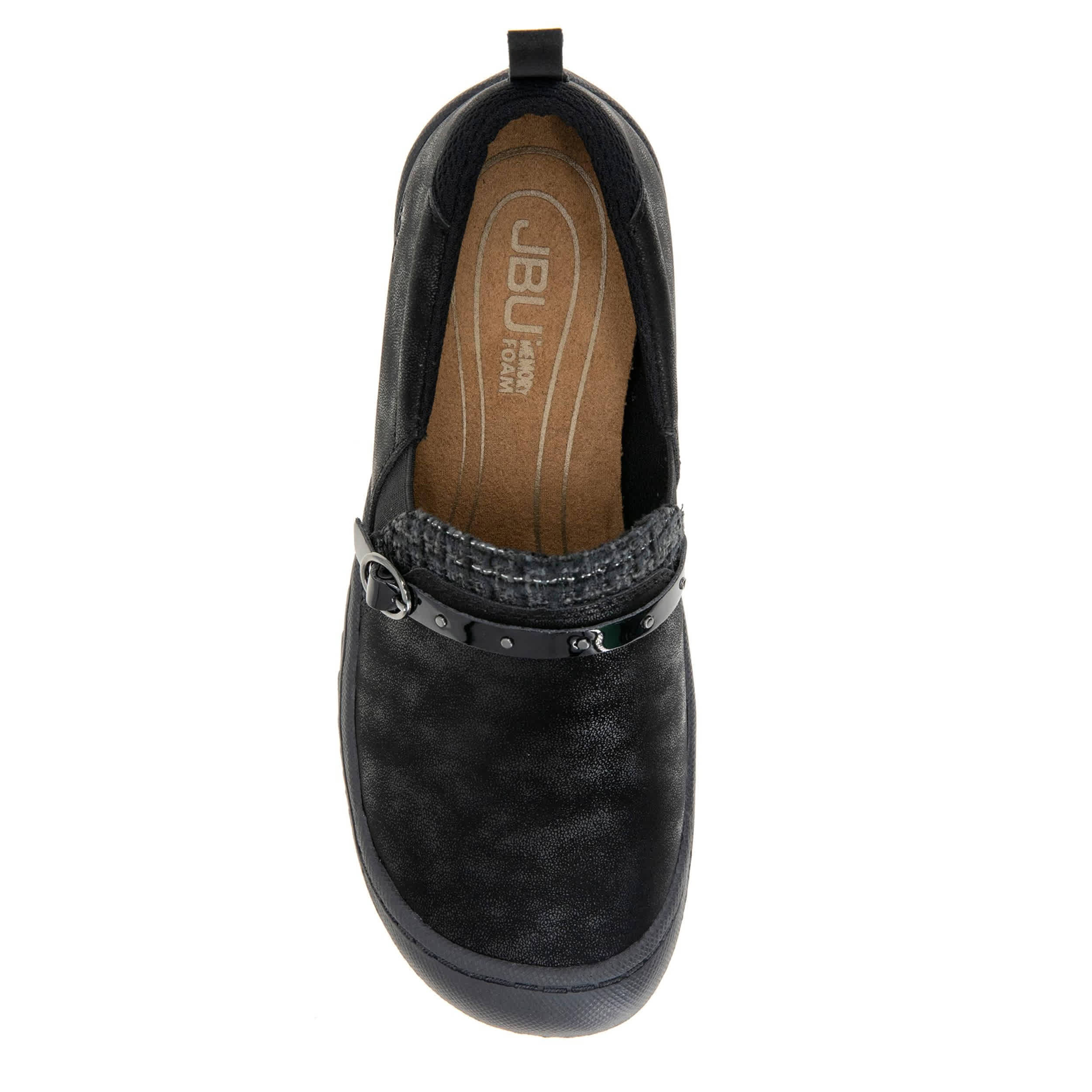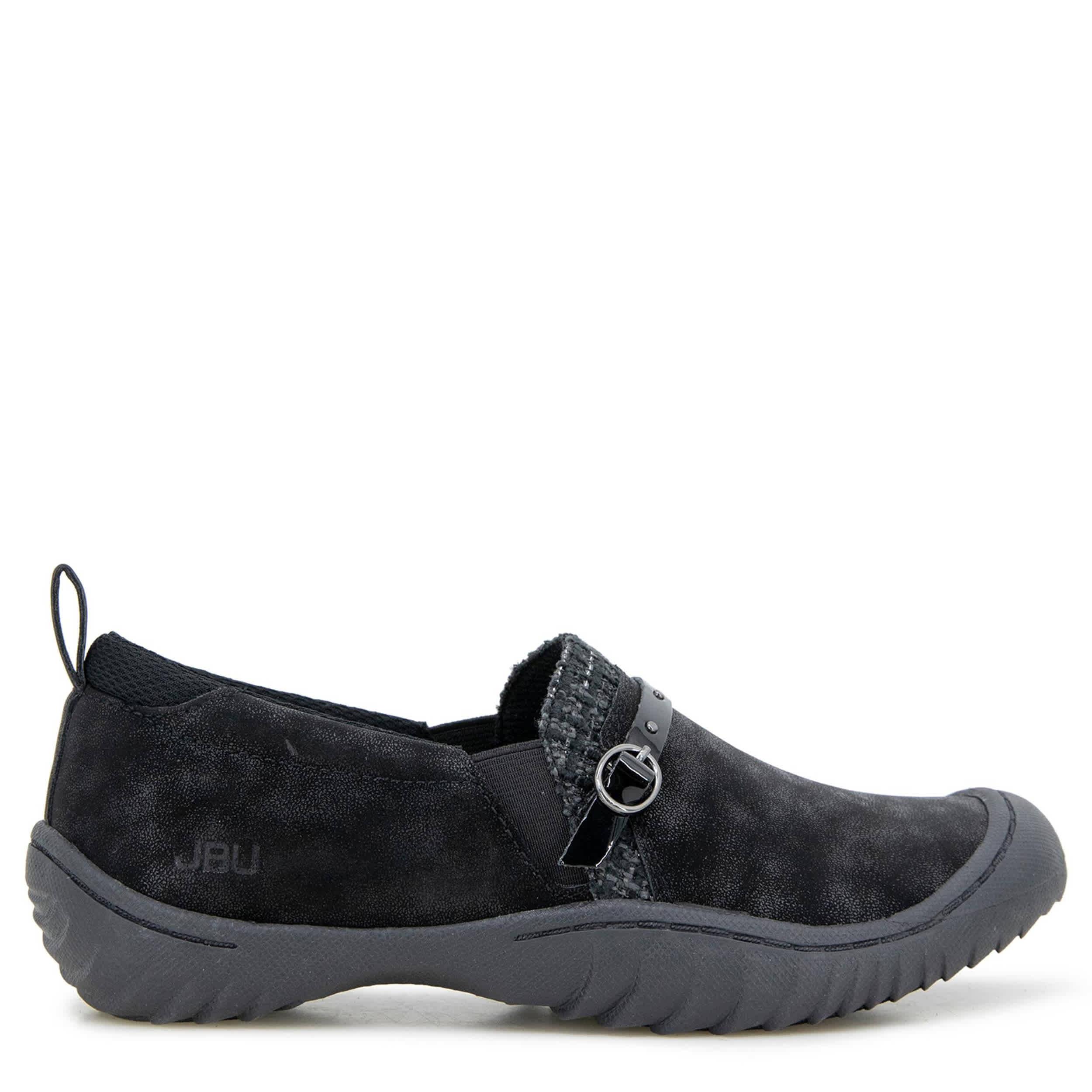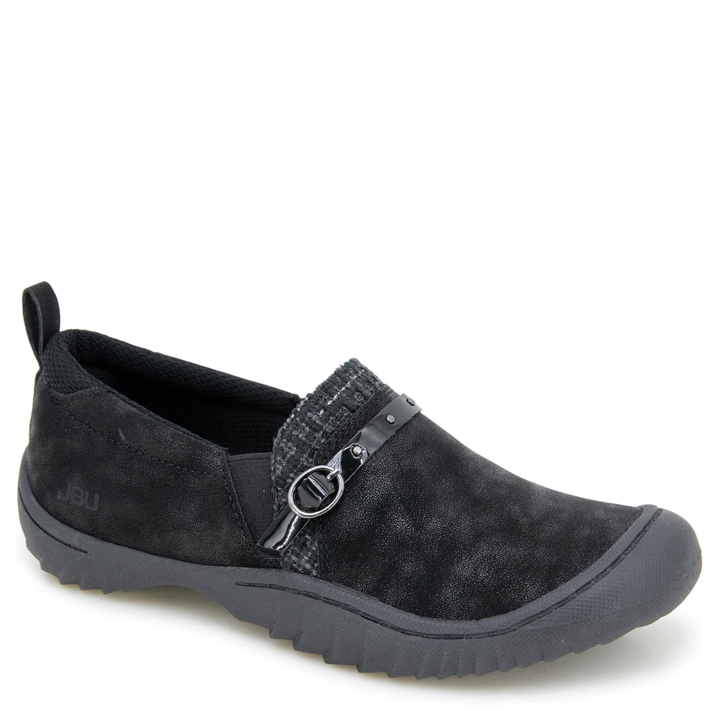 Enjoy the texture of the JBU Mavis slip-on sneaker. Featuring a vegan leather upper with a subtle tweed panel overlay and polished buckle detail, this slip-on also has a rear pull tab for easy entry. The contoured insole cradles, while the All Terra traction offers durable stability.