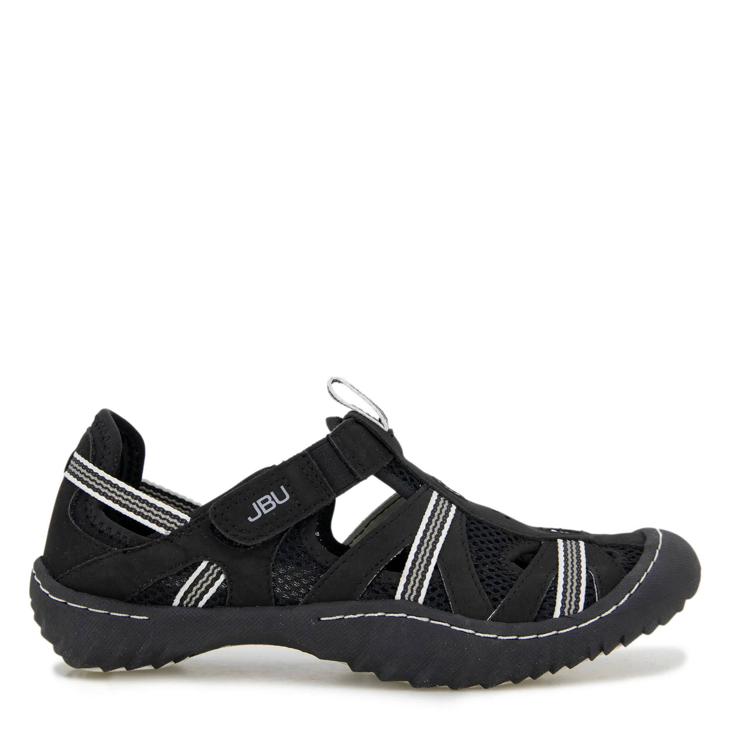 Adventure awaits in the JBU Regional- Water Ready women's slip-on sneaker. With a burnished faux leather and mesh upper featuring an easily adjustable hook-and-loop strap for a secure fit, this lightweight sneaker can handle it all. The EVA comfort insole cushions your feet, while the All Terra traction outsole provides excellent grip and stability.