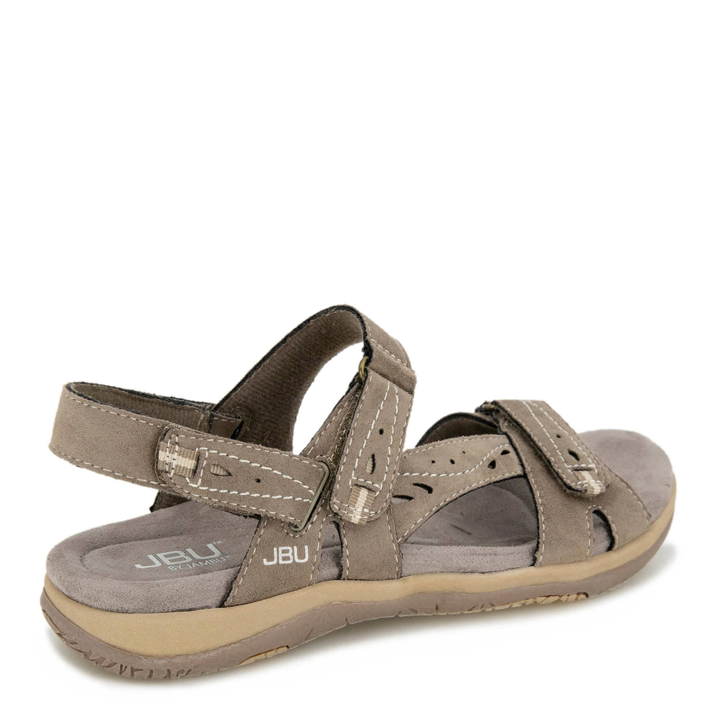 Enjoy carefree days outside in the Stephie Vegan women's trekking sandal from JBU. With a vintage vegan nubuck upper featuring dual hook-and-loop straps for a convenient fit, this sandal supports your adventurous on-the-go nature. The microsuede lining and Memory Foam footbed offers comfort, while the TPR outsole is flexible yet durable.
