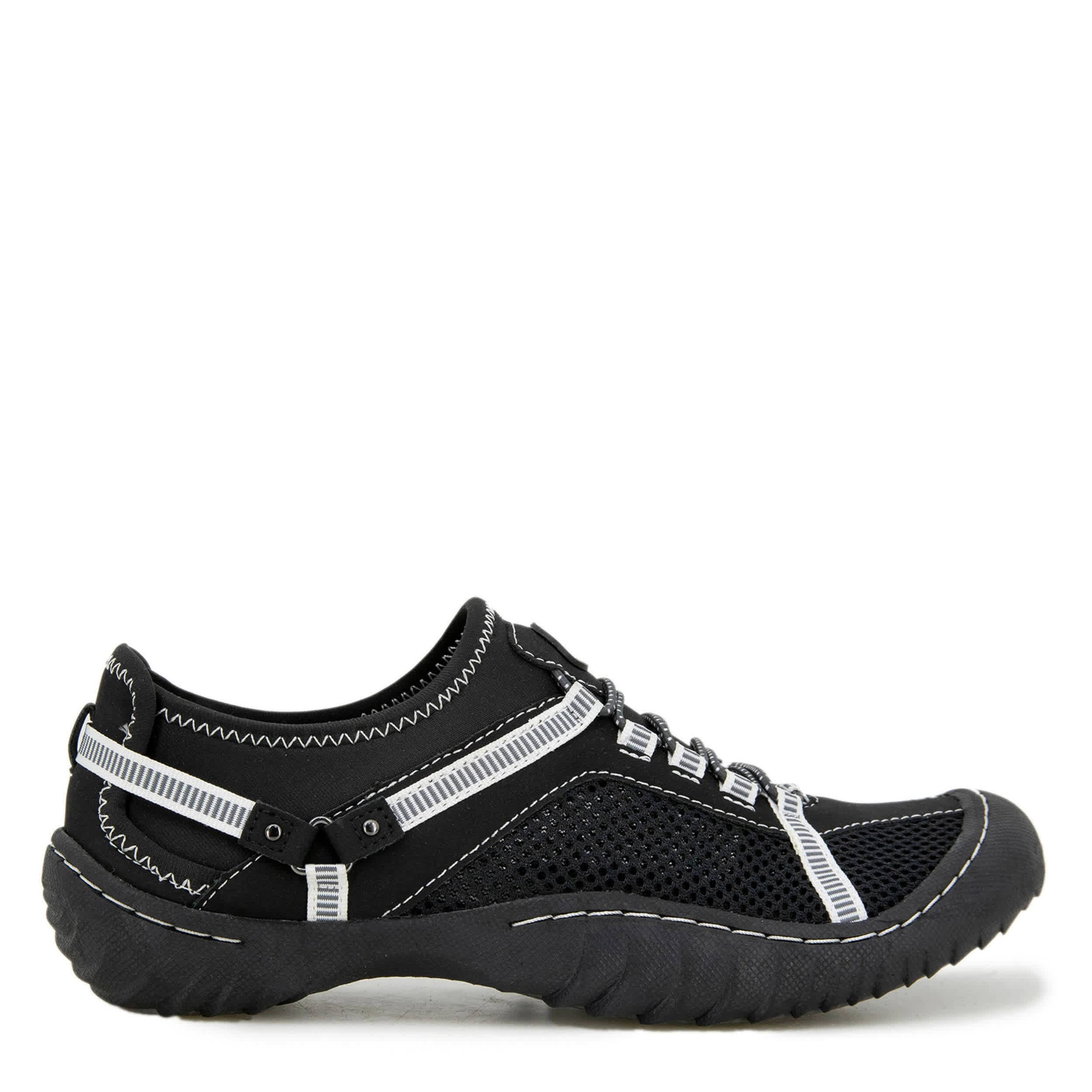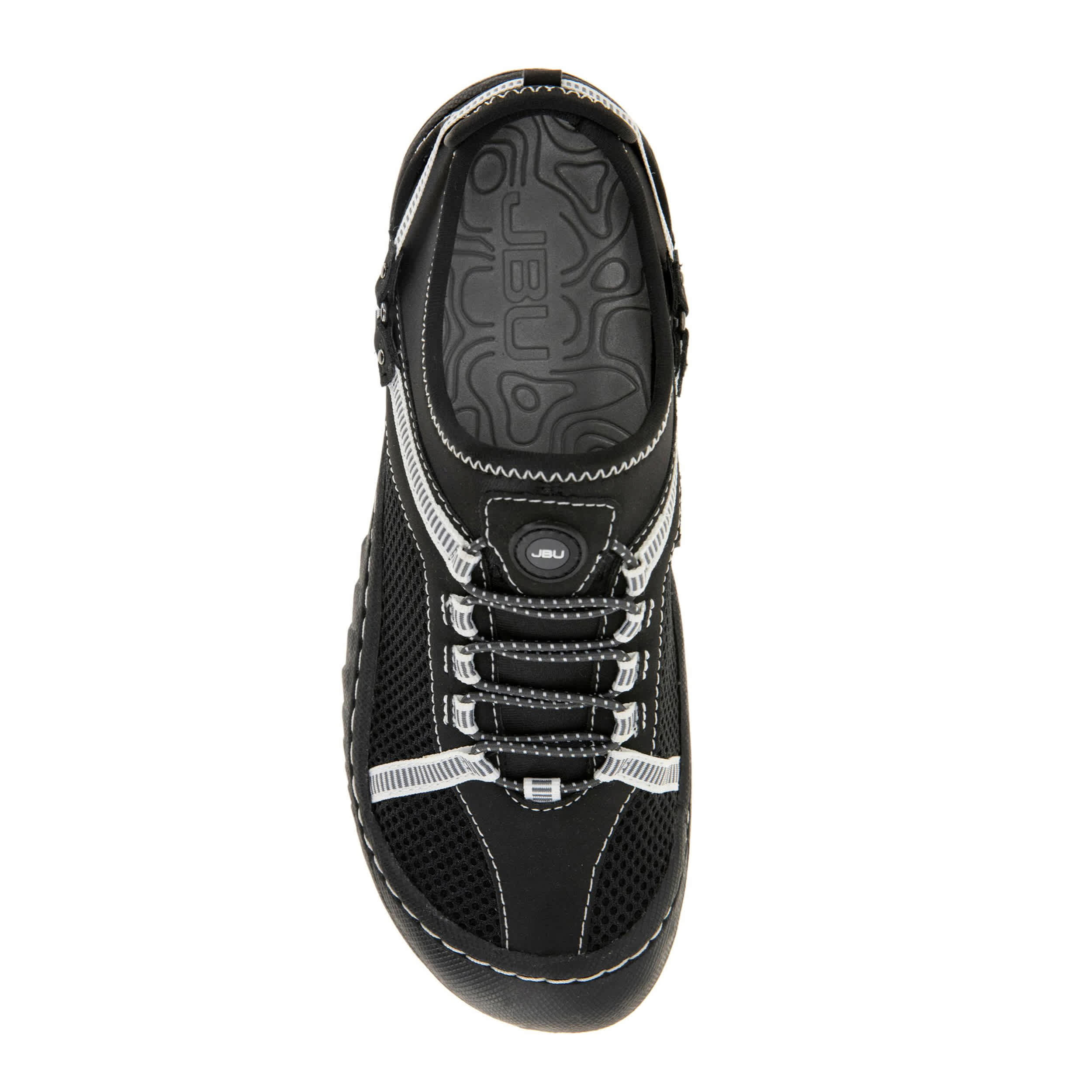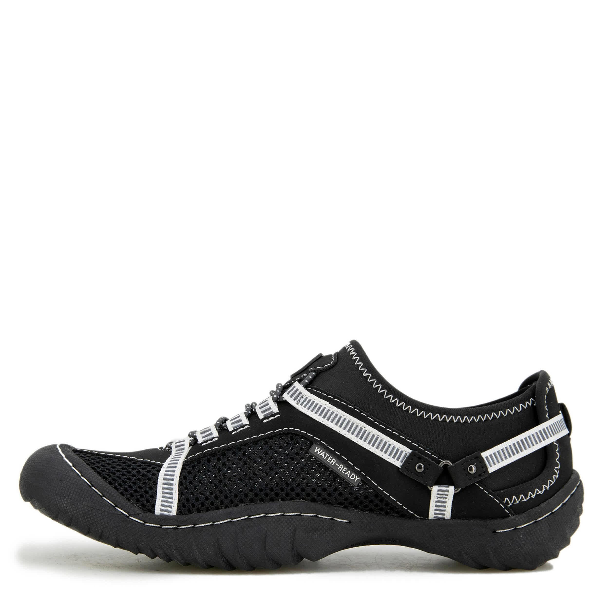 Forge ahead, in orderly fashion, with the JBU Tahoe Wide women's water shoe. With a water-ready mesh & microfiber upper featuring bungee cord lacing for a secure fit, this slip-on shoe also has color-blocked canvas harness accents for a pop of style and extra support. The contoured EVA insole cushions every step while the non-slip outsole offers durable, multi-surface traction.