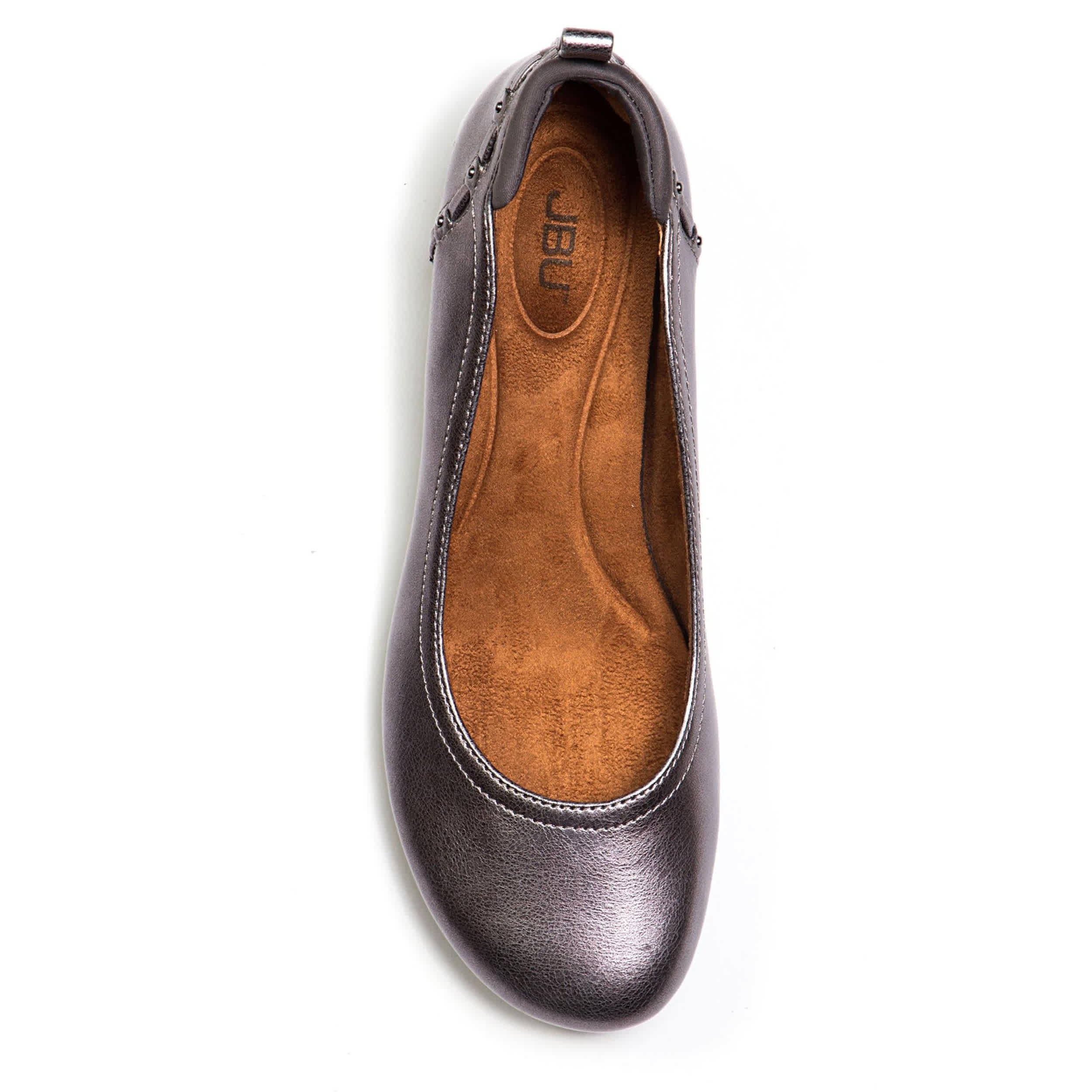 Polish up your minimalist look in the JBU Vivian flat. With a vegan leather upper featuring a studded woven strap for extra flair, this slip-on balances style and comfort. Memory foam cushioning and a flexible outsole provide plenty of cozy stability.