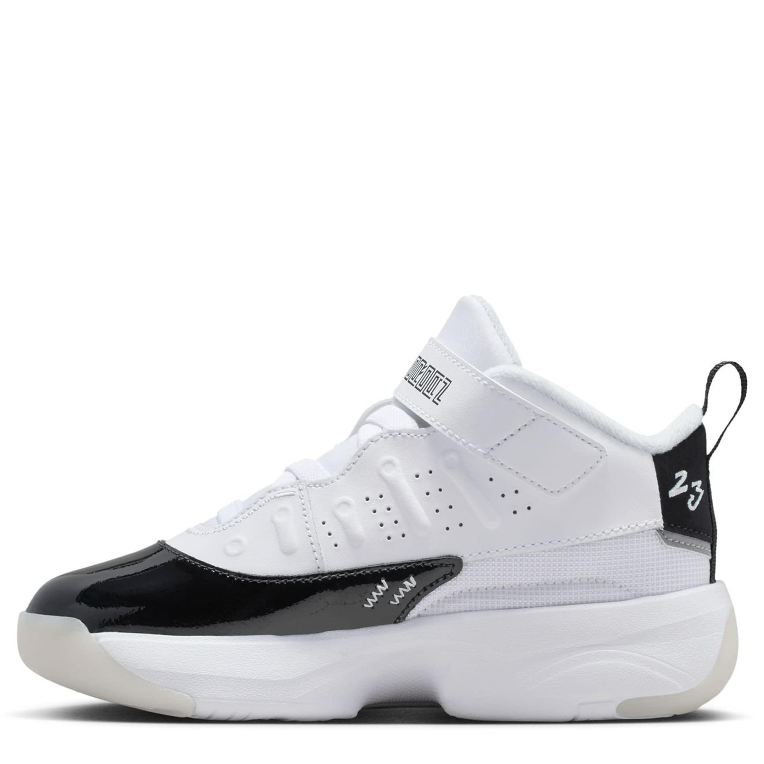 Mash-up his everyday style with the Jordan Max Aura 7 boys' sneaker. Featuring a durable multi-material upper with patent leather accents to nod to the AJ11, this remixed shoe also has a pull tab for easy entry. The lightweight cushioning adds comfort, while the outsole provides bounce and traction.