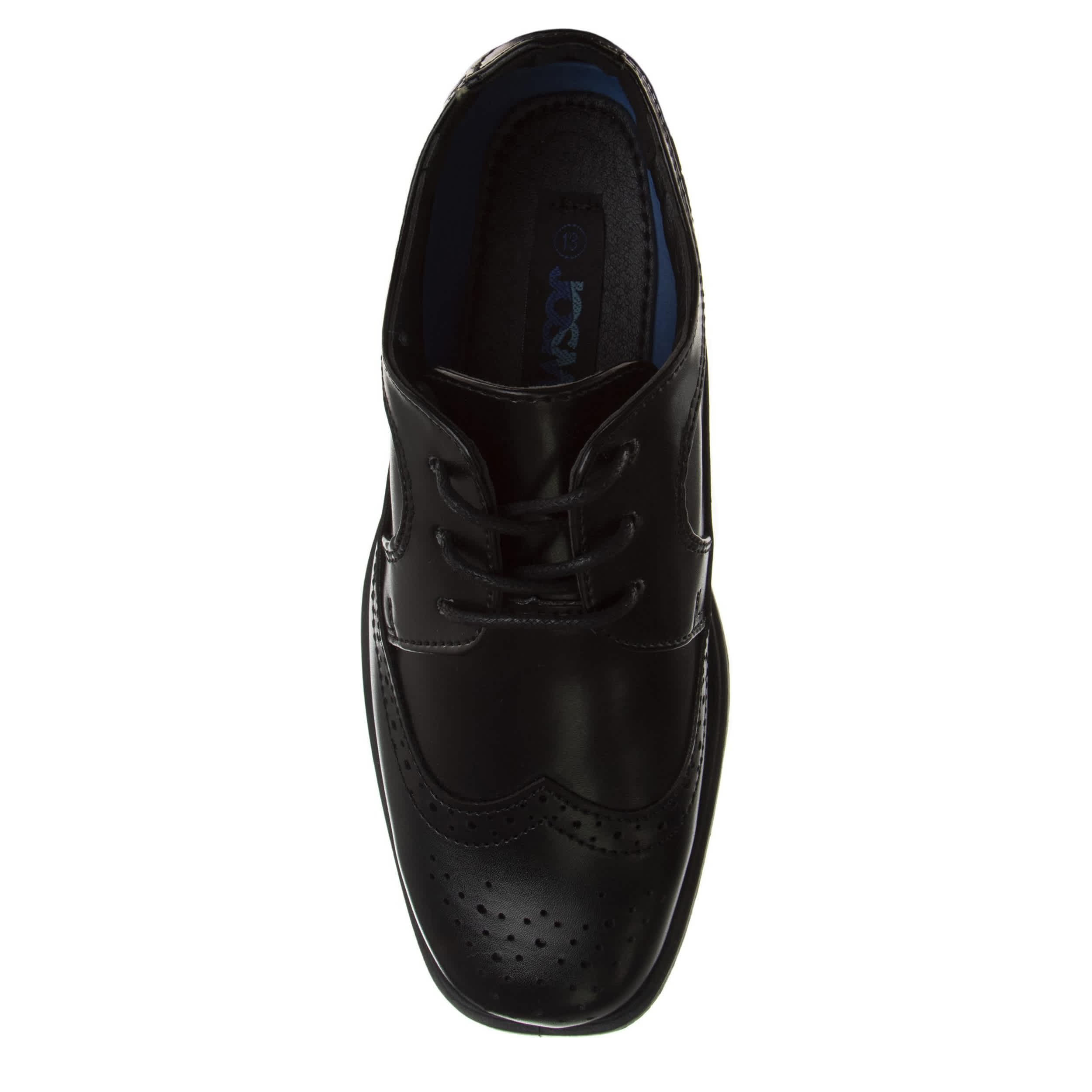 First impressions last with the Josmo boys' dress shoe. With a faux leather upper featuring perforated detailing for a stylish finish, this oxford looks great with slacks or a suit, depending on the occasion. The footbed soothes his foot while the lightweight outsole is flexible.