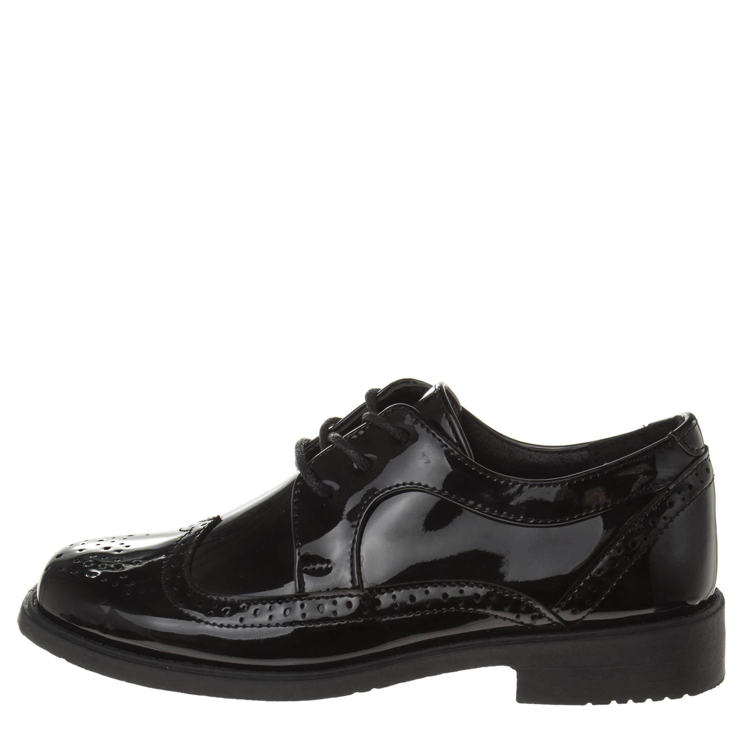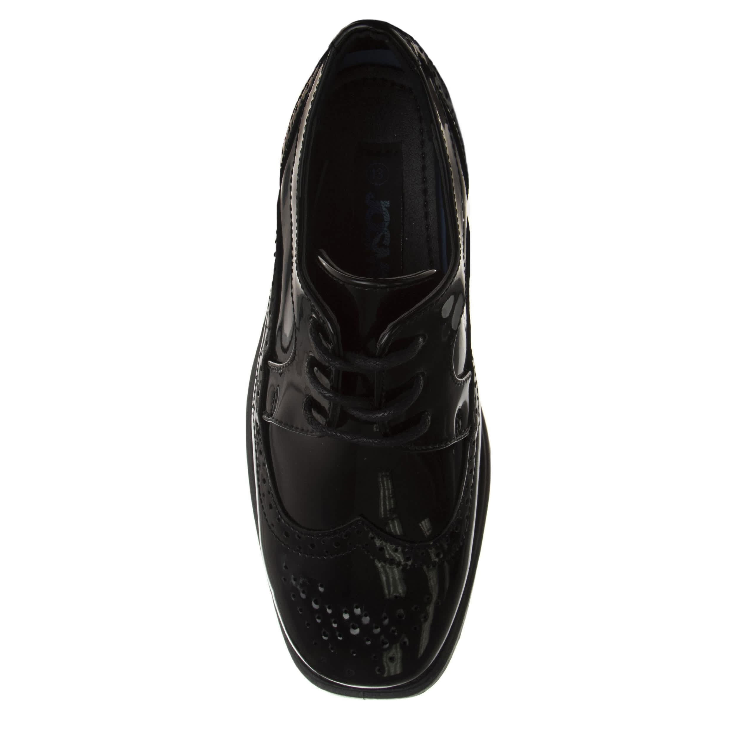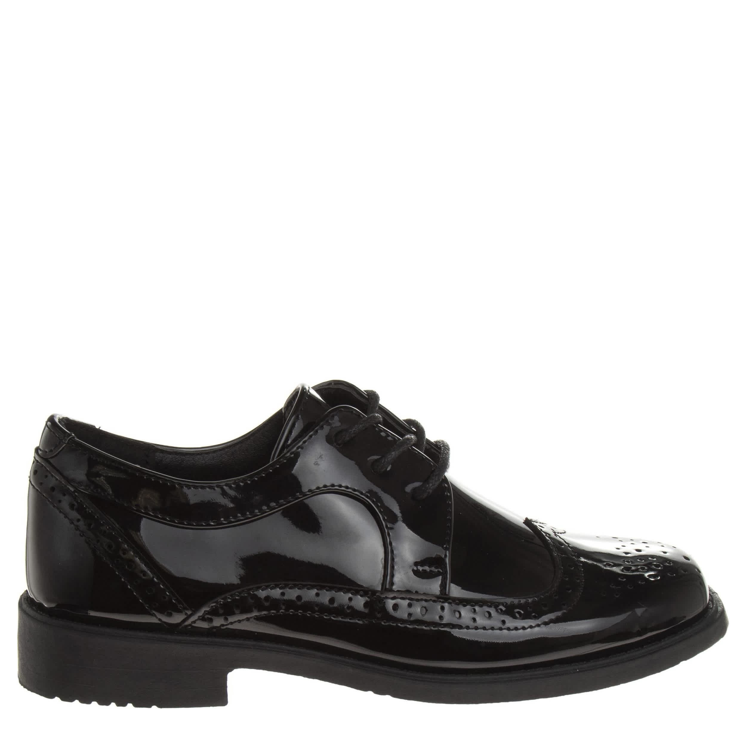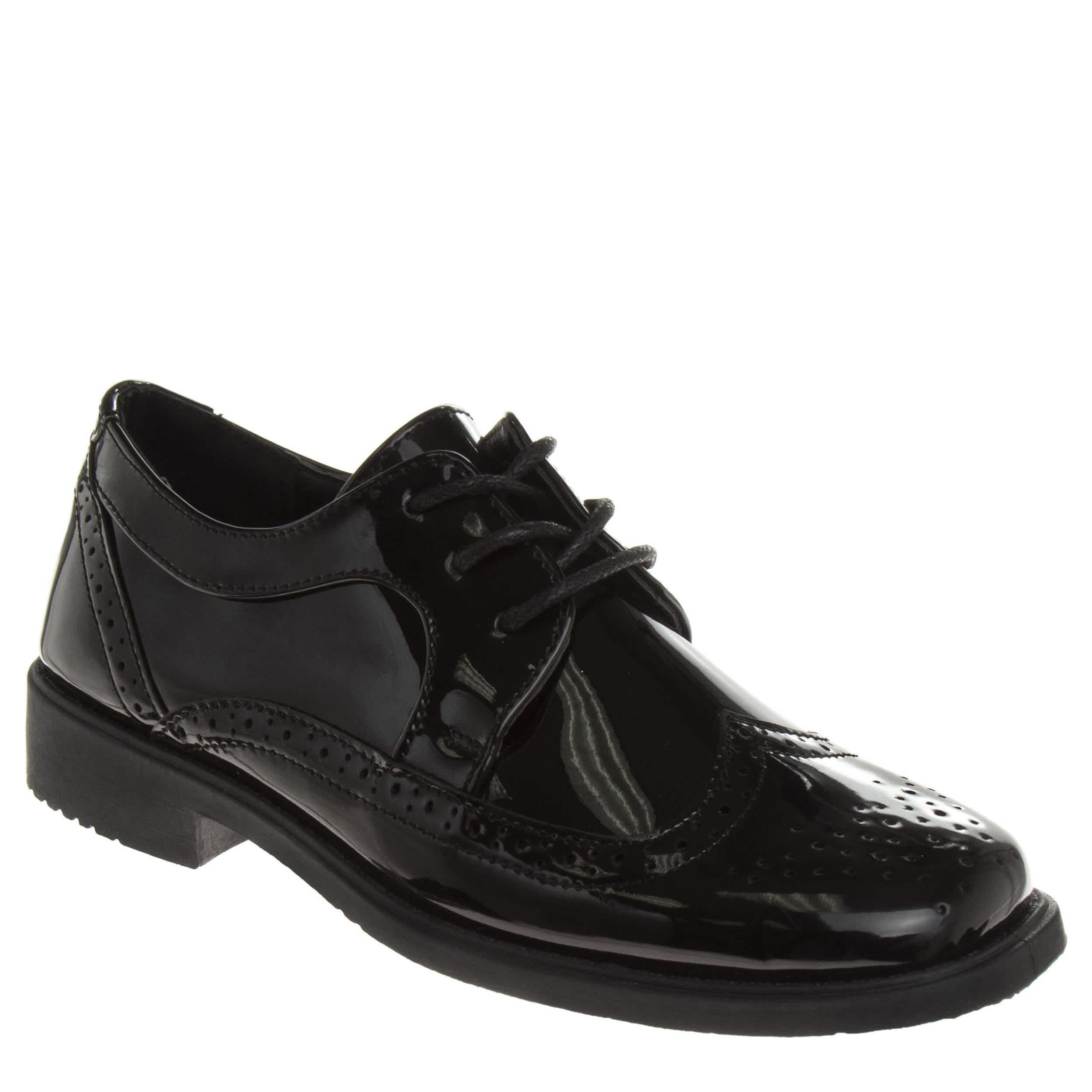 First impressions last with the Josmo infant boys' dress shoe. With a glossy patent leather upper featuring perforated detailing for a stylish finish, this oxford looks great with slacks or a suit, depending on the occasion. The footbed soothes his little foot while the lightweight outsole is flexible.