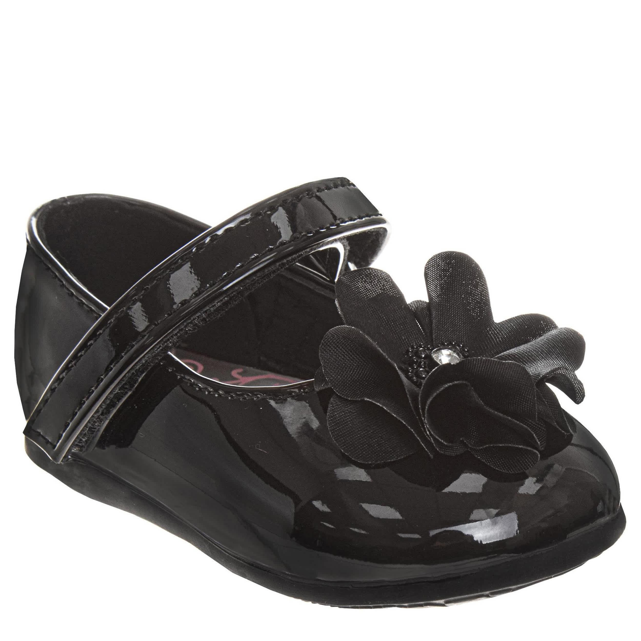 Let her shine in the infant girls' dress shoe from Josmo. With a glossy patent leather upper featuring a flower accent, this cute Mary Jane is perfect for special occasions. The insole soothes her little foot while the flat sole adds durability.
