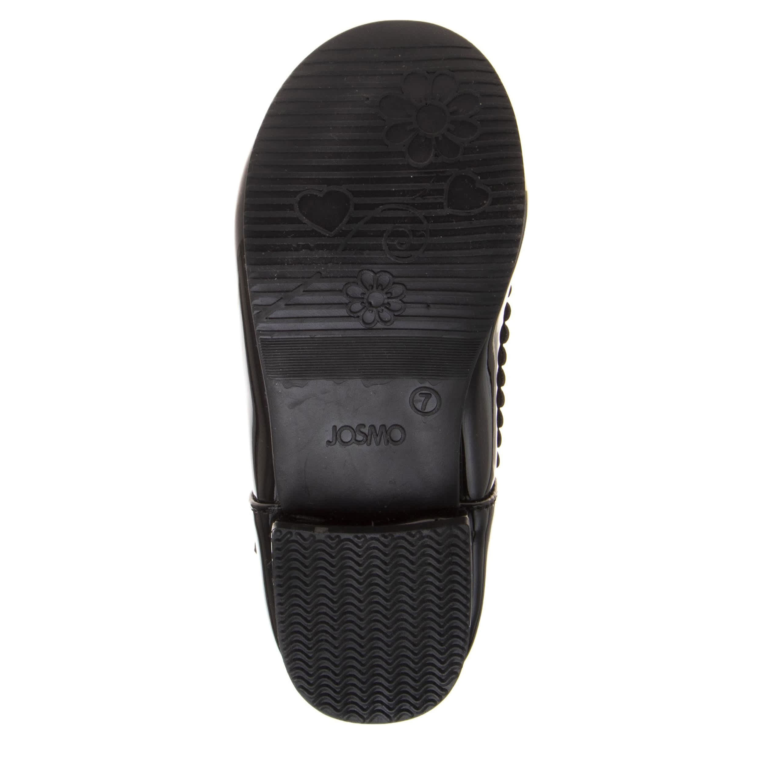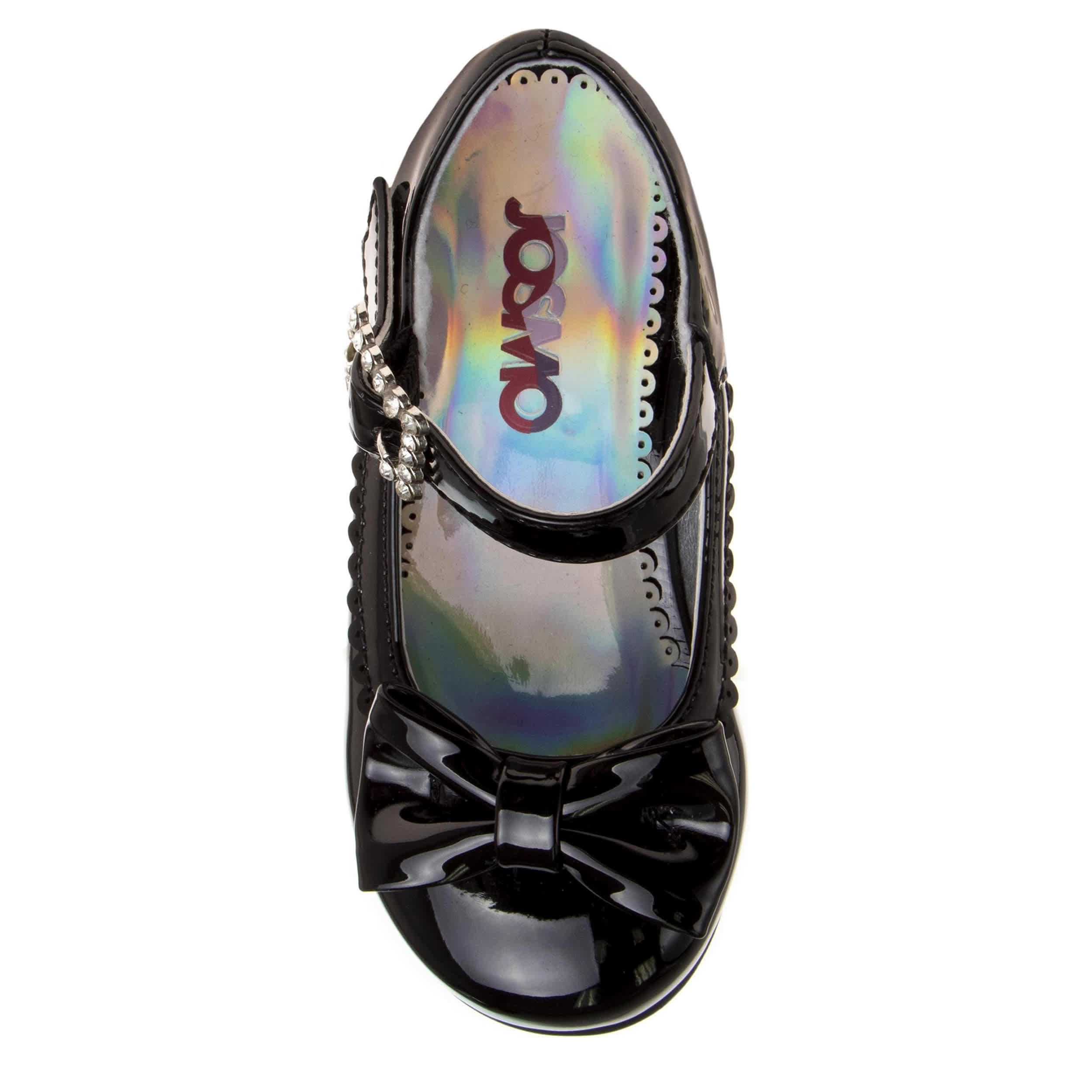 She'll brighten up any event in the toddler girls' dress shoe from Josmo. With a glossy patent leather upper featuring rhinestone accented buckle for extra style, this fancy shoe has a cute bow at the vamp. The insole soothes her foot while the low heel adds stability.