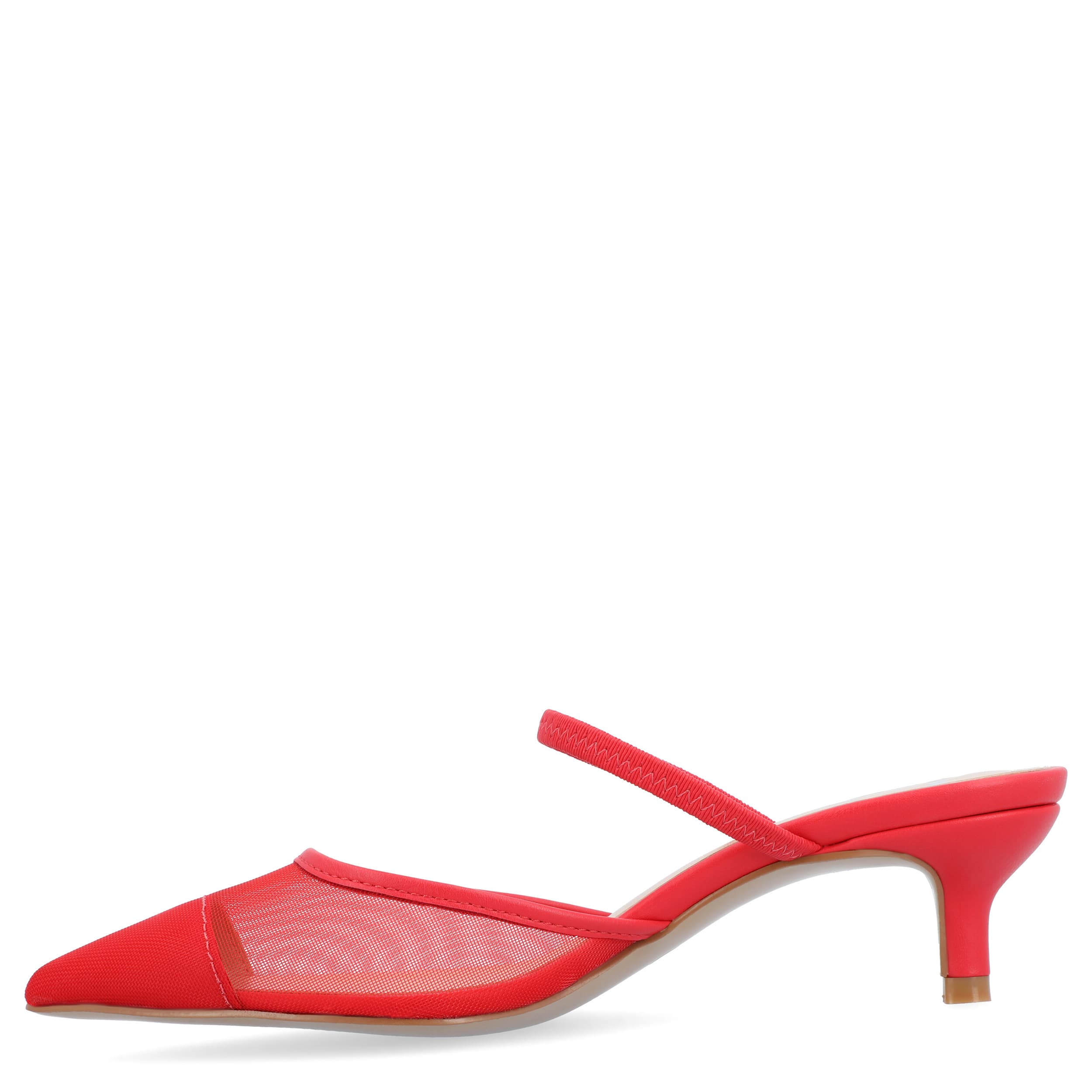 Add a touch of playful elegance to your wardrobe with the Allana mesh kitten heel from Journee Collection. These stylish heels feature a pointed toe, a charming polka-dot pattern, and a padded insole for added comfort. The 2-inch kitten heel offers a touch of height without sacrificing comfort, making the Allana a versatile choice for both casual and semi-formal occasions.