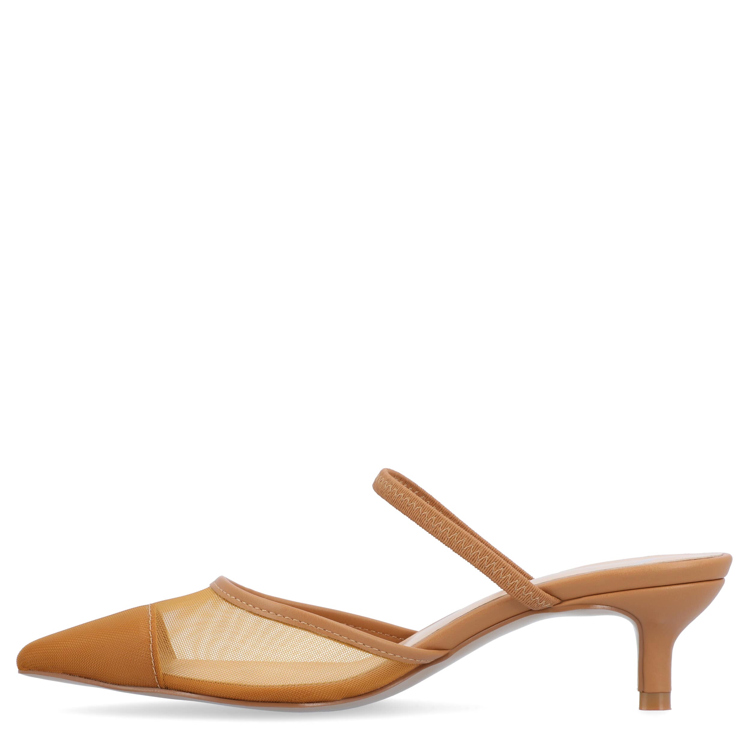 Add a touch of playful elegance to your wardrobe with the Allana mesh kitten heel from Journee Collection. These stylish heels feature a pointed toe, a charming polka-dot pattern, and a padded insole for added comfort. The 2-inch kitten heel offers a touch of height without sacrificing comfort, making the Allana a versatile choice for both casual and semi-formal occasions.