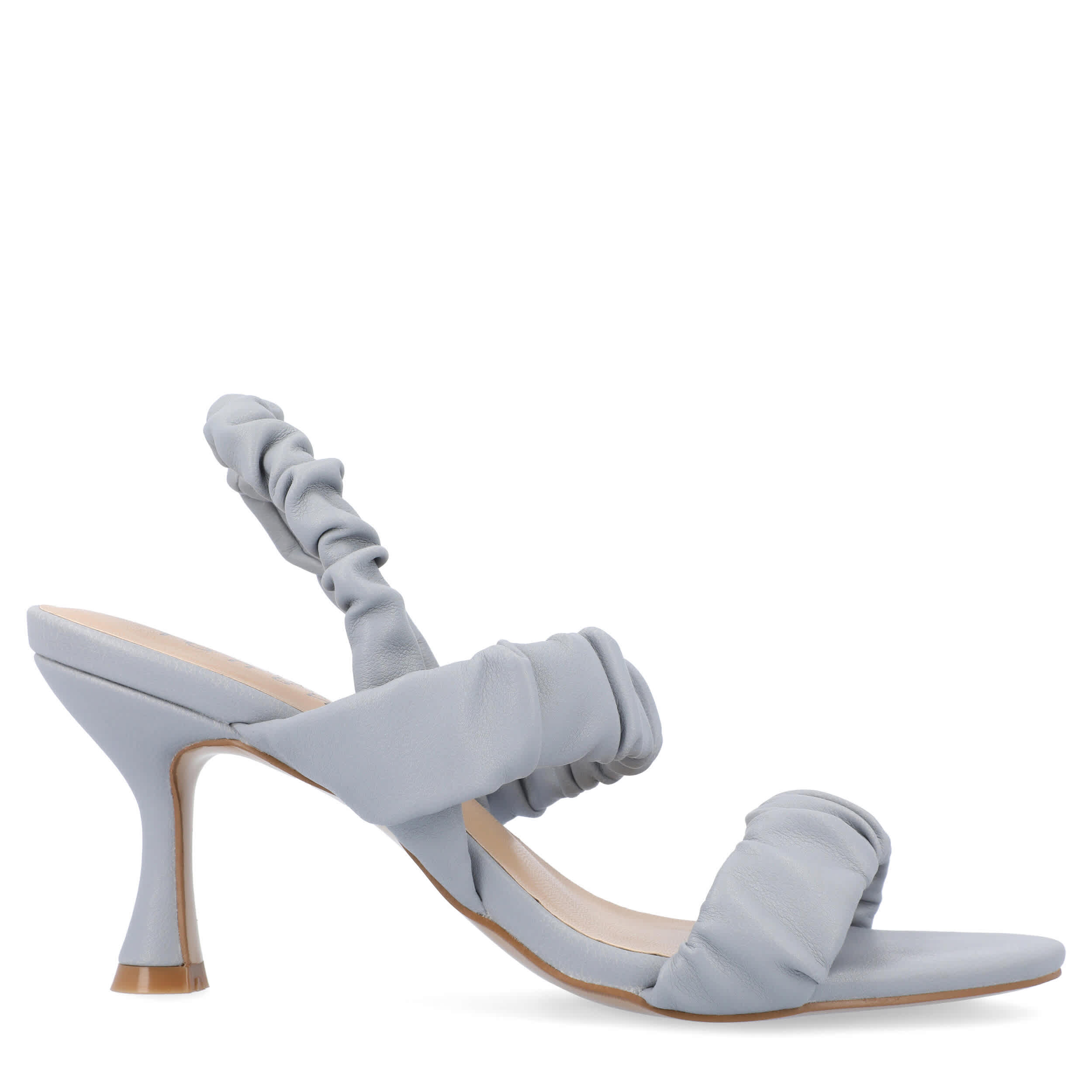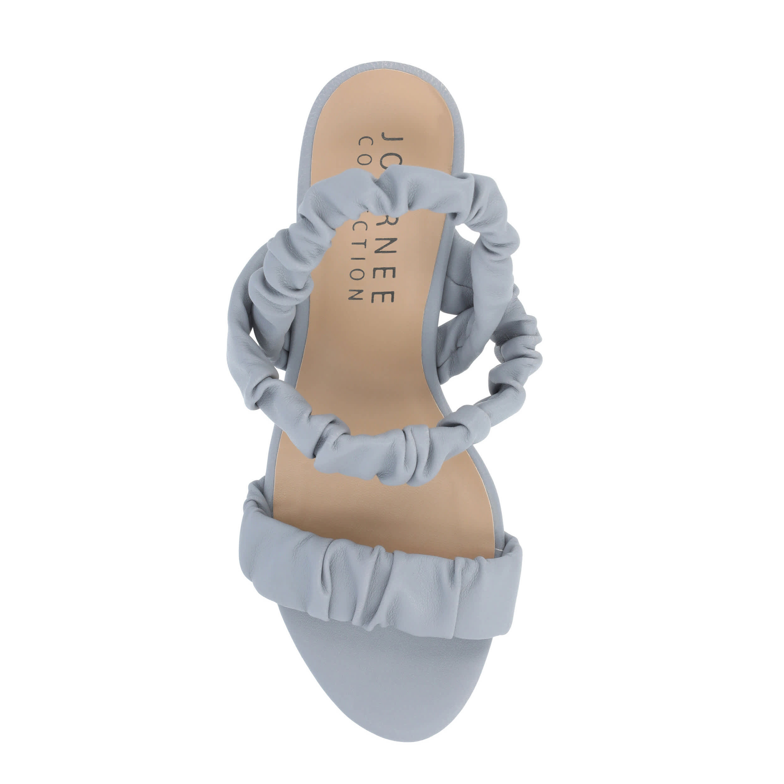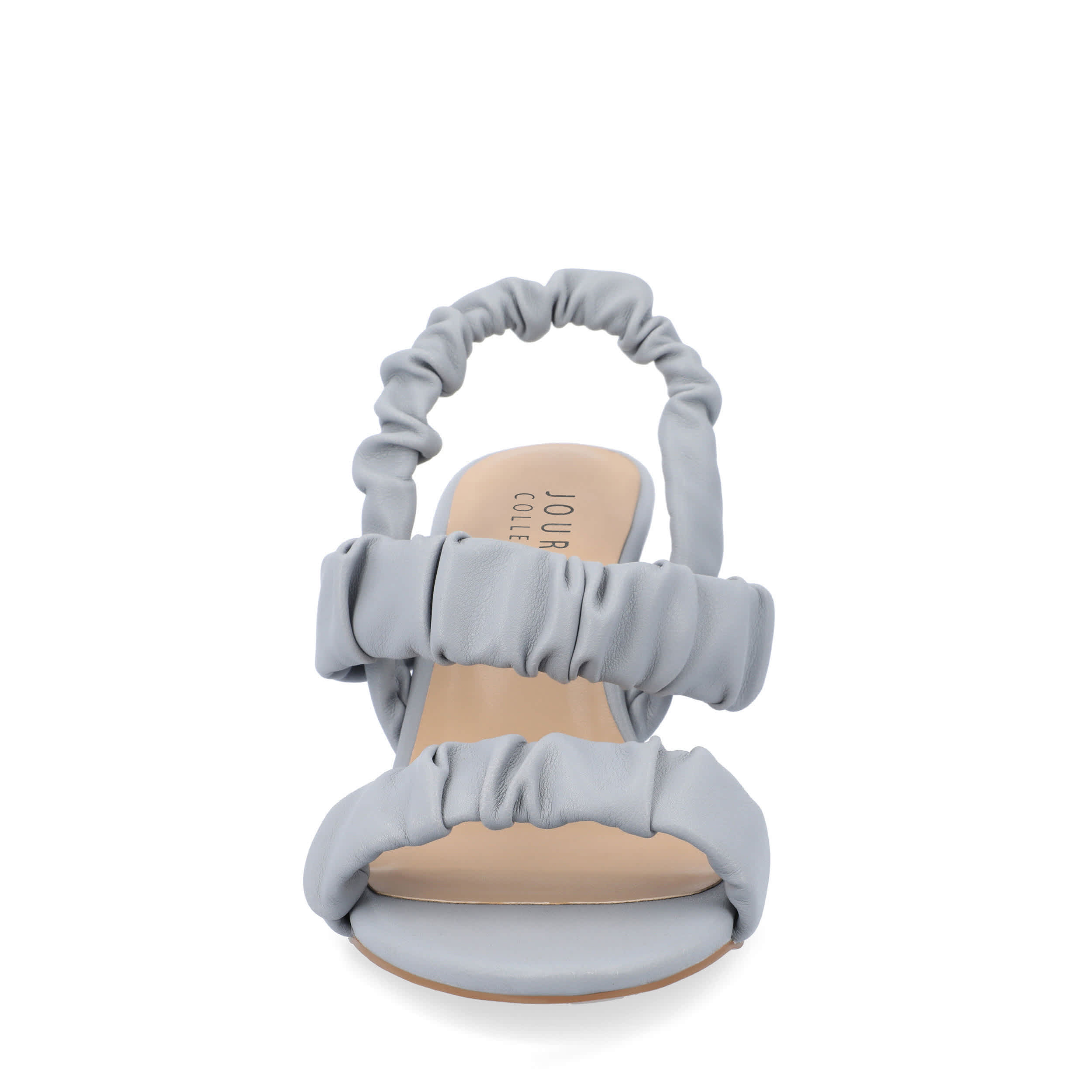 Grab their attention in no time with the Amaree women's sandal from Journee Collection. With a luxe vegan leather upper featuring ruched strap detailing, this chic sandal, with its open round-toe silhouette, will offset any ensemble. A padded footbed comforts your feet, while the 2¾" covered kitten heel creates a flattering lift.