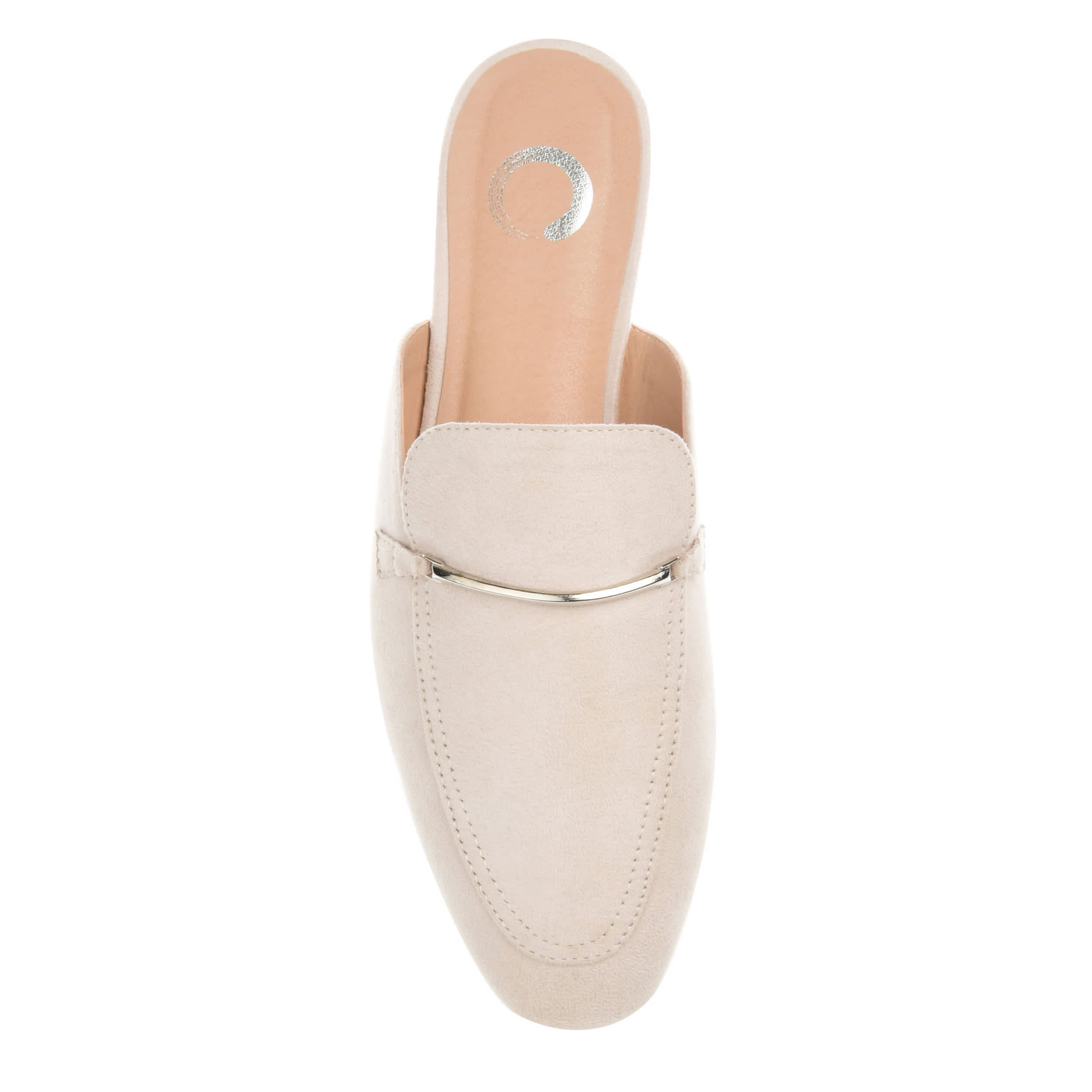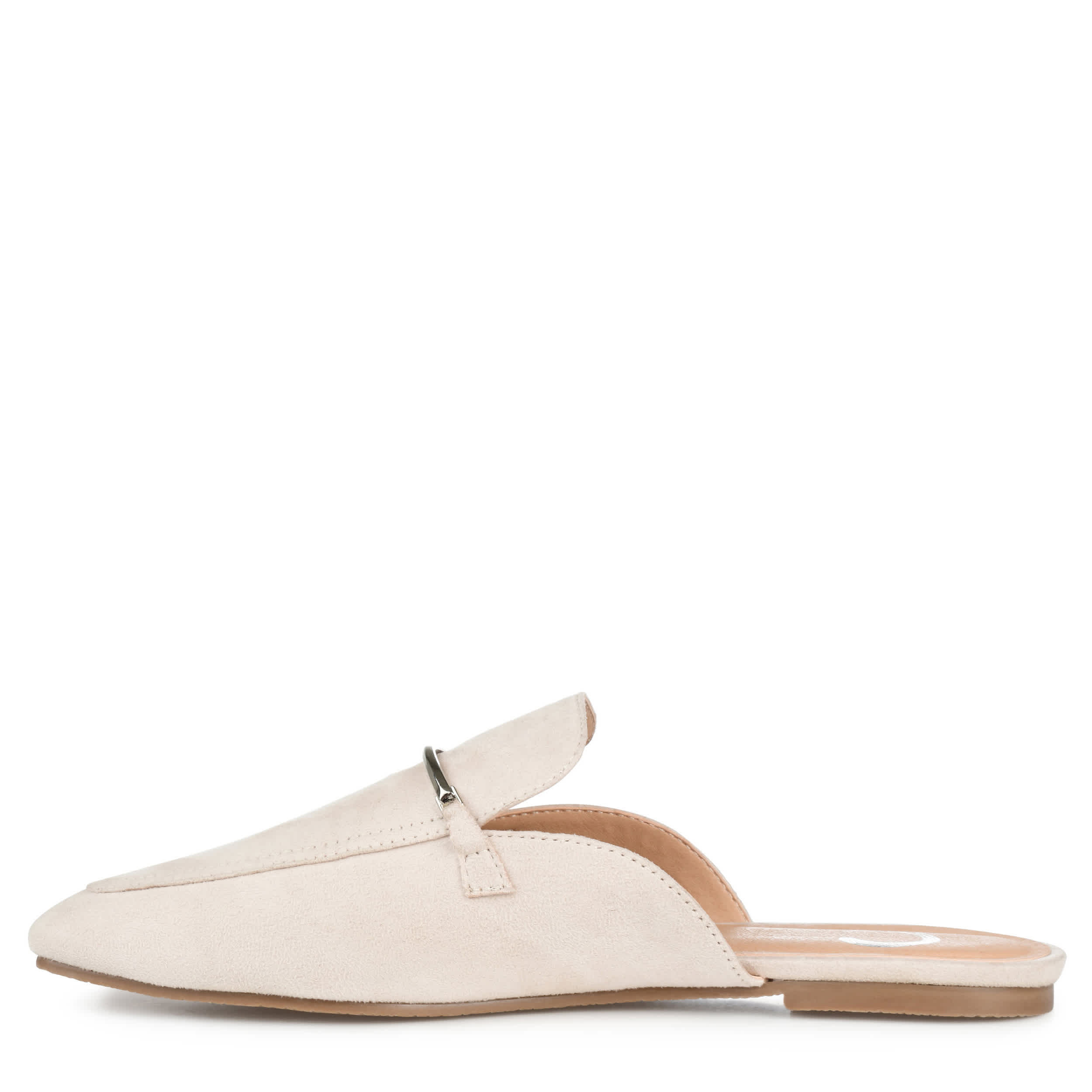 When the occasion calls for a sophisticated touch, reach for the Ameena women's mule from Journee Collection. Its feminine silhouette and square toe tie your outfit together while the flat heel keeps you comfortable. This faux suede upper is complemented by a pretty metallic bar across the vamp that looks amazing with matching accessories.