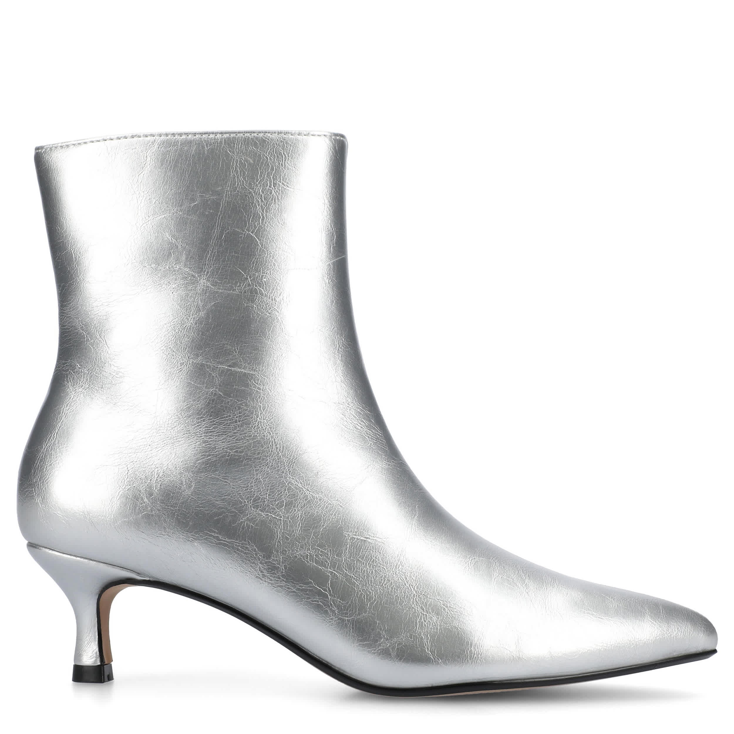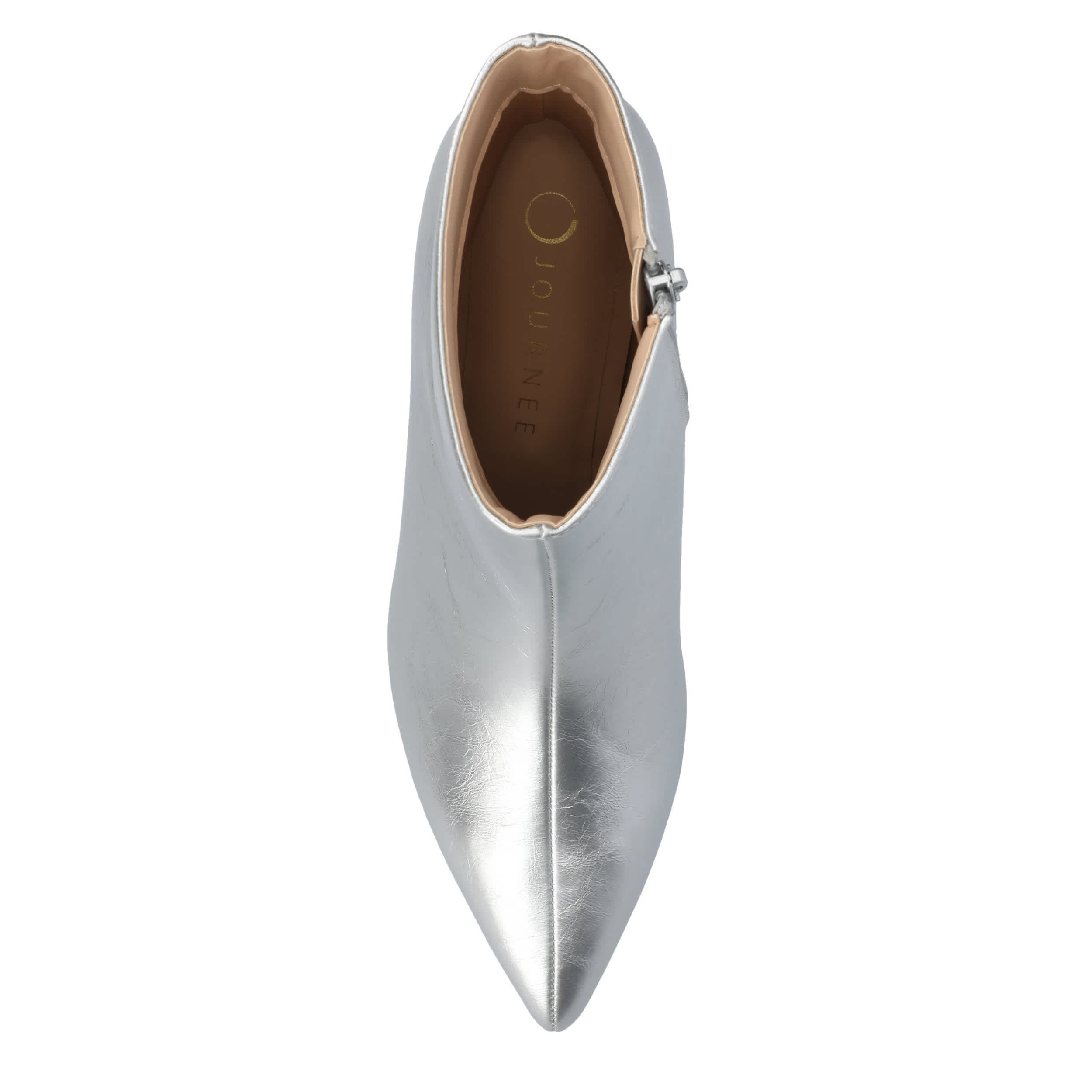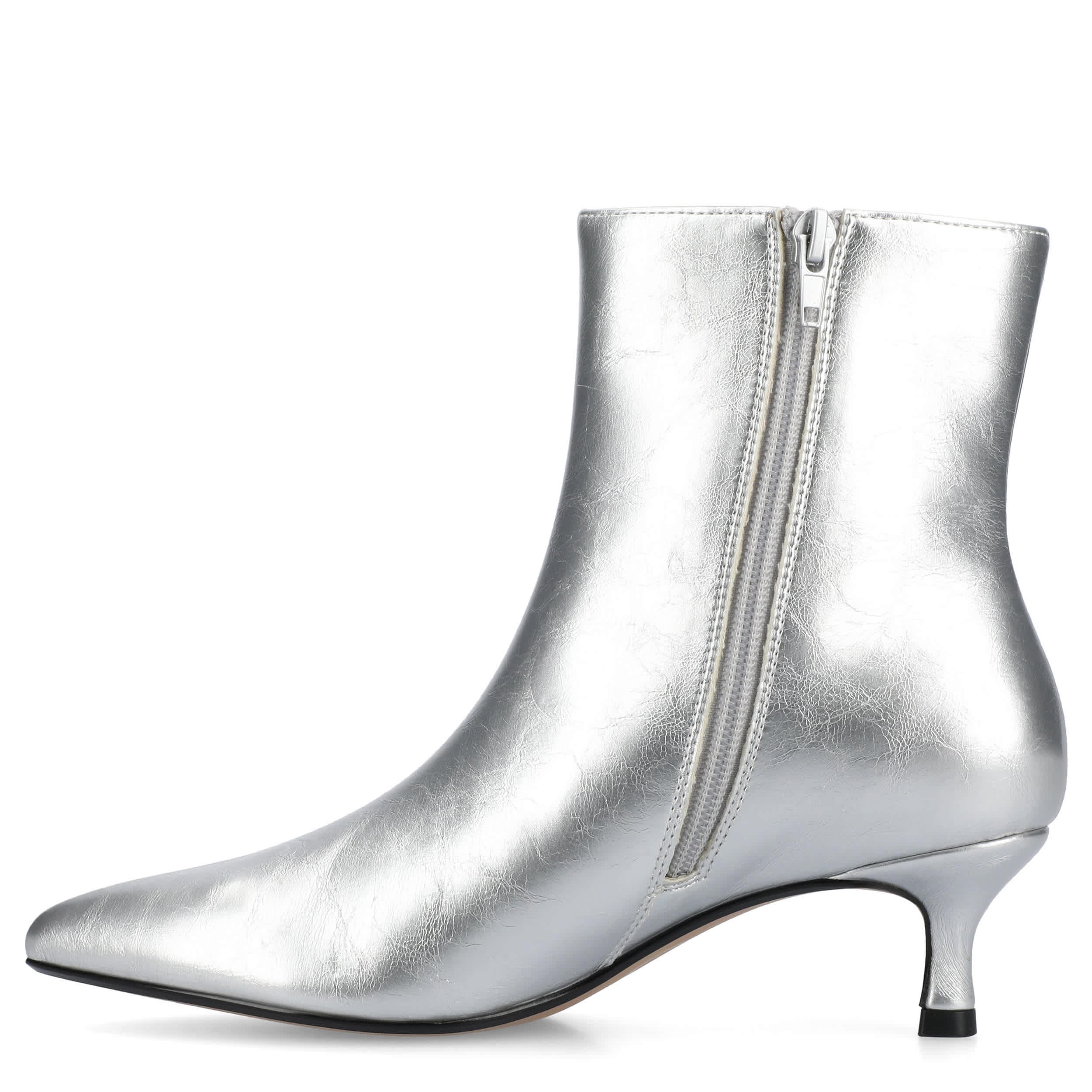 Make your point made in the Arely women's bootie from Journee Collection. With a metallic vegan leather upper featuring a sleek pointed toe for extra style, this easy-on boot is a must-have. The Journee Comfort System insole cushions, while the dainty kitten heel provides a slight lift.