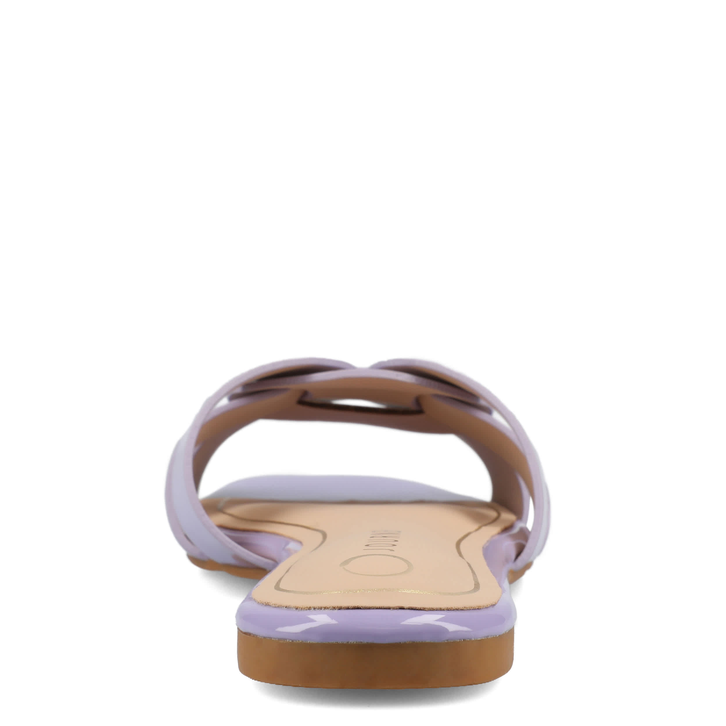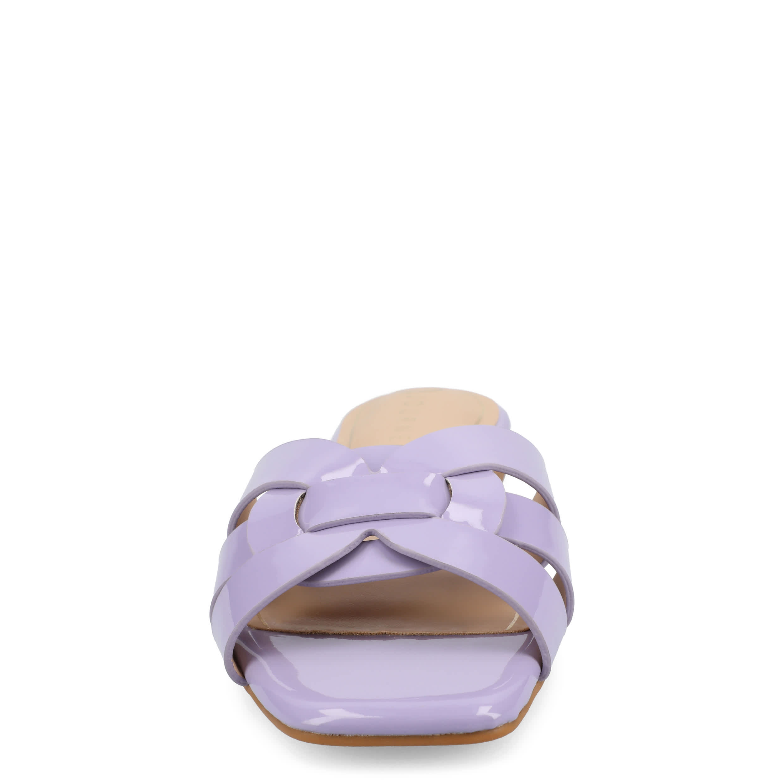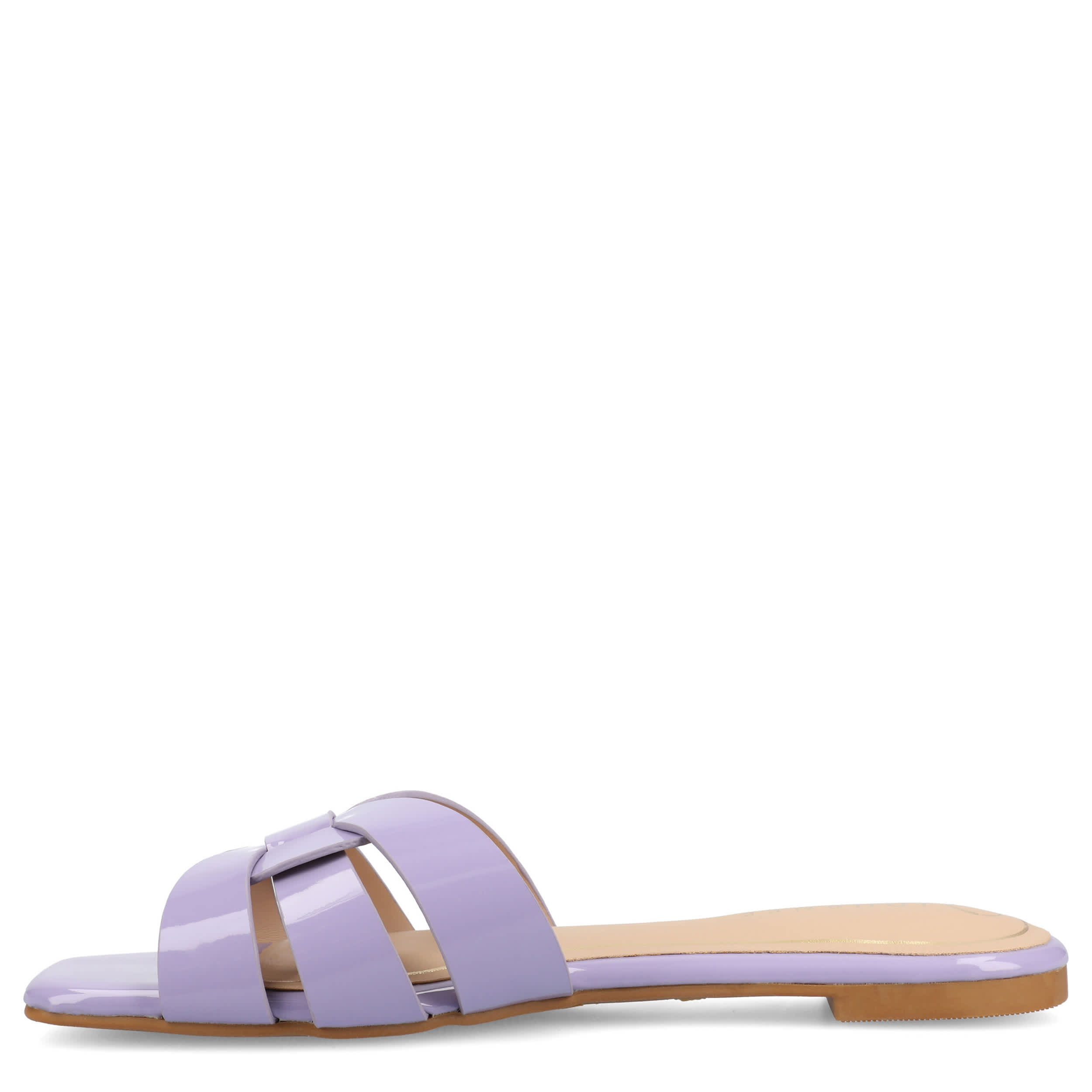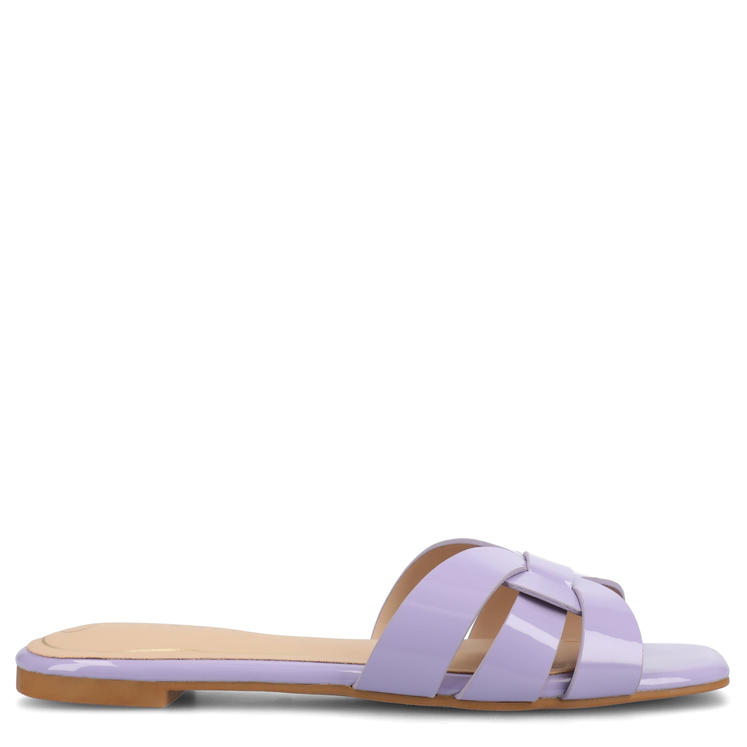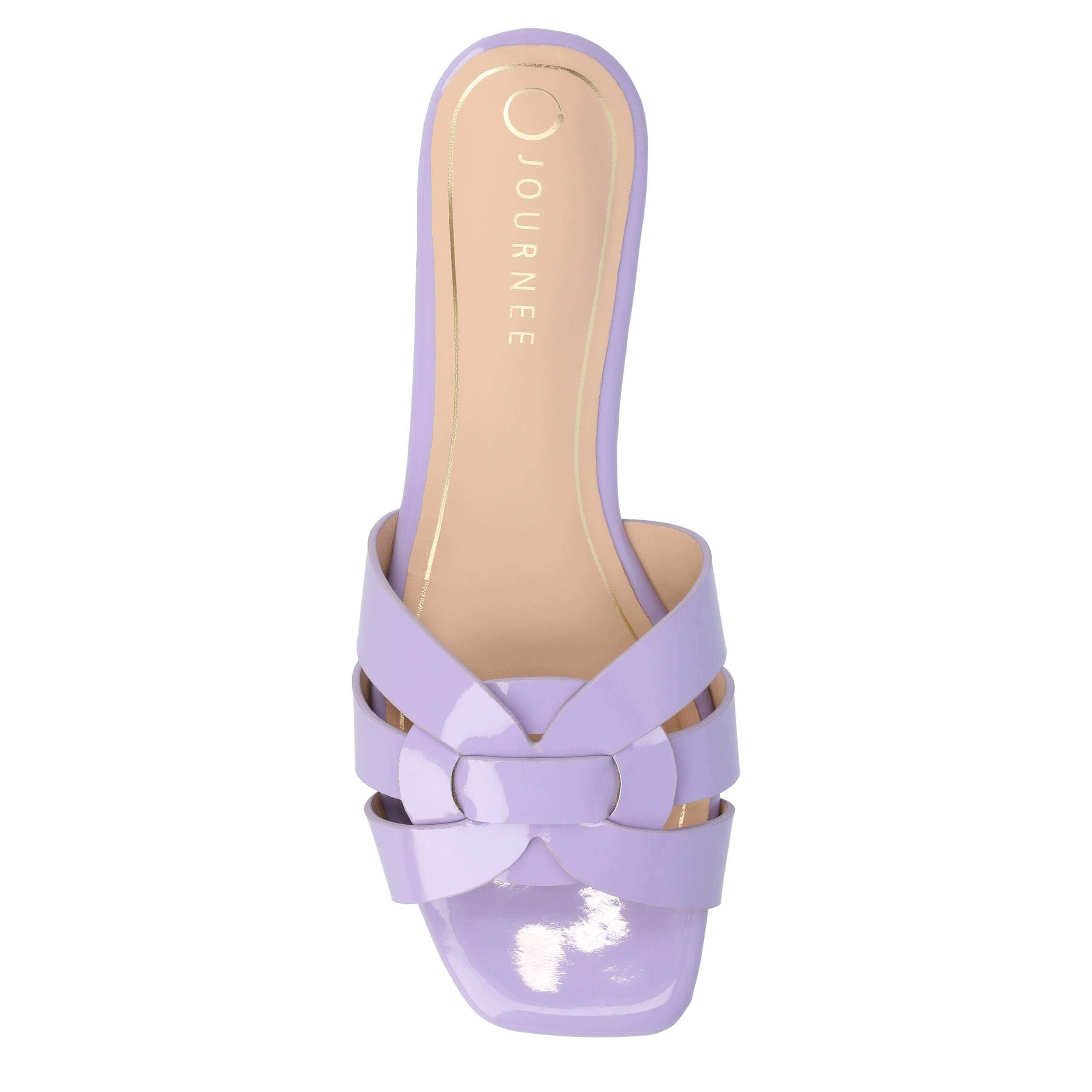 Sophistication comes easy with the Arrina slide sandal from Journee Collection. This shoe, complete with a glossy patent leather upper, has a sleek open-toe design, perfect for casual or formal occasions. The Tru Comfort Foamâ„¢ insole provides cushy support for warm weather wear.