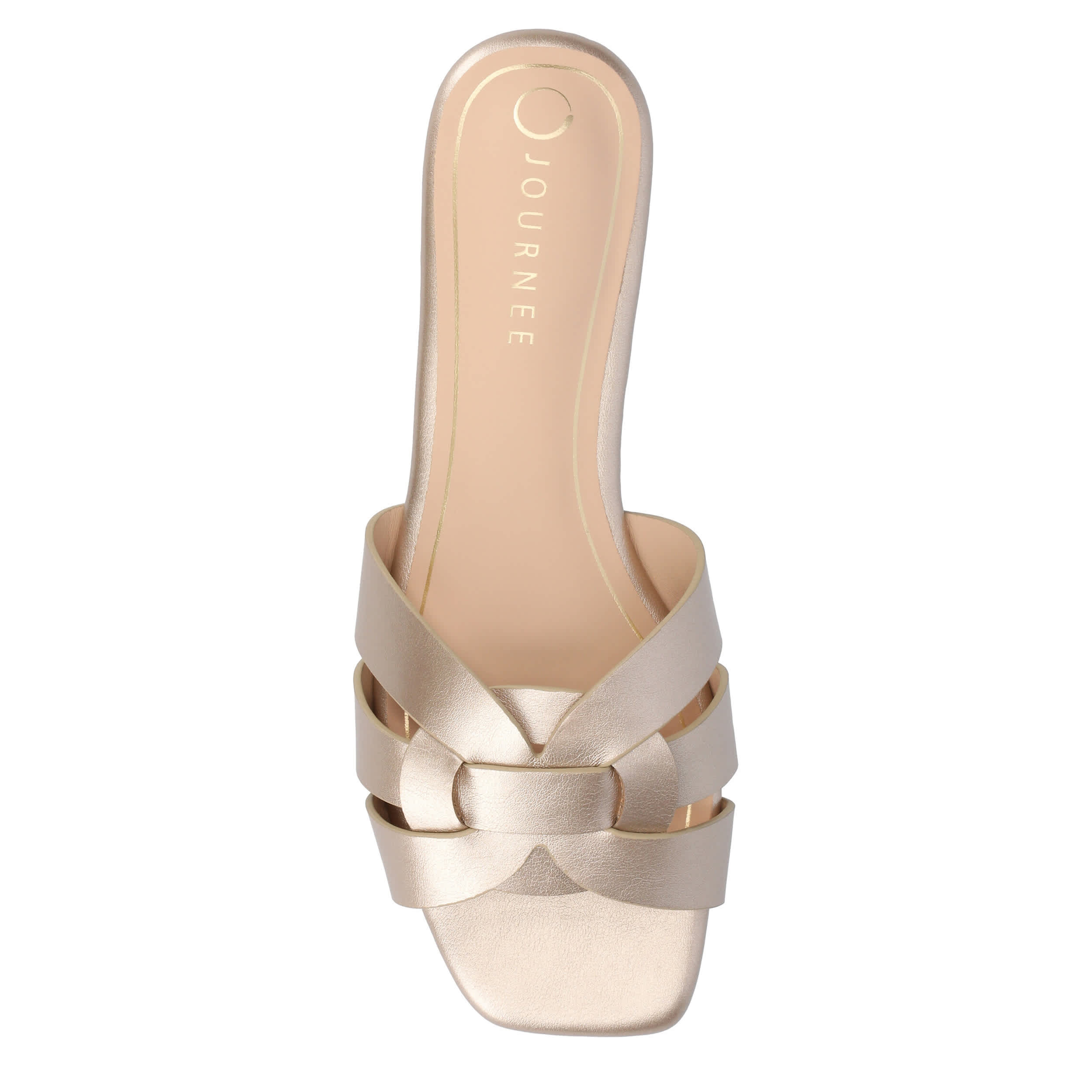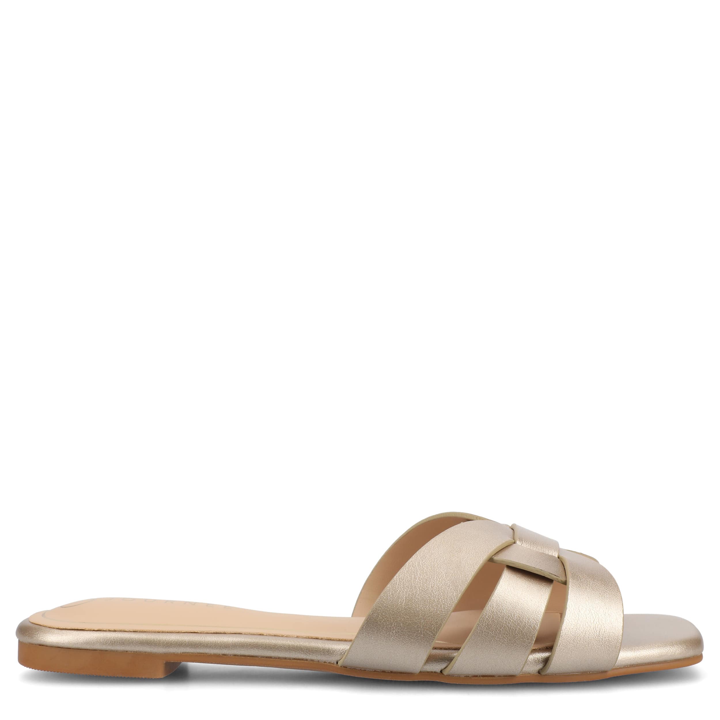 Sophistication comes easy with the Arrina slide sandal from Journee Collection. This shoe, complete with a shiny patent leather upper, has a sleek open-toe design, perfect for casual or formal occasions. The Tru Comfort Foamâ„¢ insole provides cushy support for warm weather wear.