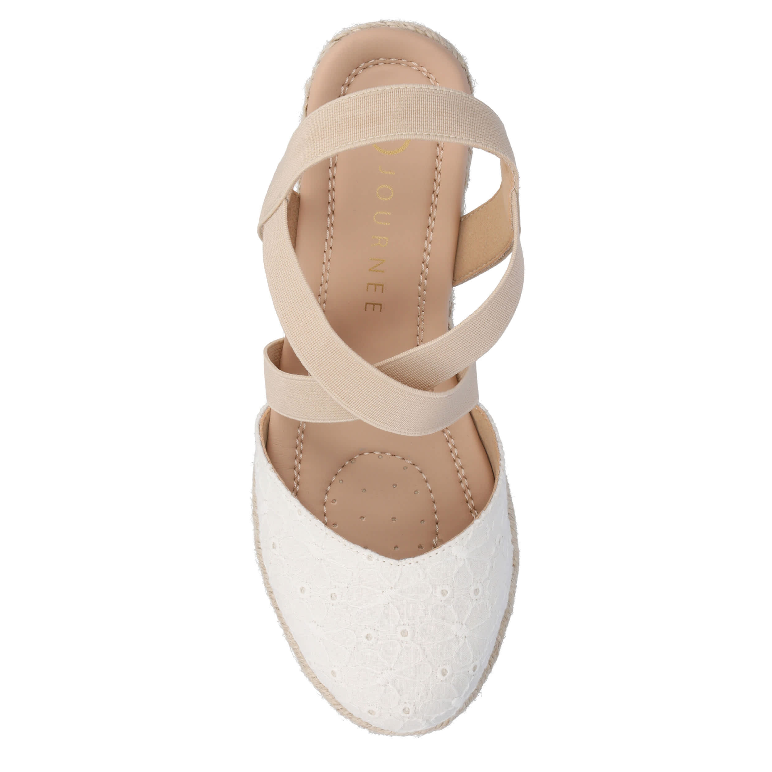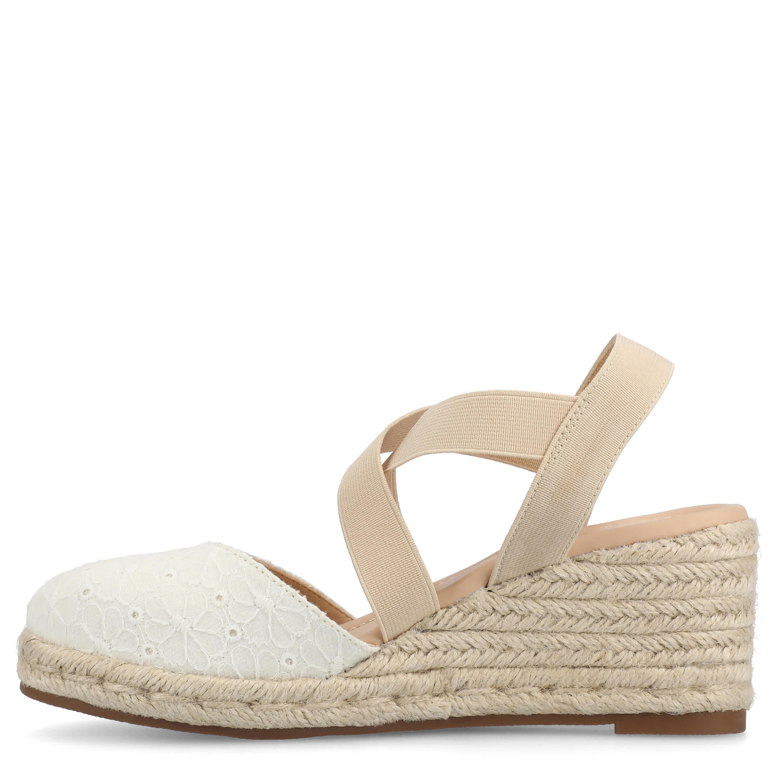 Soak up the sunrays in style with the Journee Collection Ashlee sandal. Complete with a multi-strap upper, this embroidered shoe comforts your steps with a cushy footbed. The espadrille wedge heel gives the perfect elevation to your everyday look.