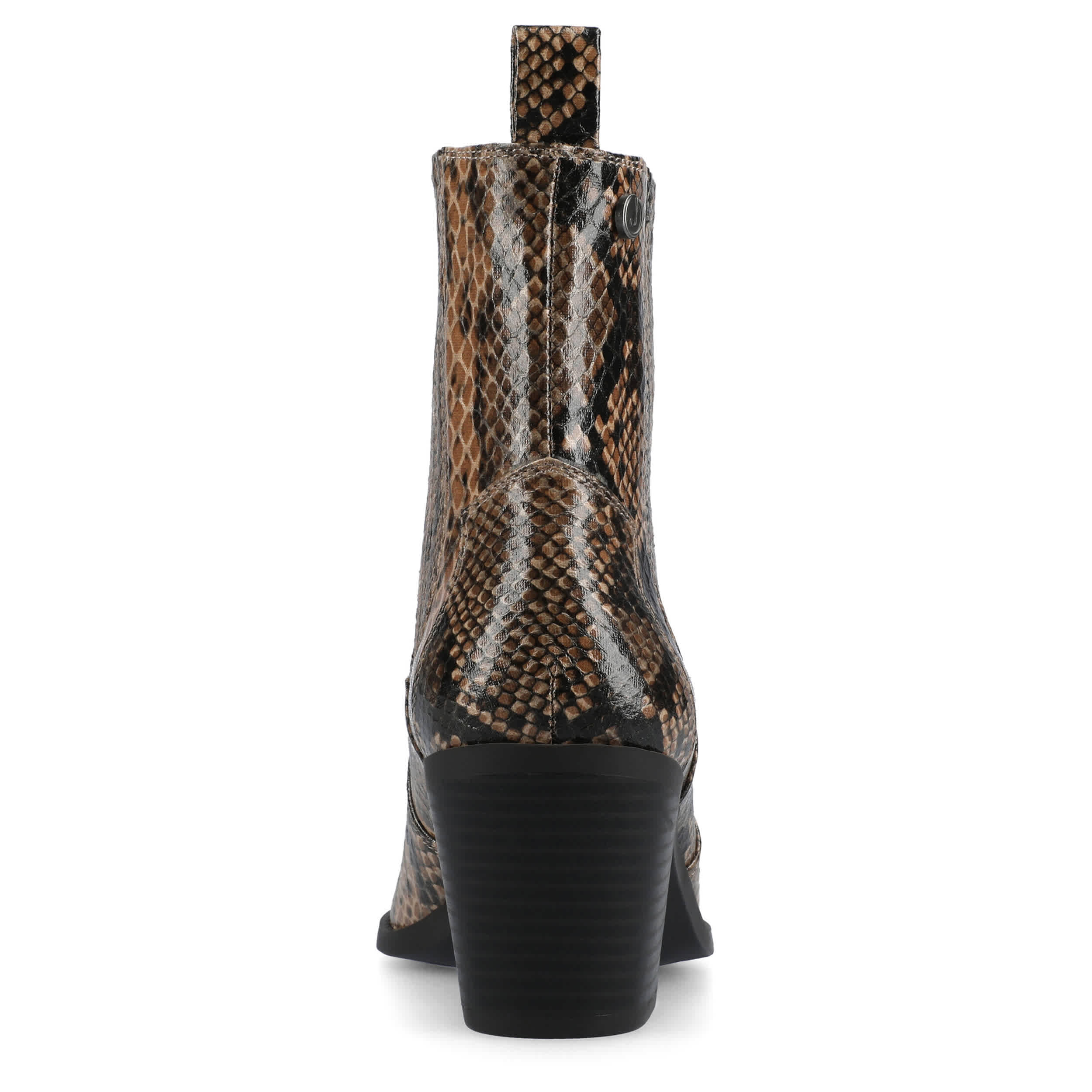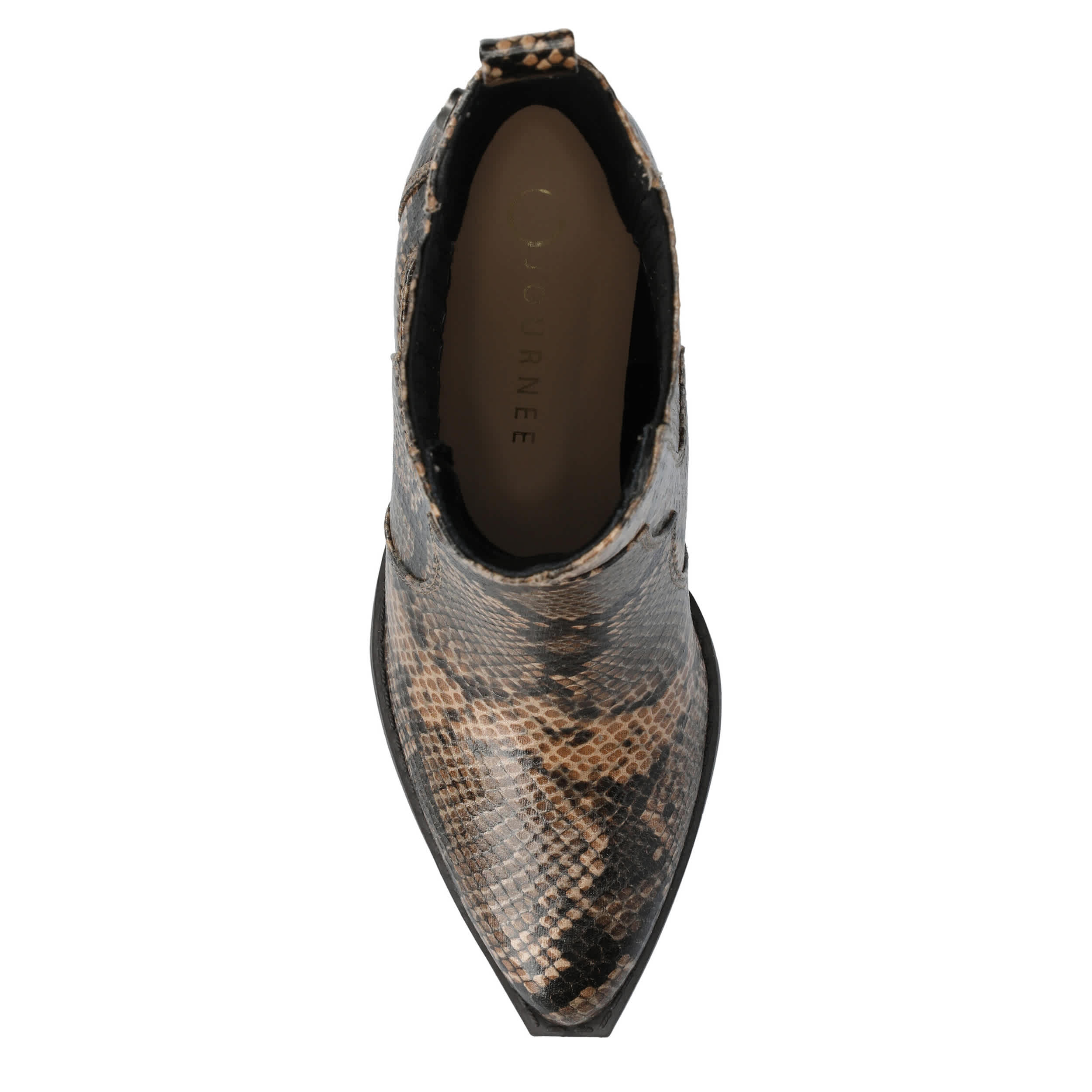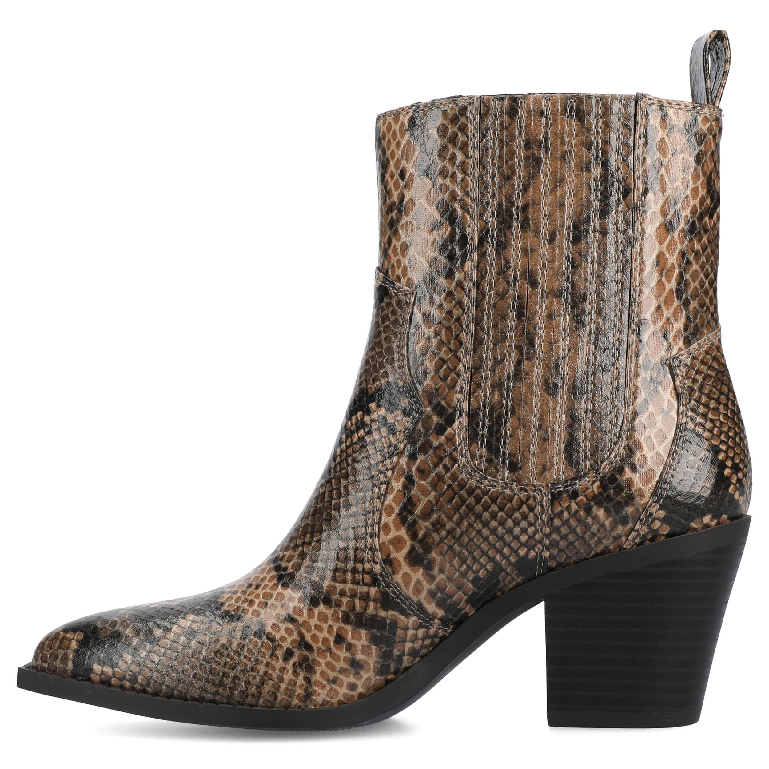 Strike a different kind of pose in the Braylee Western boot from Journee Collection. With a snakeskin faux leather upper featuring stylish pleating and rear pull tab, this bootie elevates your look. The 4mm Journee Comfort System insole cushions, while the Cuban-styled heel offers a nice lift.