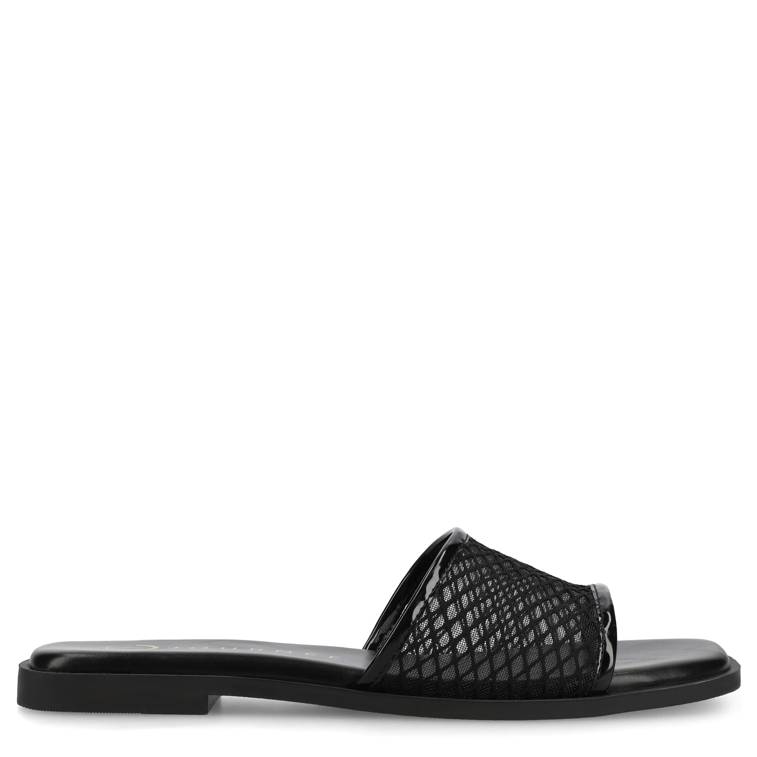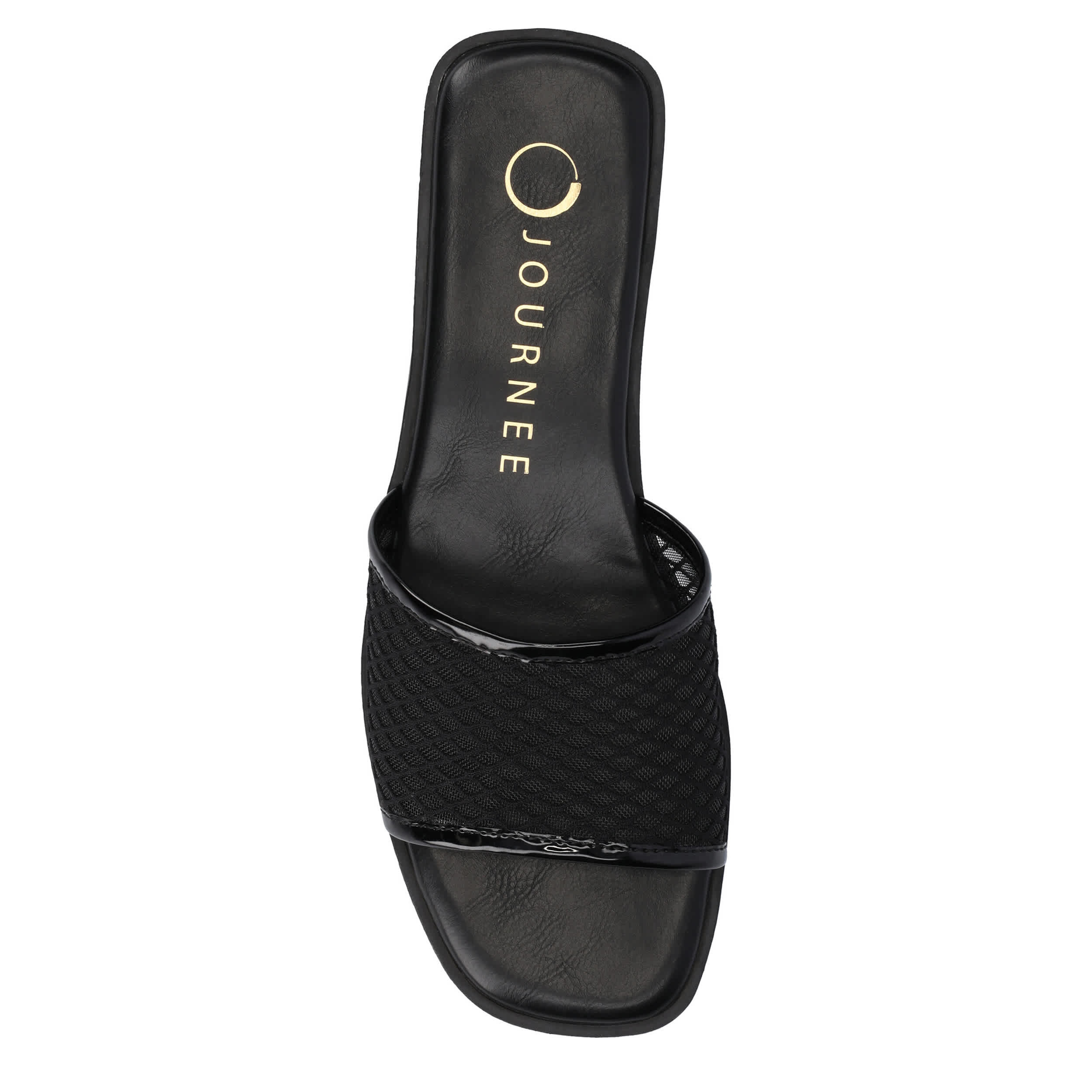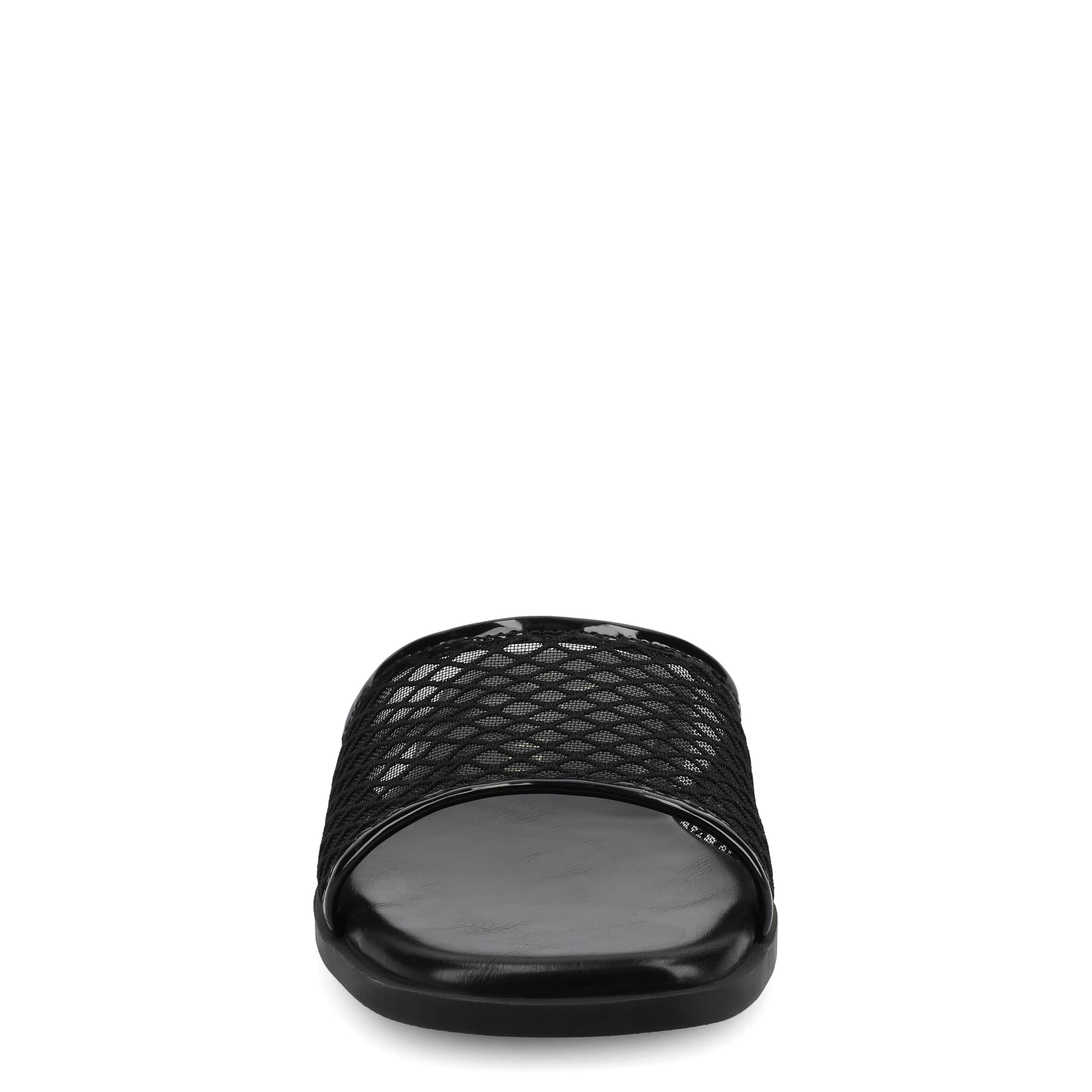 Keep your look simple this summer in the Breckley slide sandal from Journee Collection. Featuring a mesh fabric upper in a single band design, this slip-on offers increased breathability and bold style. The cushioned insole and flat sole offers all-day support for whatever you get up to.