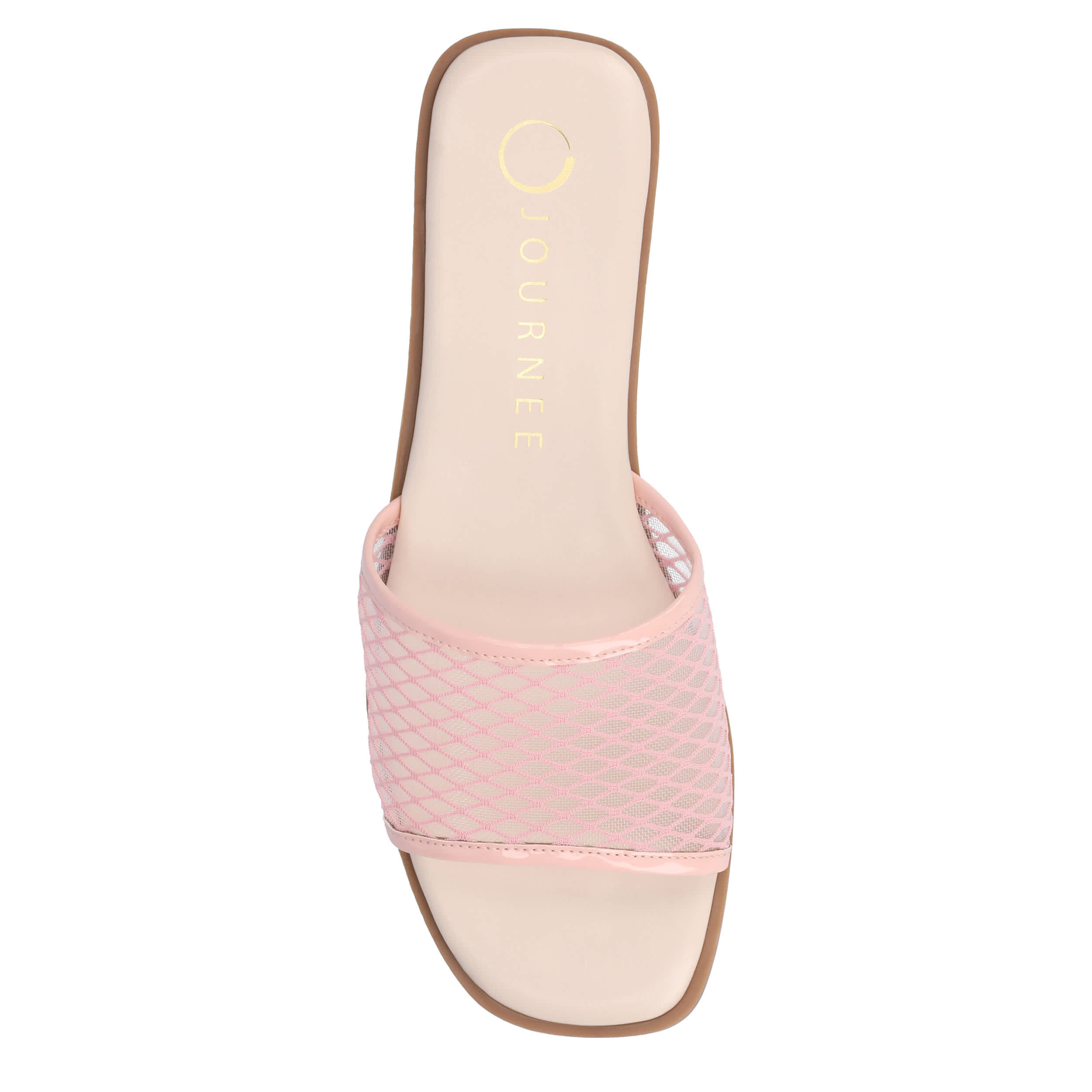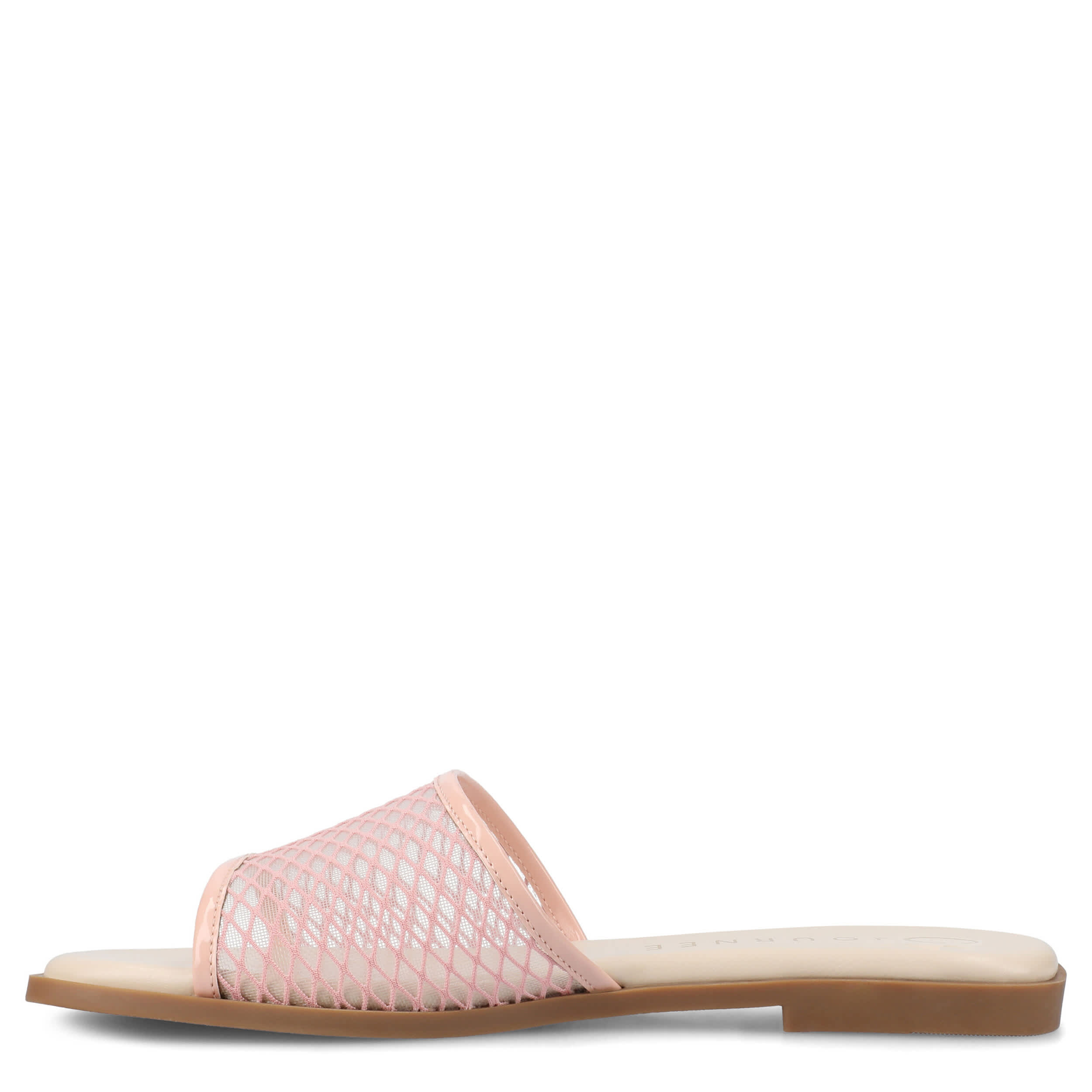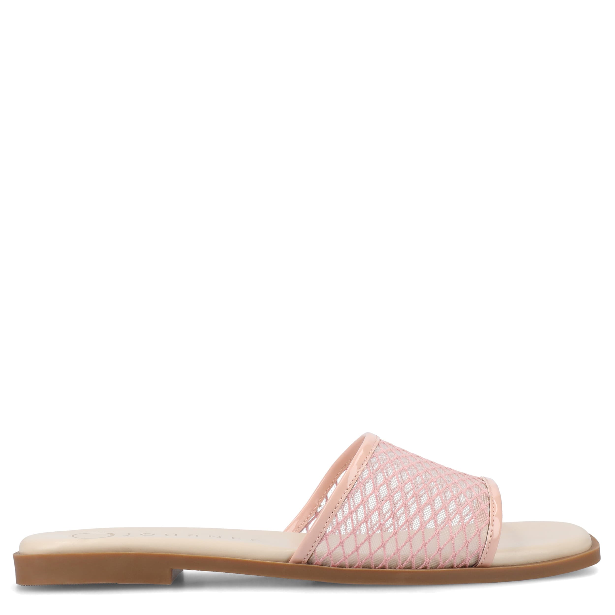 Keep your look simple this summer in the Breckley slide sandal from Journee Collection. Featuring a mesh fabric upper in a single band design, this slip-on offers increased breathability and bold style. The cushioned insole and flat sole offers all-day support for whatever you get up to.