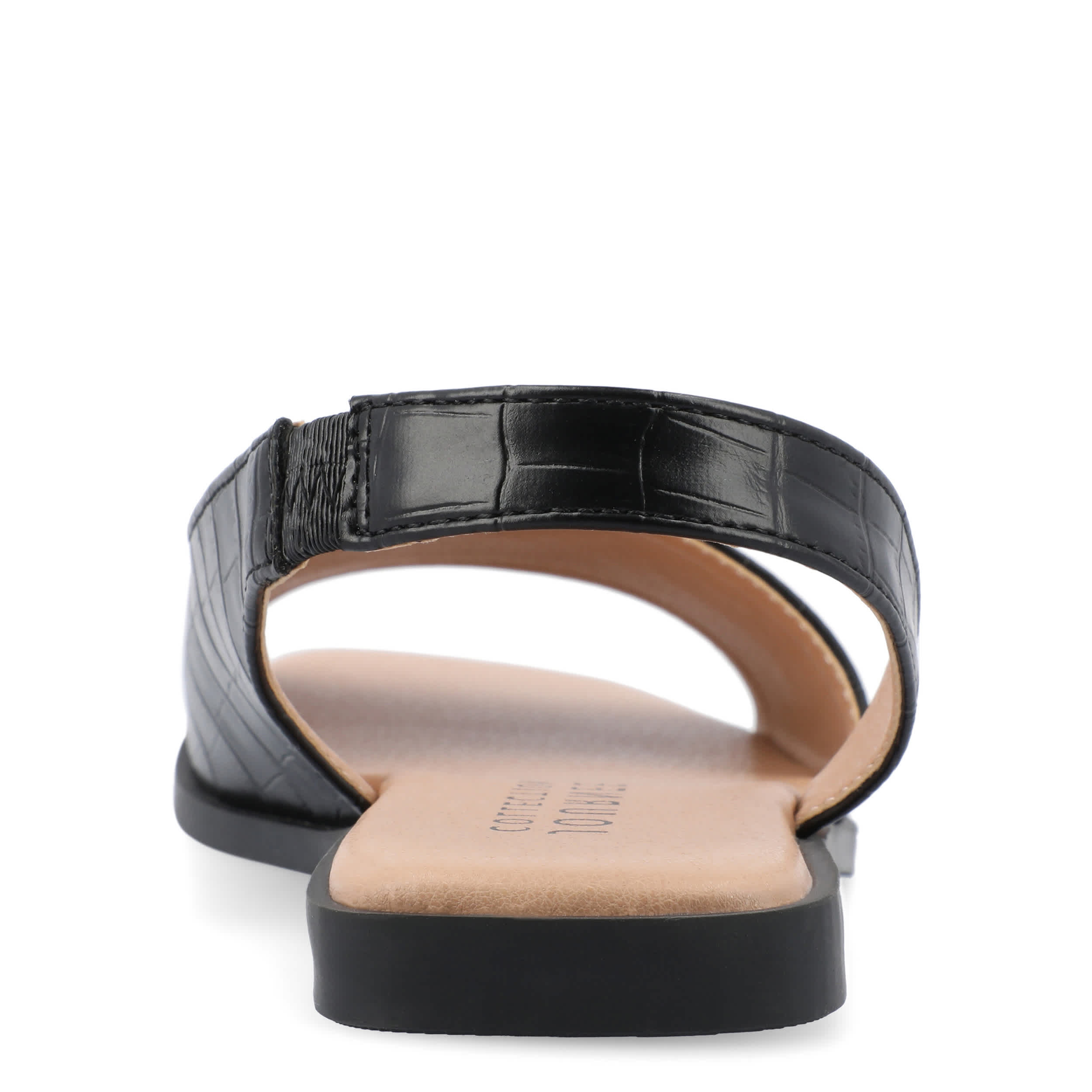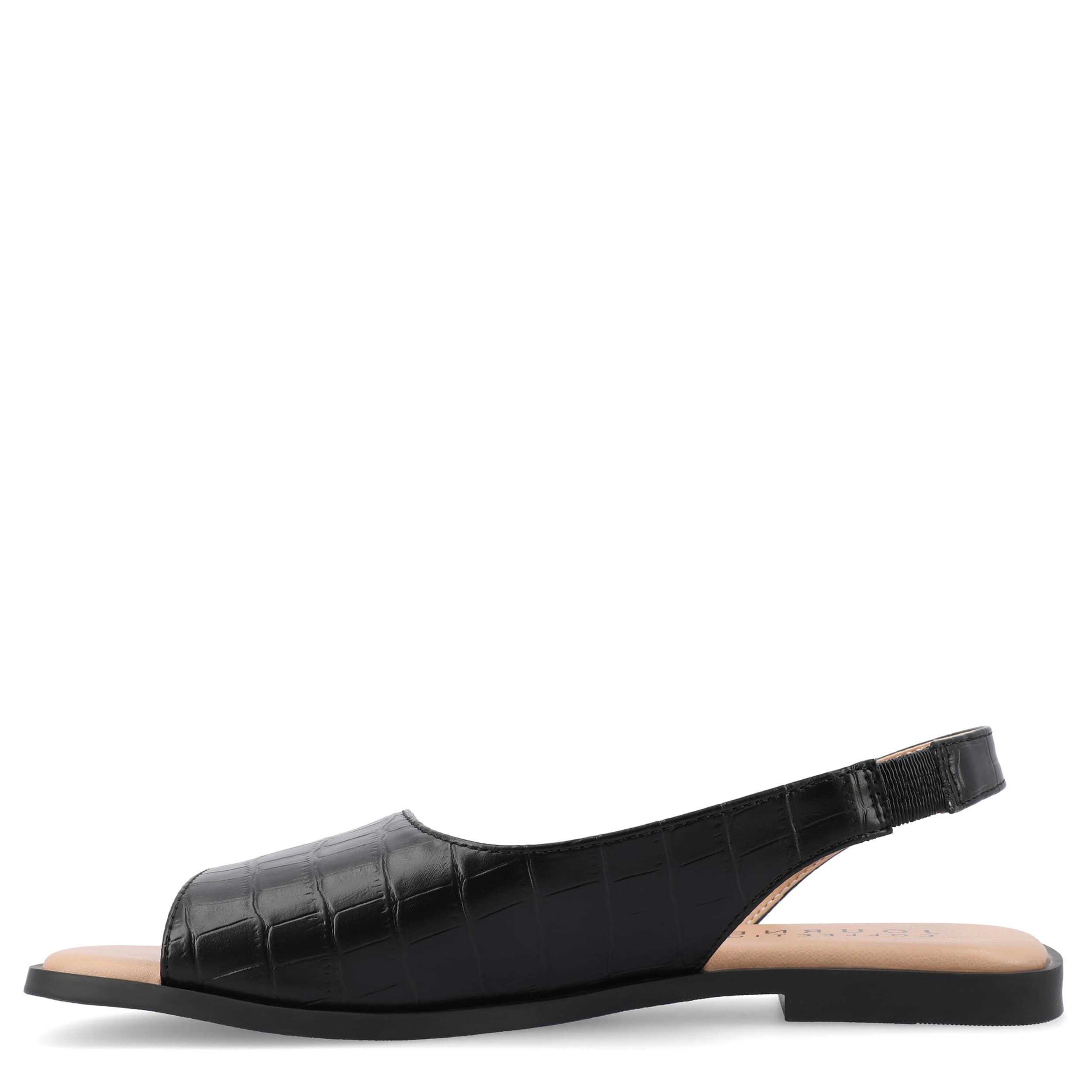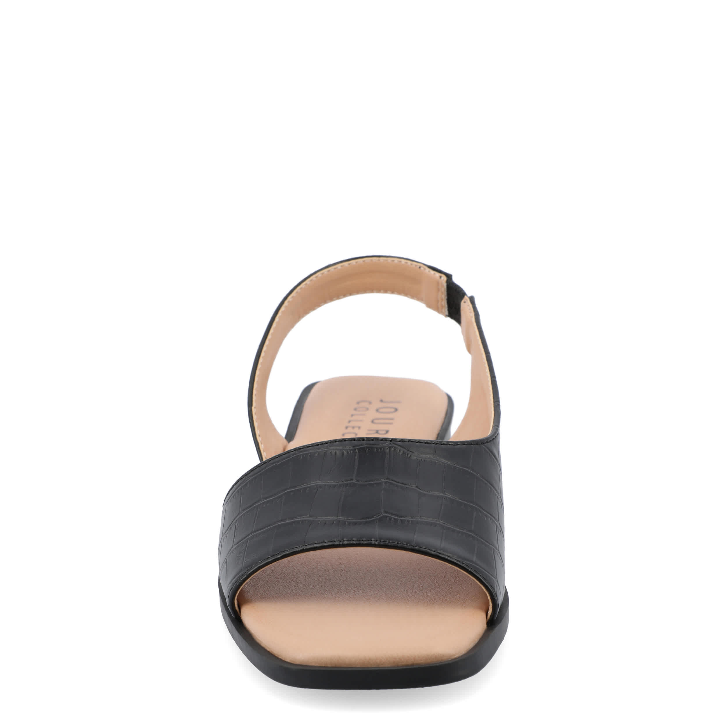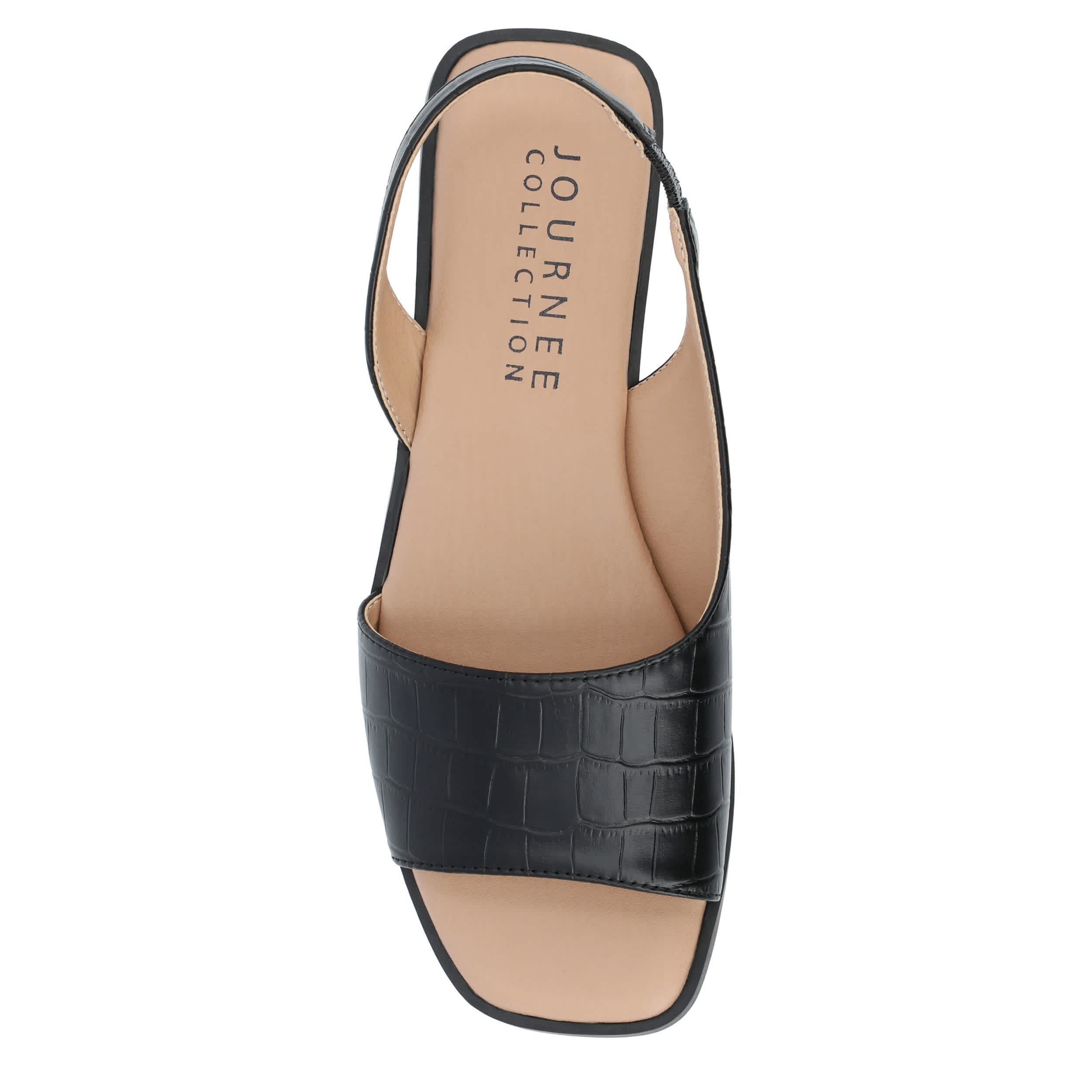 Make your summer looks elegant with the Brinsley flat sandal from Journee collection. With a croc print faux leather upper, this slip-on shoe is convenient and versatile. The Journee Comfort Systems insole and flat sole ensure supported steps for all-day wear.