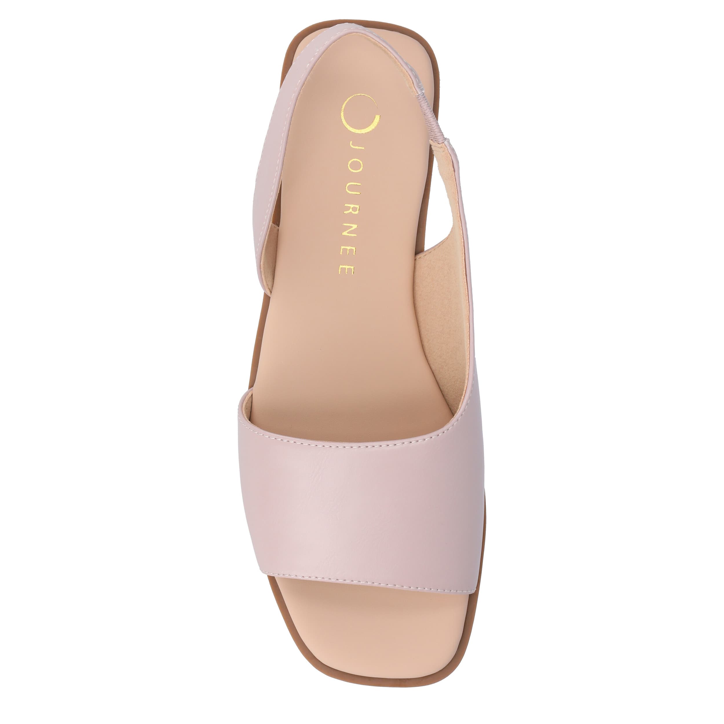Make your summer looks elegant with the Brinsley flat sandal from Journee collection. With a sleek faux leather upper, this slip-on shoe is convenient and versatile. The Journee Comfort Systems insole and flat sole ensure supported steps for all-day wear.