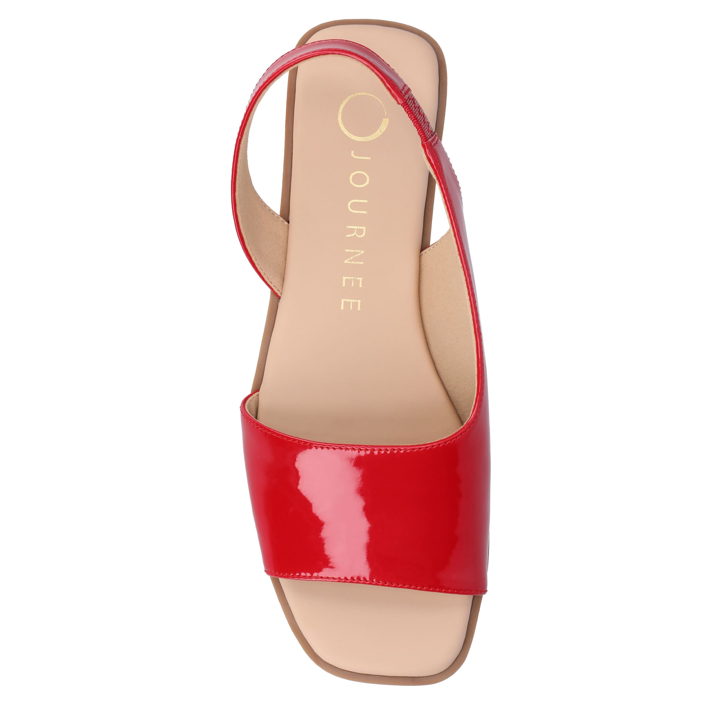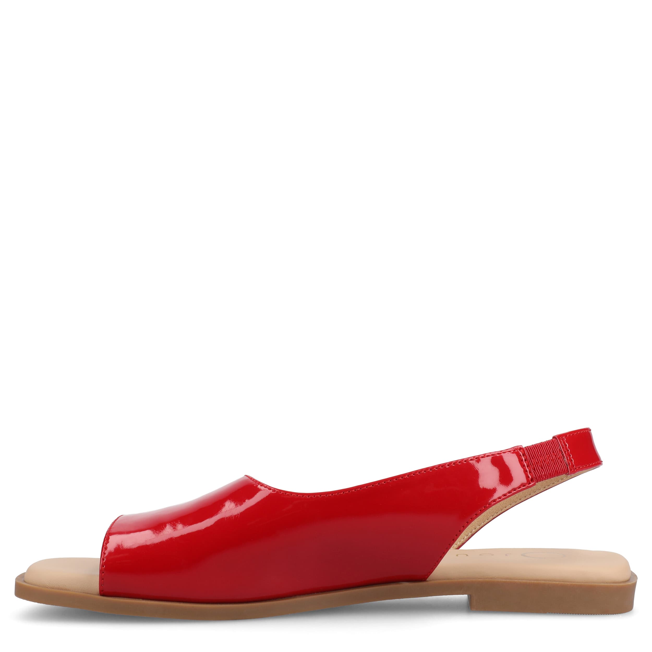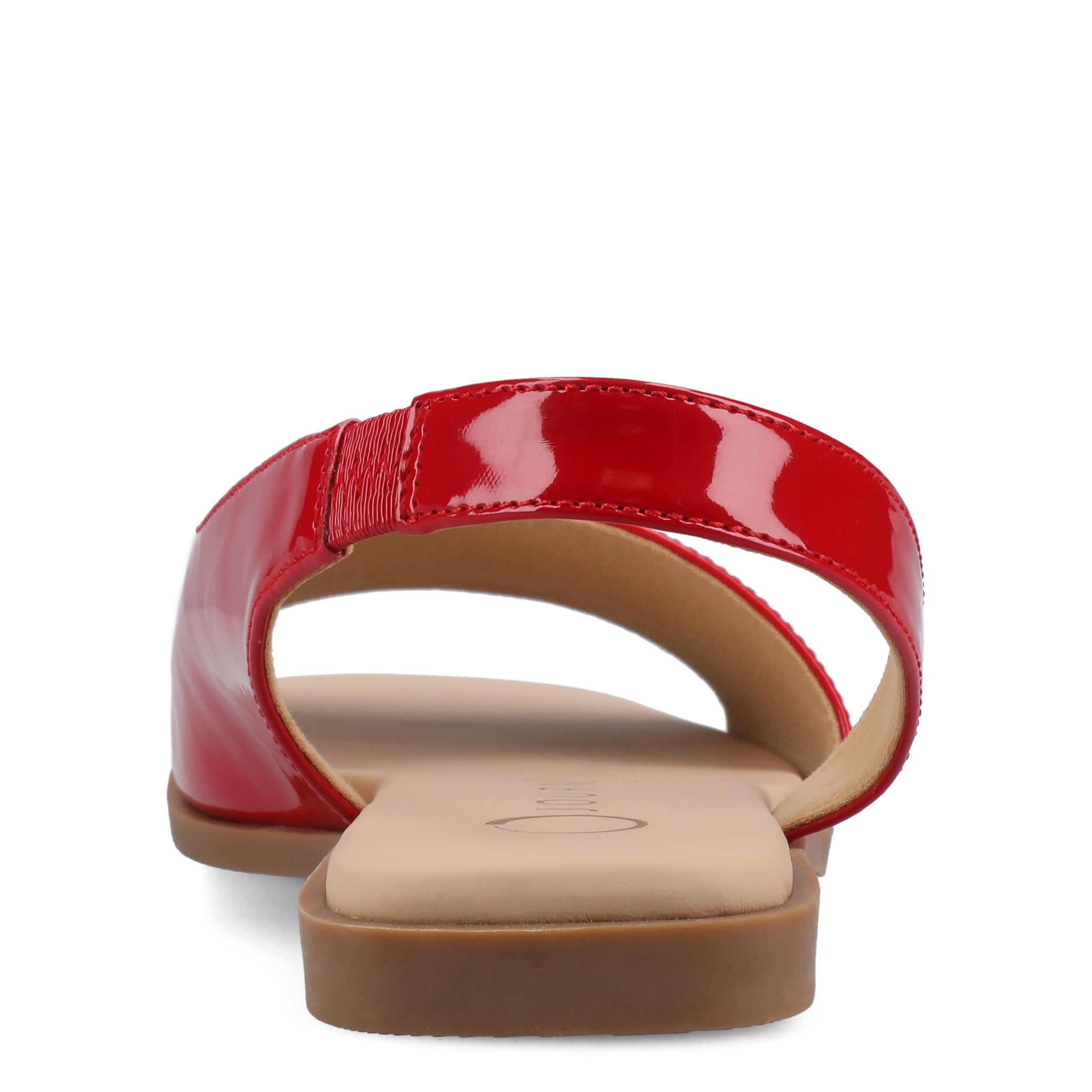 Make your summer looks elegant with the Brinsley flat sandal from Journee collection. With a sleek patent leather upper, this slip-on shoe is convenient and versatile. The Journee Comfort Systems insole and flat sole ensure supported steps for all-day wear.