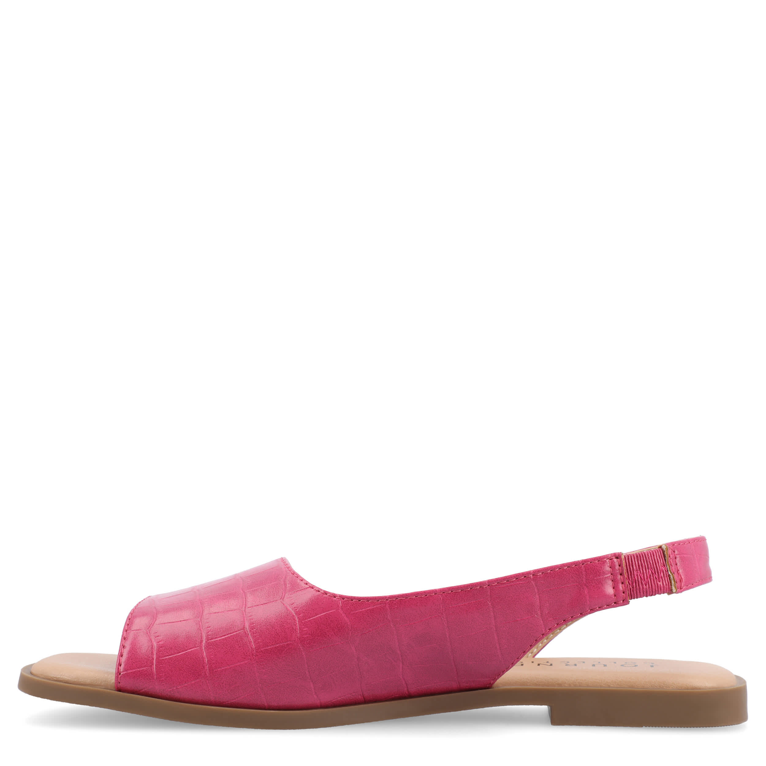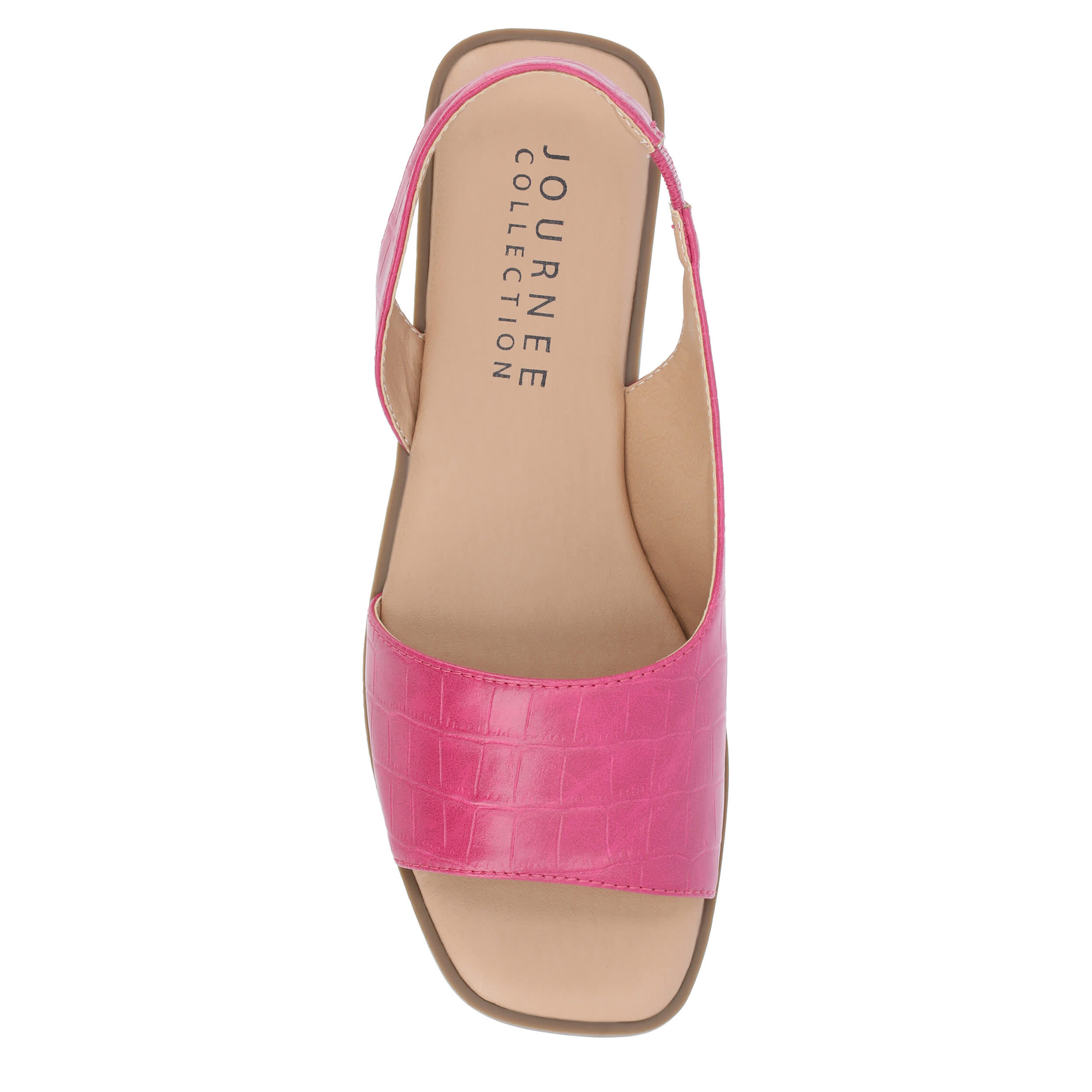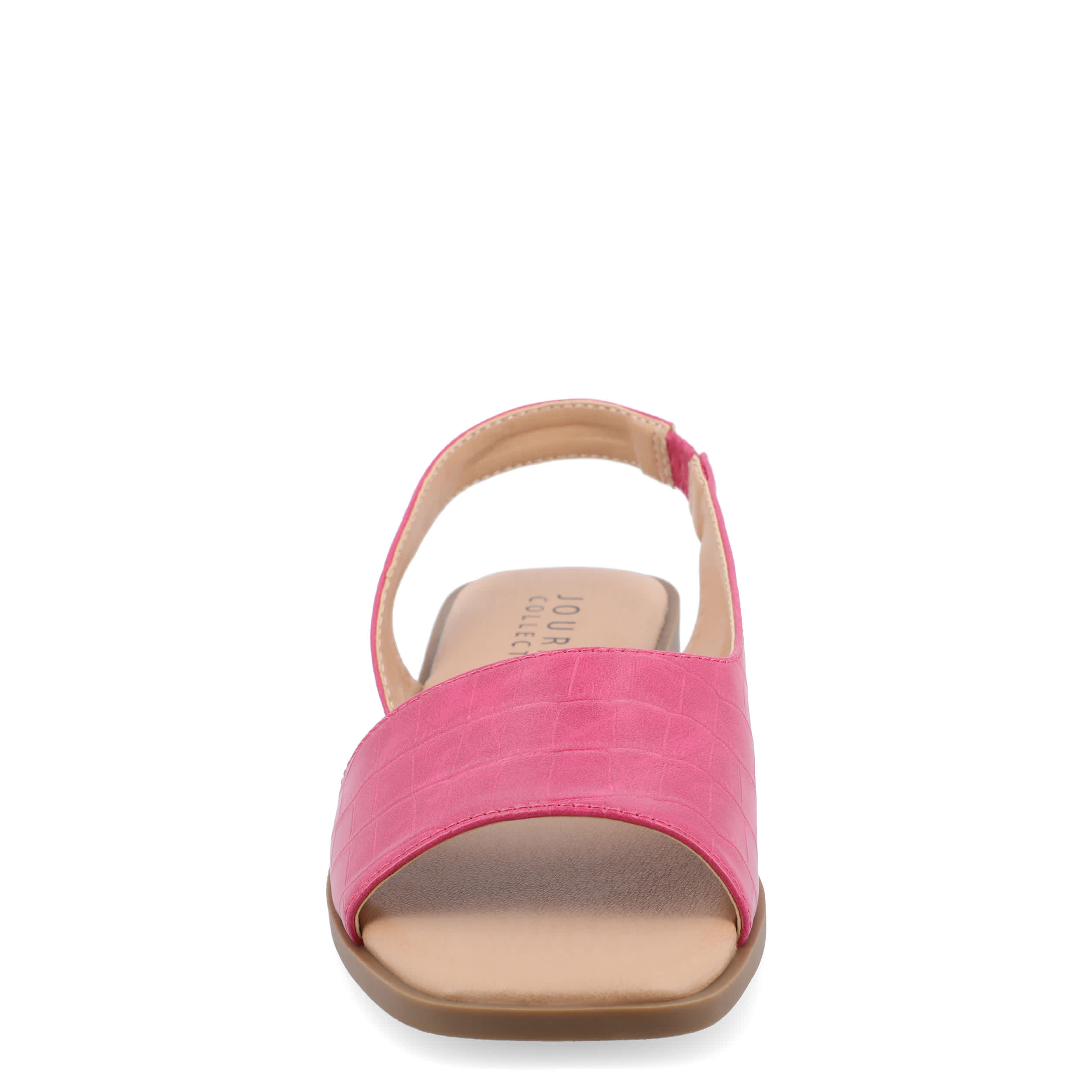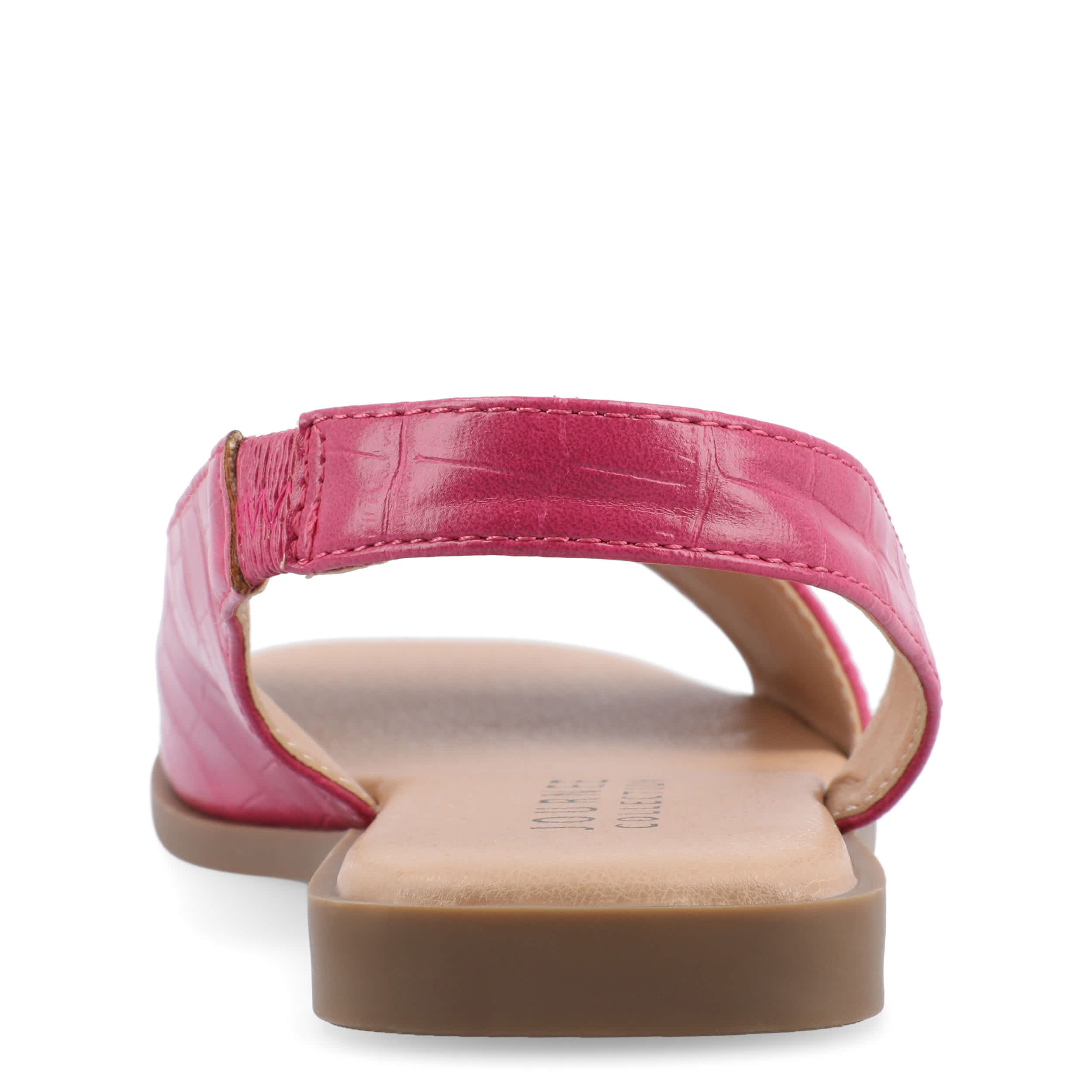 Make your summer looks elegant with the Brinsley flat sandal from Journee collection. With a sleek faux leather upper, this slip-on shoe is convenient and versatile. The Journee Comfort Systems insole and flat sole ensure supported steps for all-day wear.