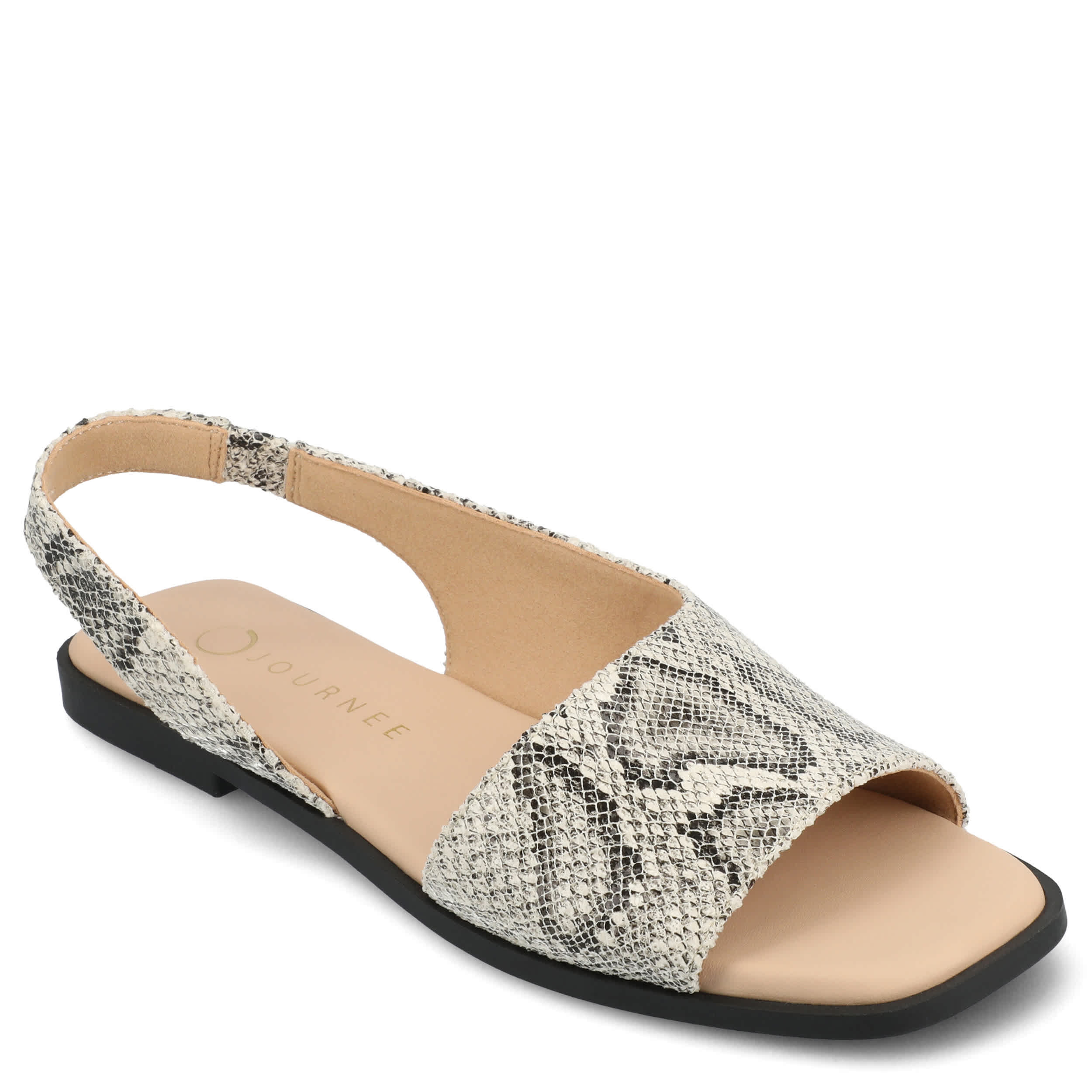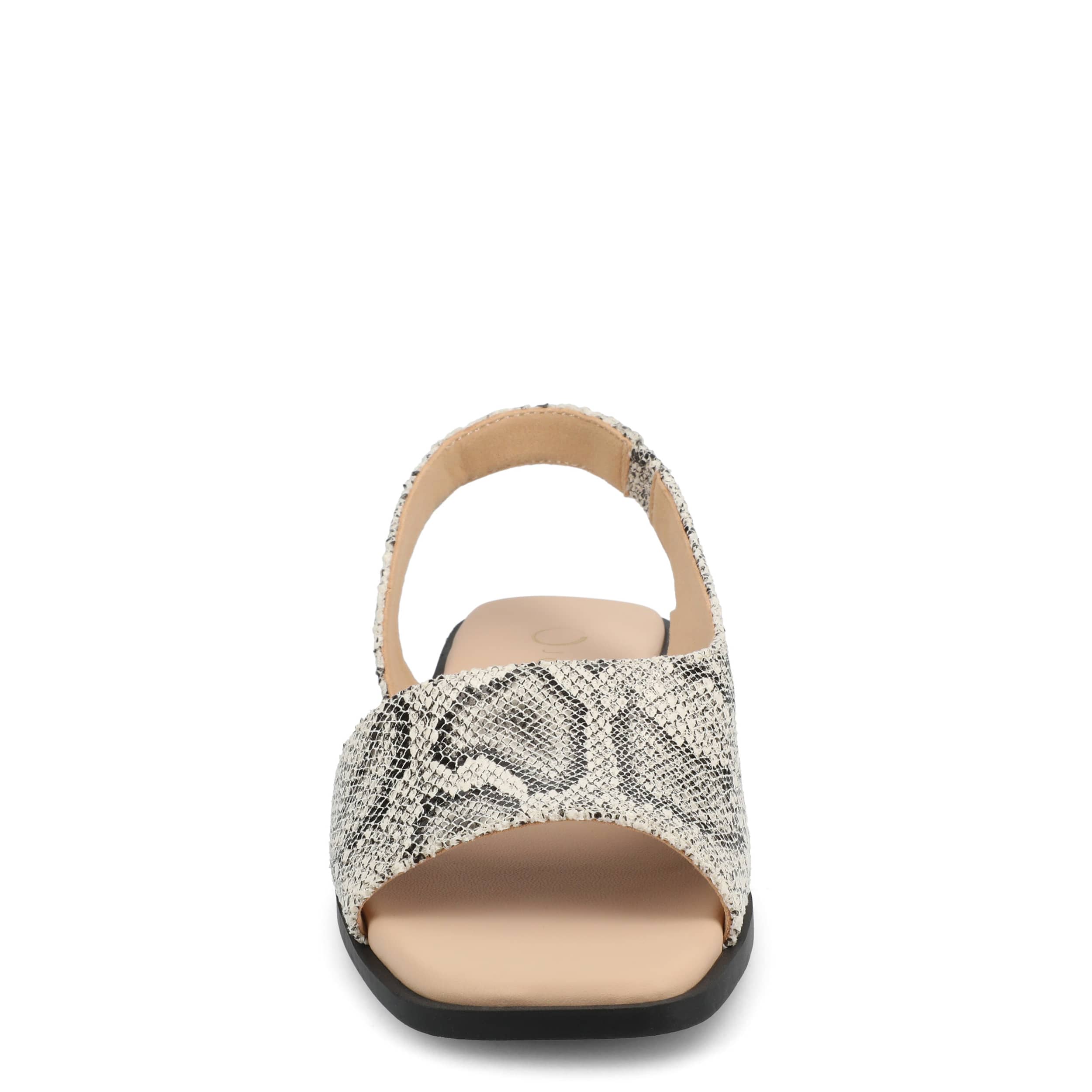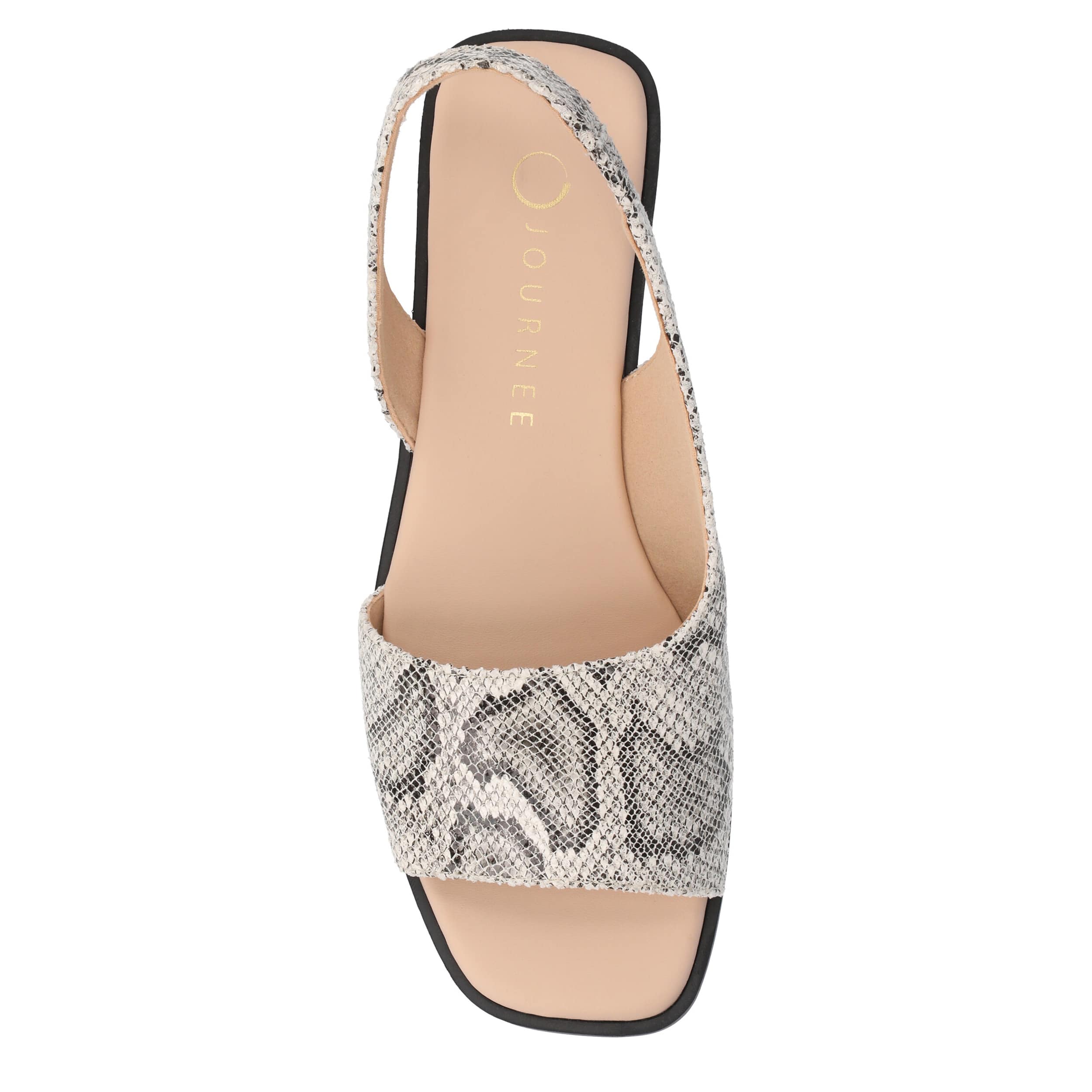 Make your summer looks elegant with the Brinsley flat sandal from Journee collection. With a sleek faux leather upper, this slip-on shoe is convenient and versatile. The Journee Comfort Systems insole and flat sole ensure supported steps for all-day wear.