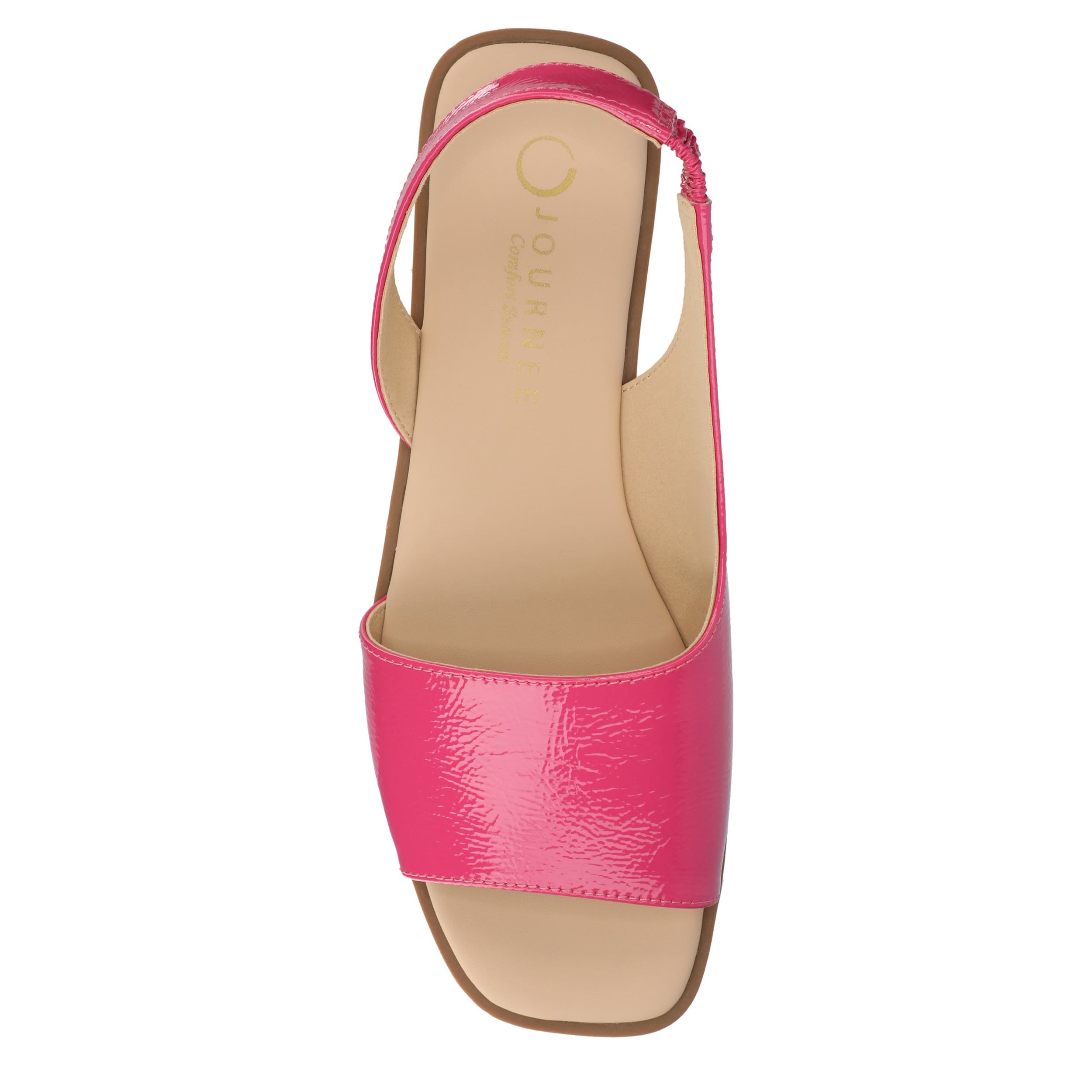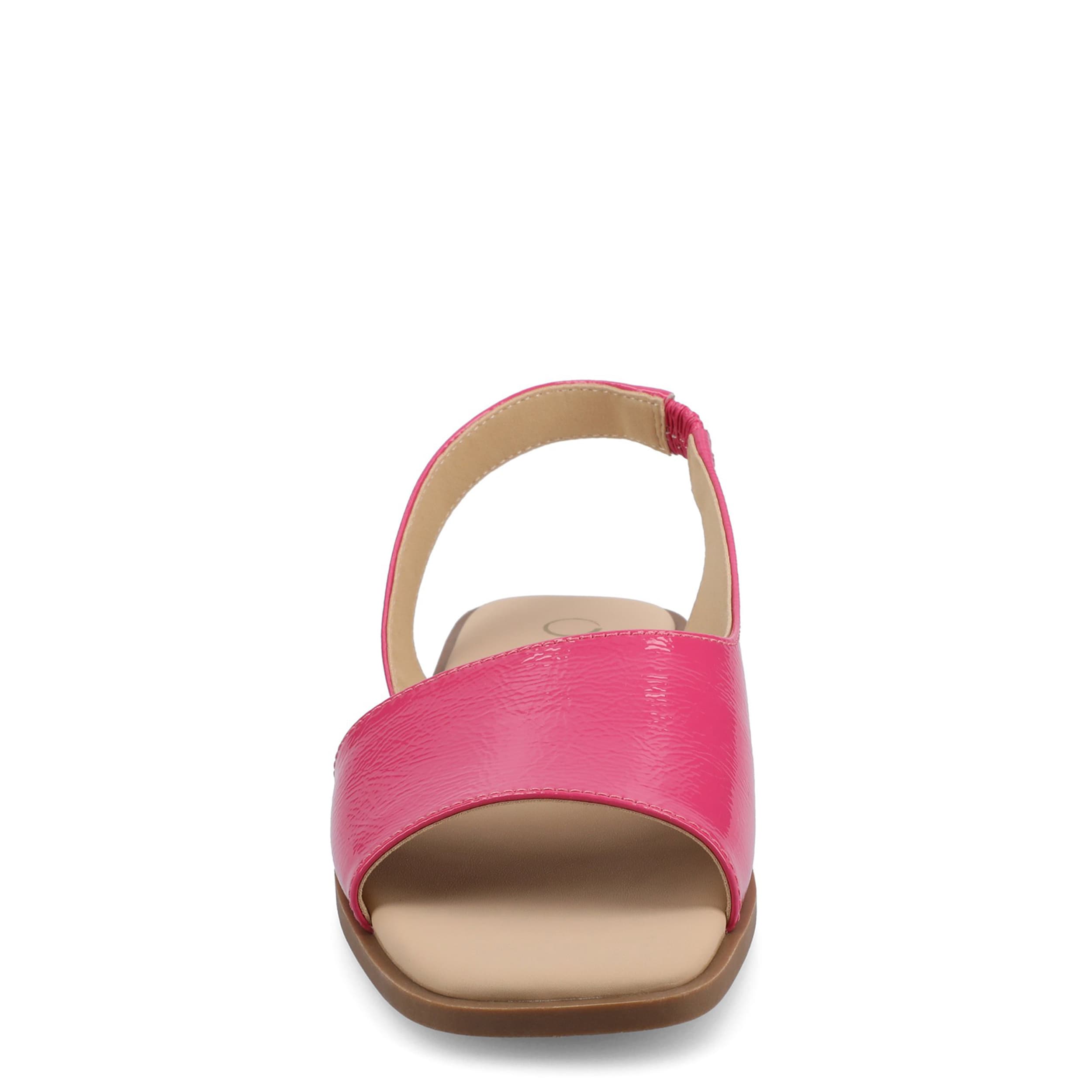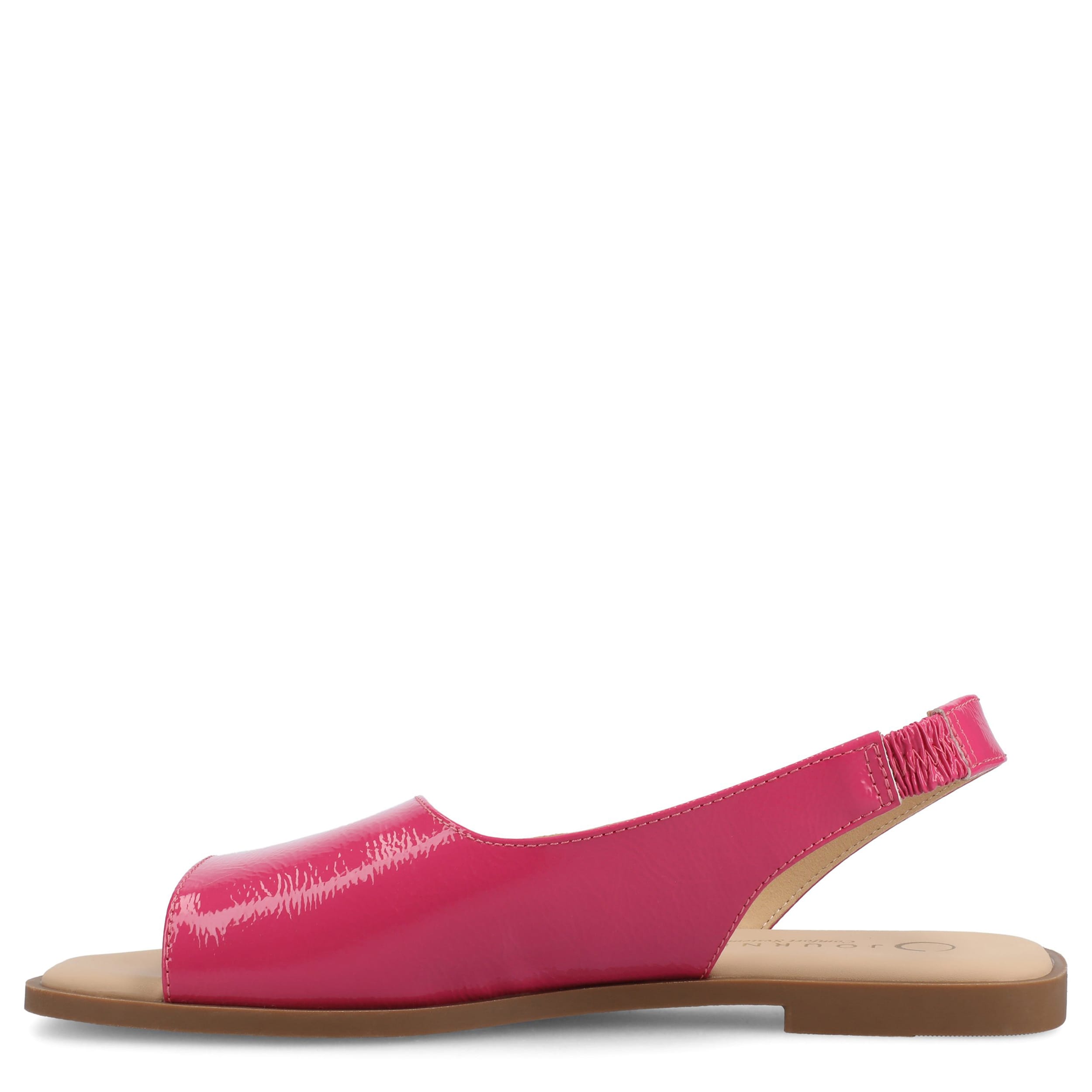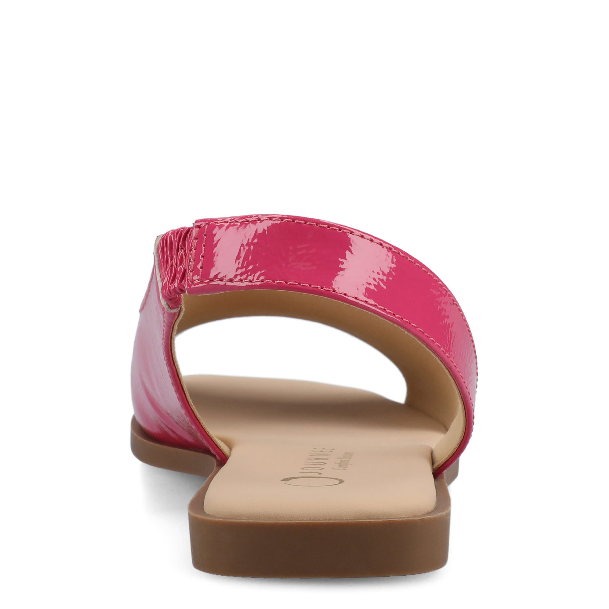 Make your summer looks elegant with the Brinsley flat sandal from Journee collection. With a sleek faux leather upper, this slip-on shoe is convenient and versatile. The Journee Comfort Systems insole and flat sole ensure supported steps for all-day wear.