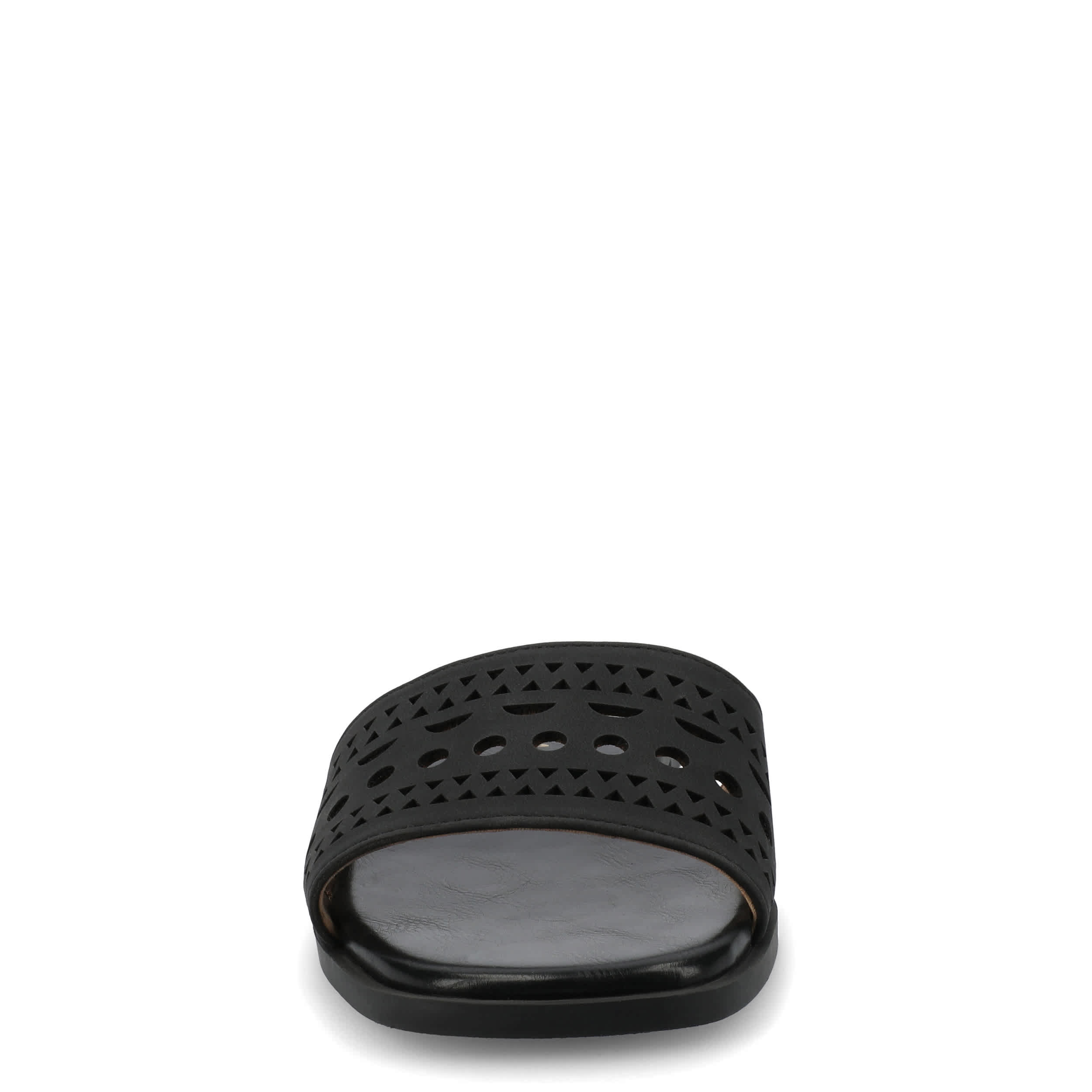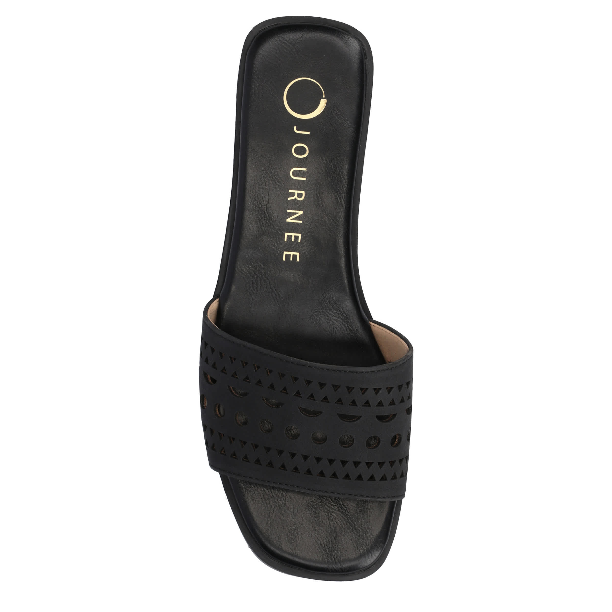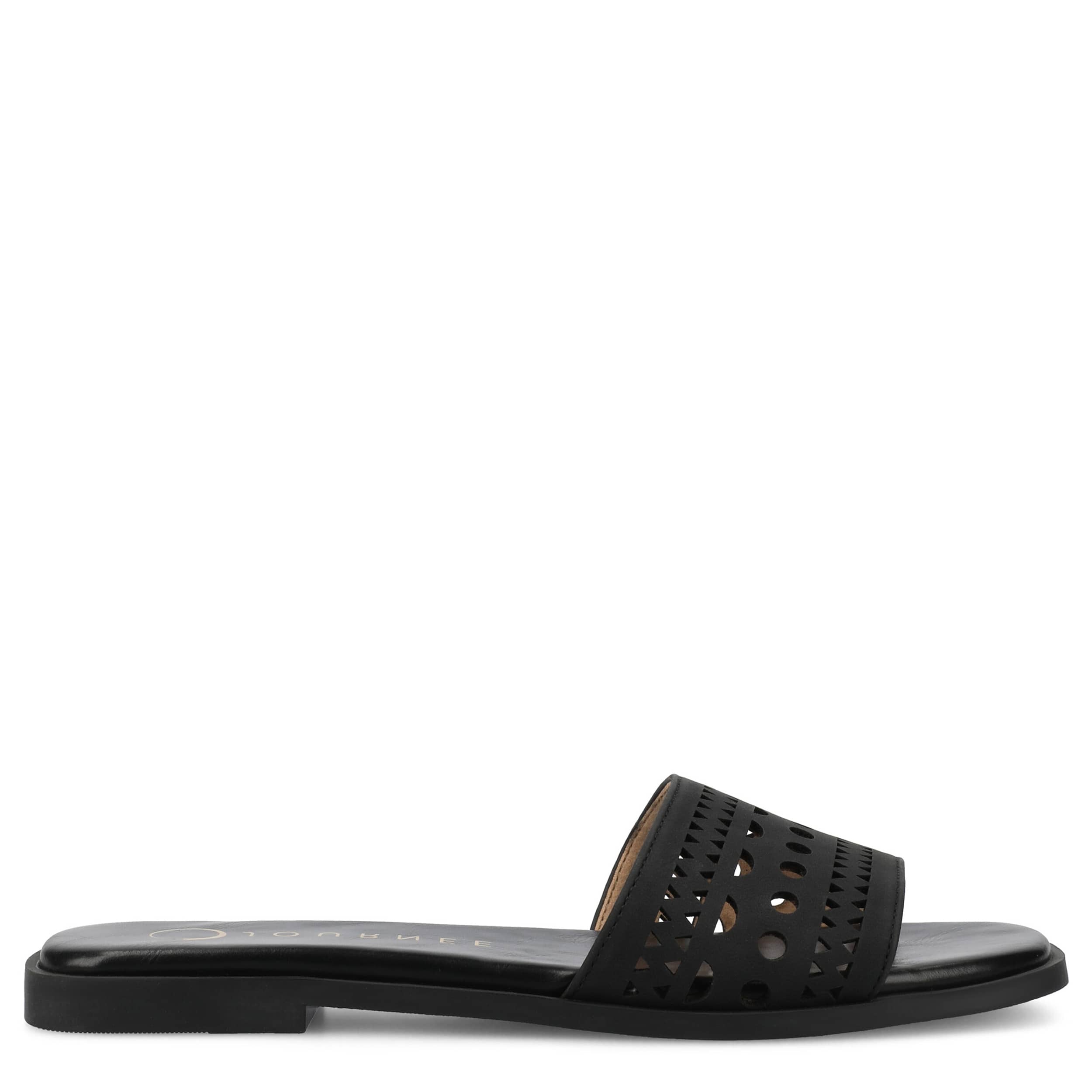Chop out your closet for summer with the Journee Collection Brodie slide sandal. Featuring a faux leather upper with chic cut-outs, this single band slide is fresh and stylish. The insole offers comfort for easy wear.