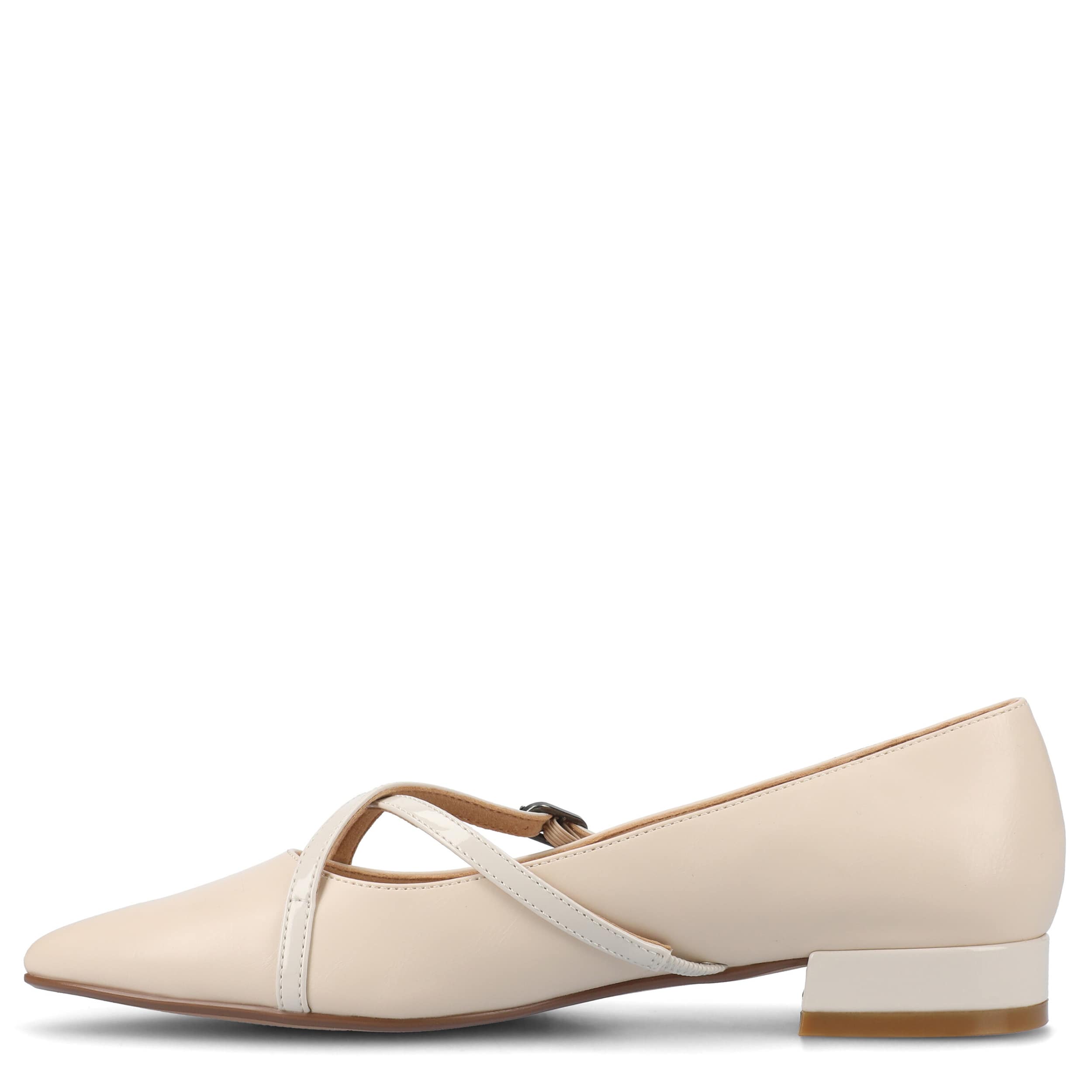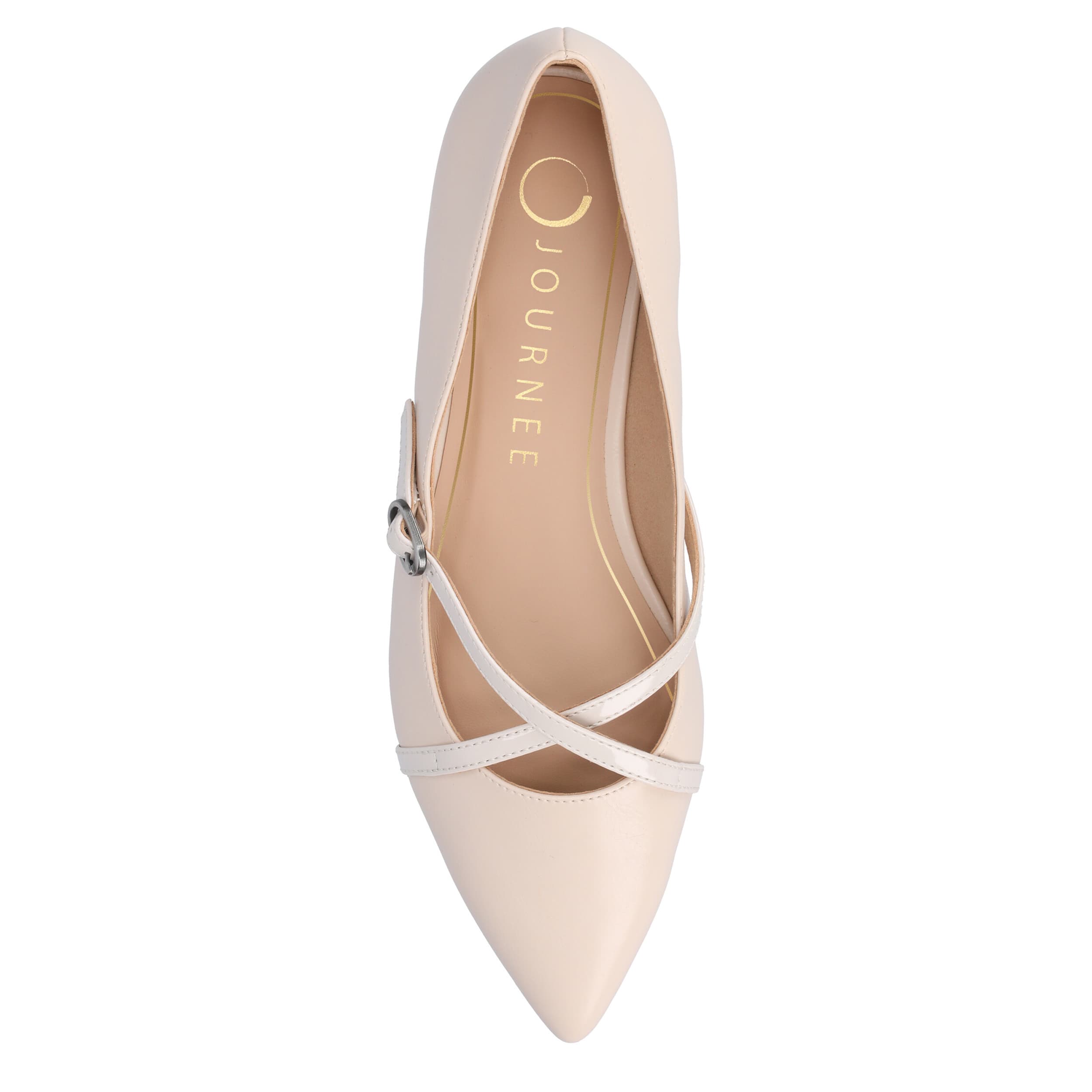 Cross elegance with chic in the Camby flat from Journee Collection. Featuring a faux leather upper and secure crisscross straps, this flat is a stylish must-have. The insole pads your foot, while the low hgel offers a subtle lift.
