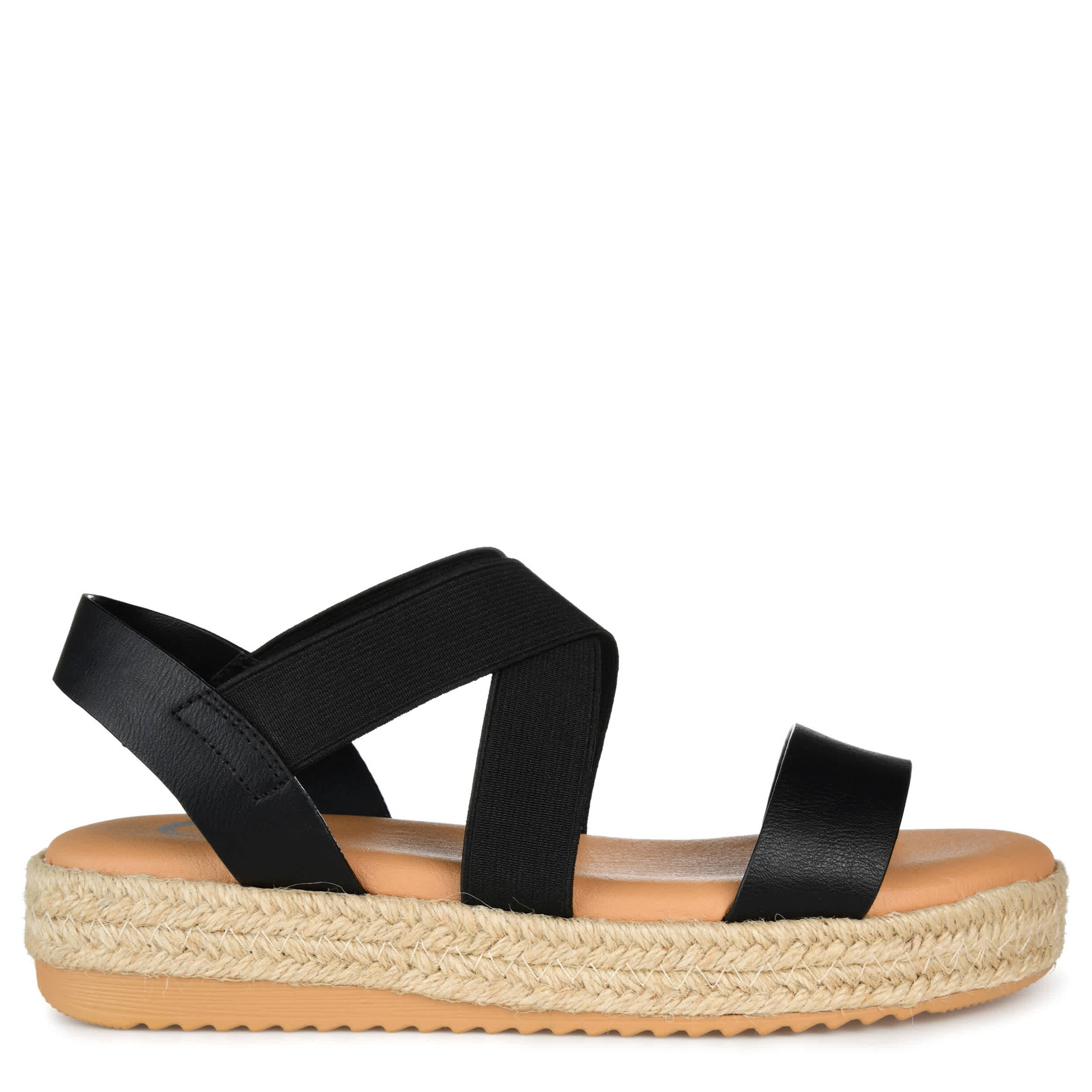 Feel luxe in the minimalist Caroline sandal from Journee Collection. Featuring a faux leather upper with crisscross straps, this chic sandal can elevate casual looks. The Tru Comfort Foamâ„¢ insole offers optimal cushioning, while the sliverd wedge heel gives the perfect lift.