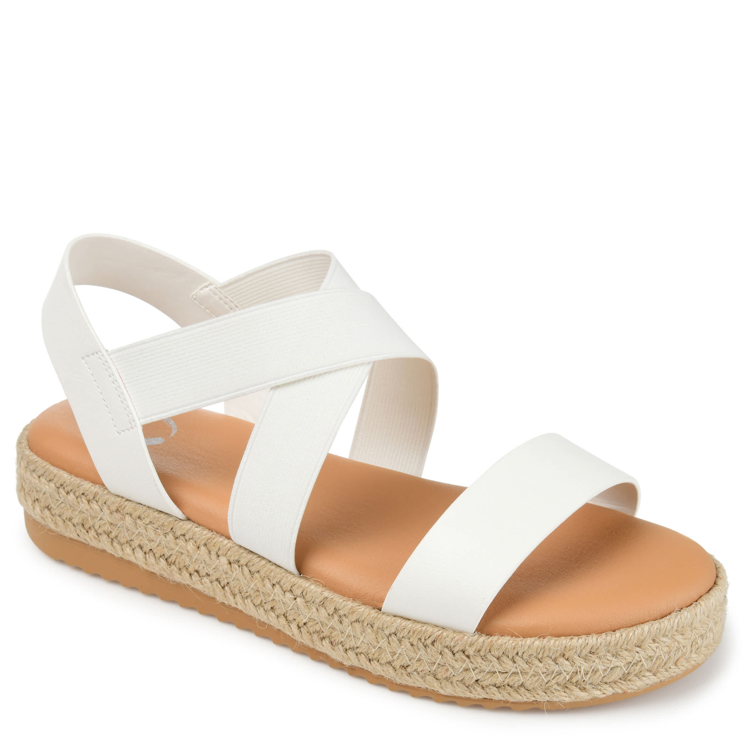Feel luxe in the minimalist Caroline sandal from Journee Collection. Featuring a faux leather upper with crisscross straps, this chic sandal can elevate casual looks. The Tru Comfort Foamâ„¢ insole offers optimal cushioning, while the sliverd wedge heel gives the perfect lift.
