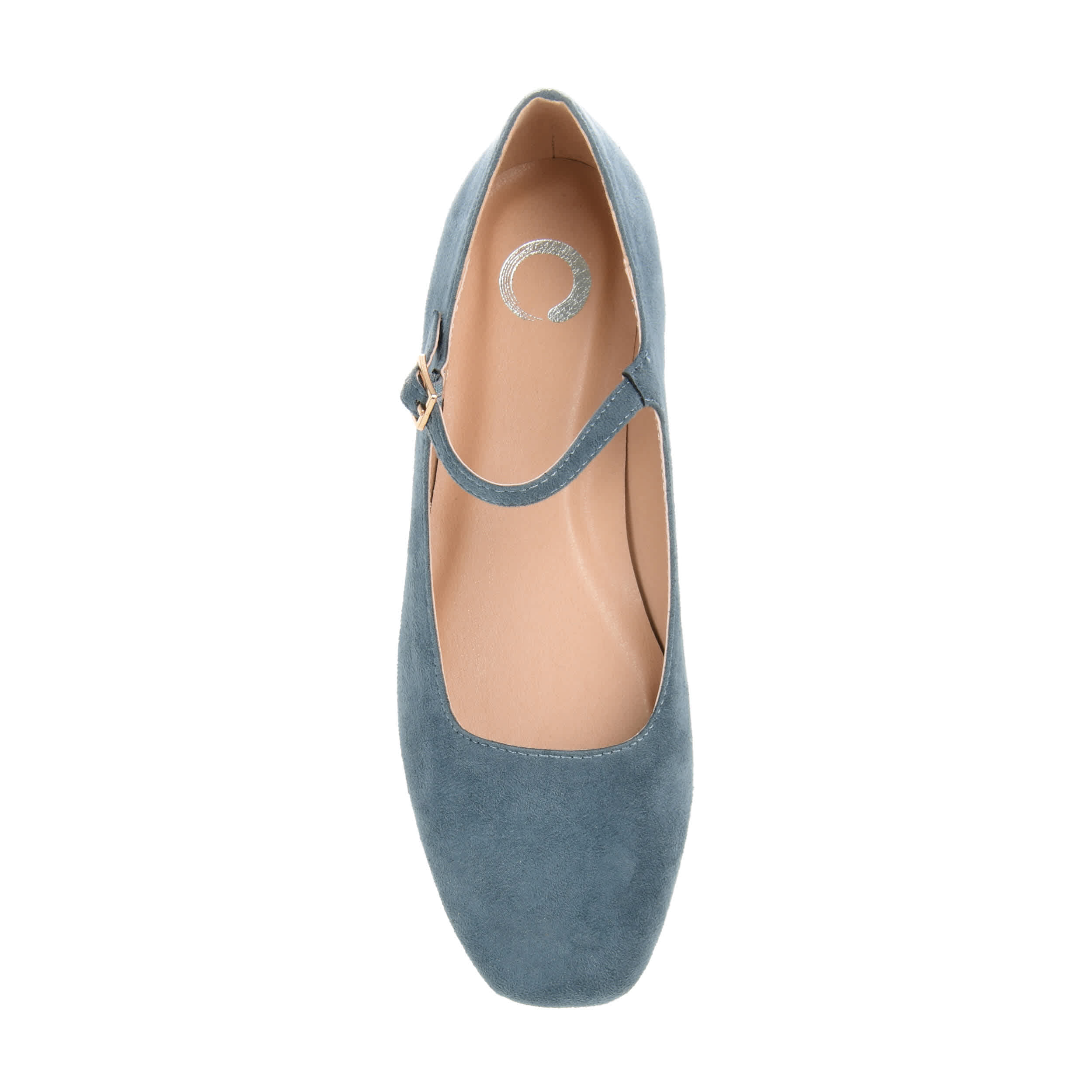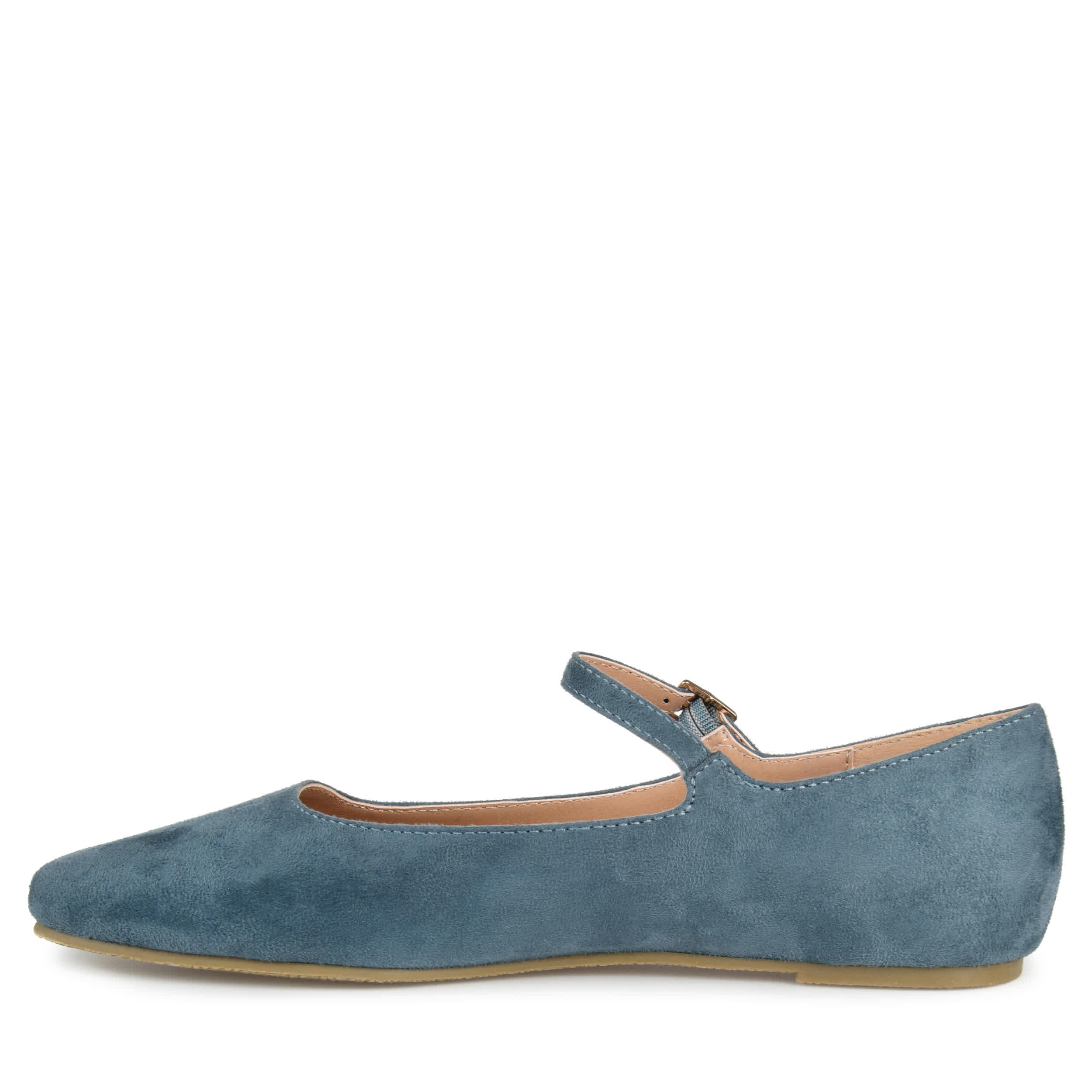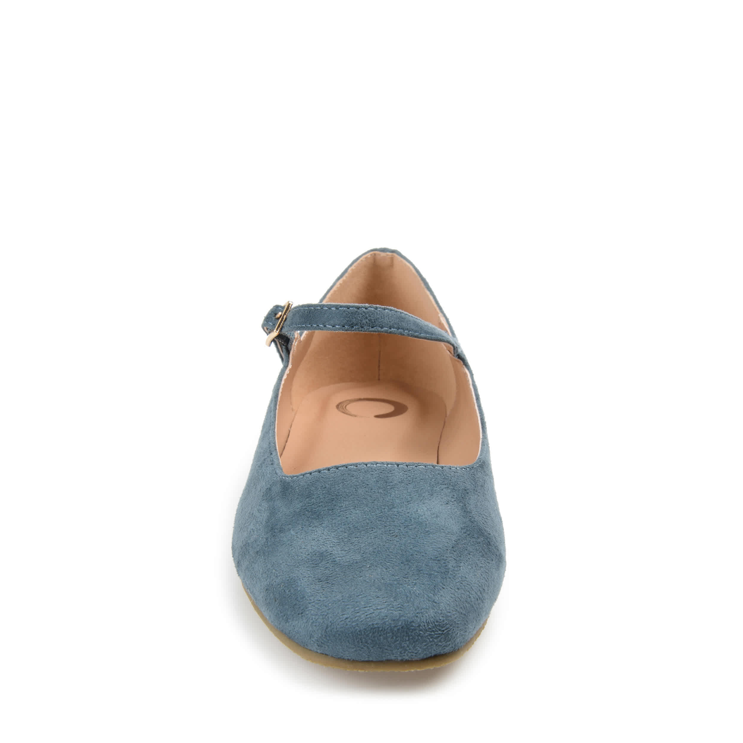 Polish up your look with the Journee Collection Carrie flat. Featuring a faux suede upper, this square toe shoe has a chic, adjustable Mary Jane strap to ensure a snug fit. The padded insole comforts your steps, while the synthetic outsole gives traction.