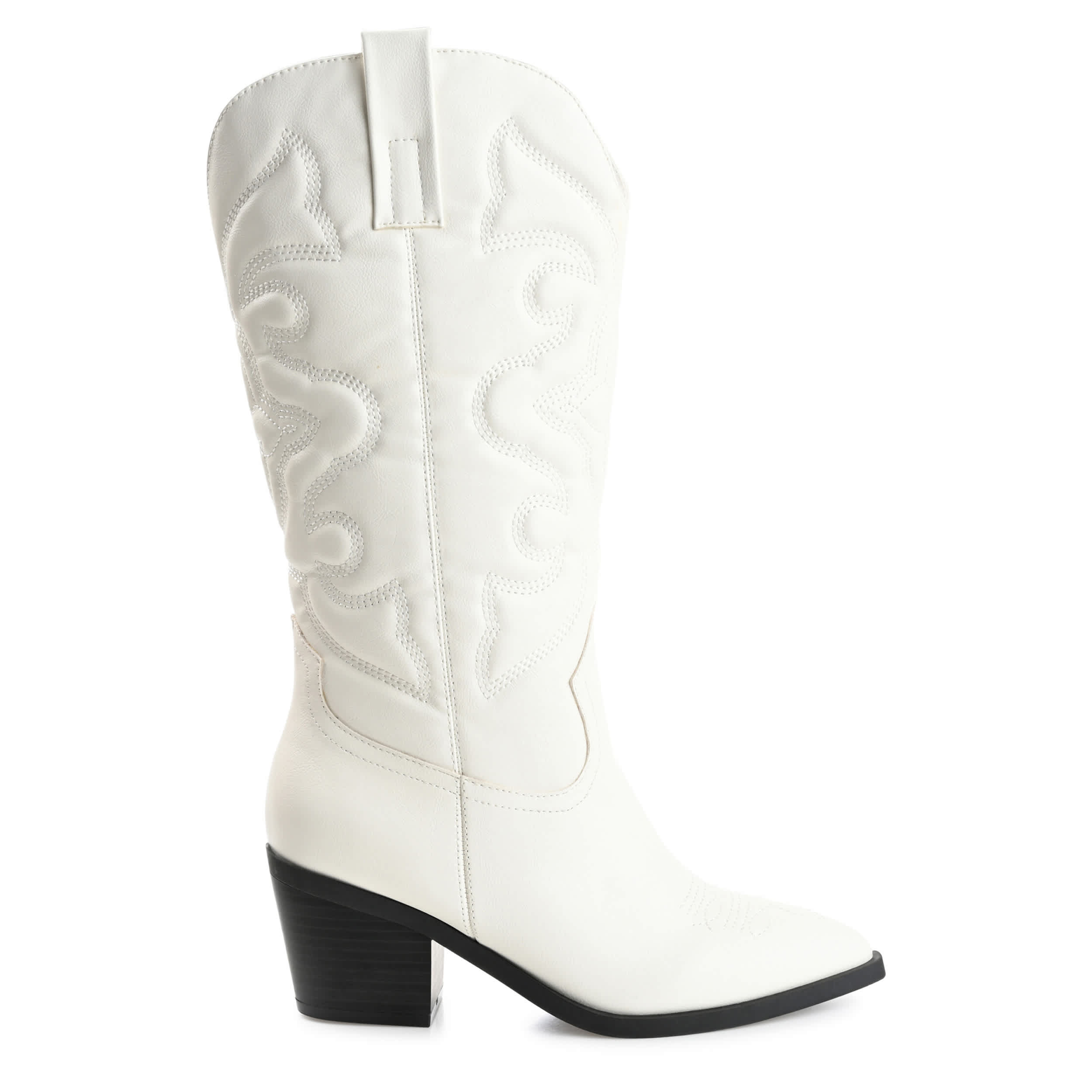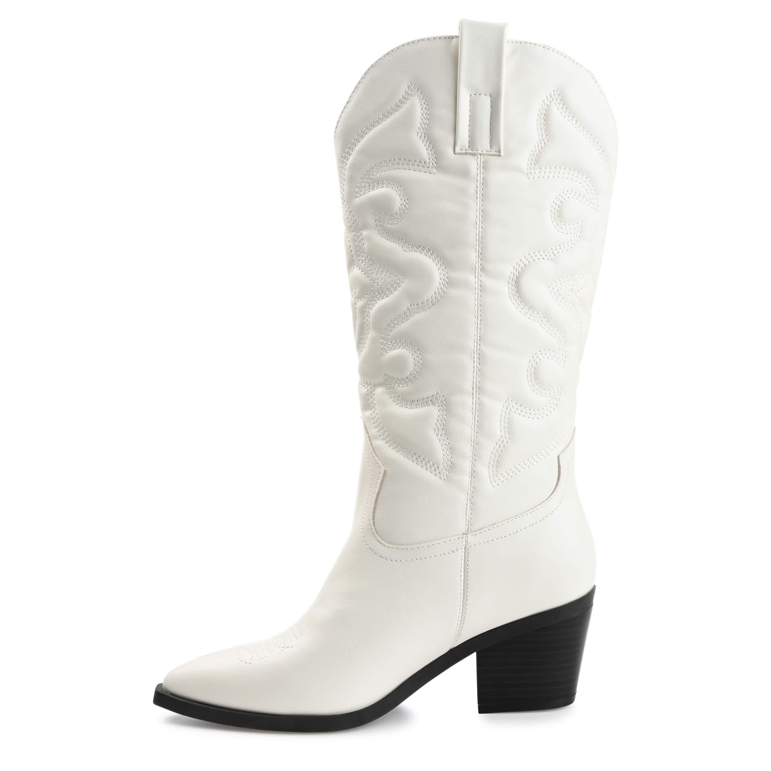 Modern up your cowgirl style with the Chantry WC boot from Journee Collection. Featuring a faux leather upper with the Western flair you love, this boot has a Tru Comfort Foamâ„¢ insole for all-day cushioning. The classic chunky heel offers a stylish lift.