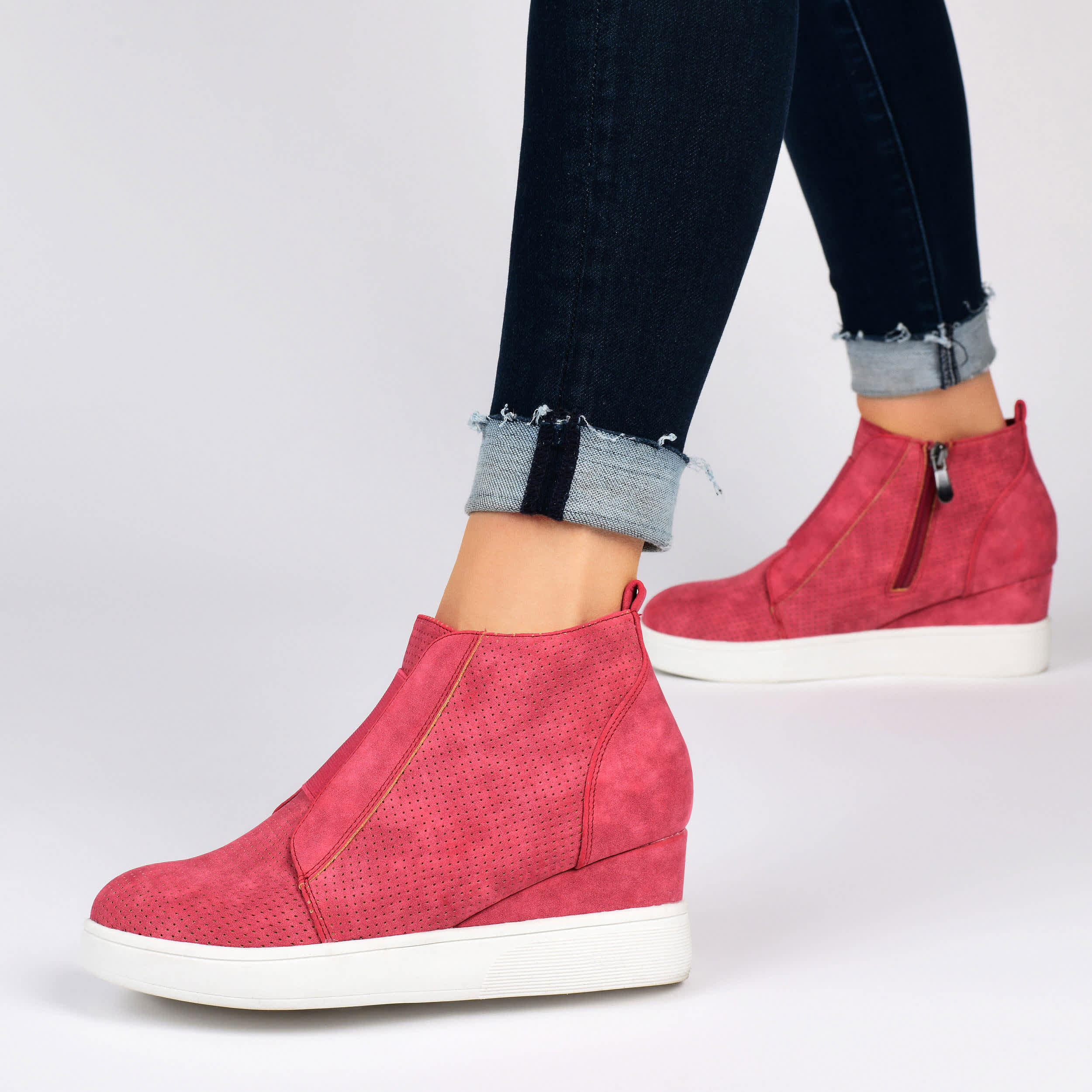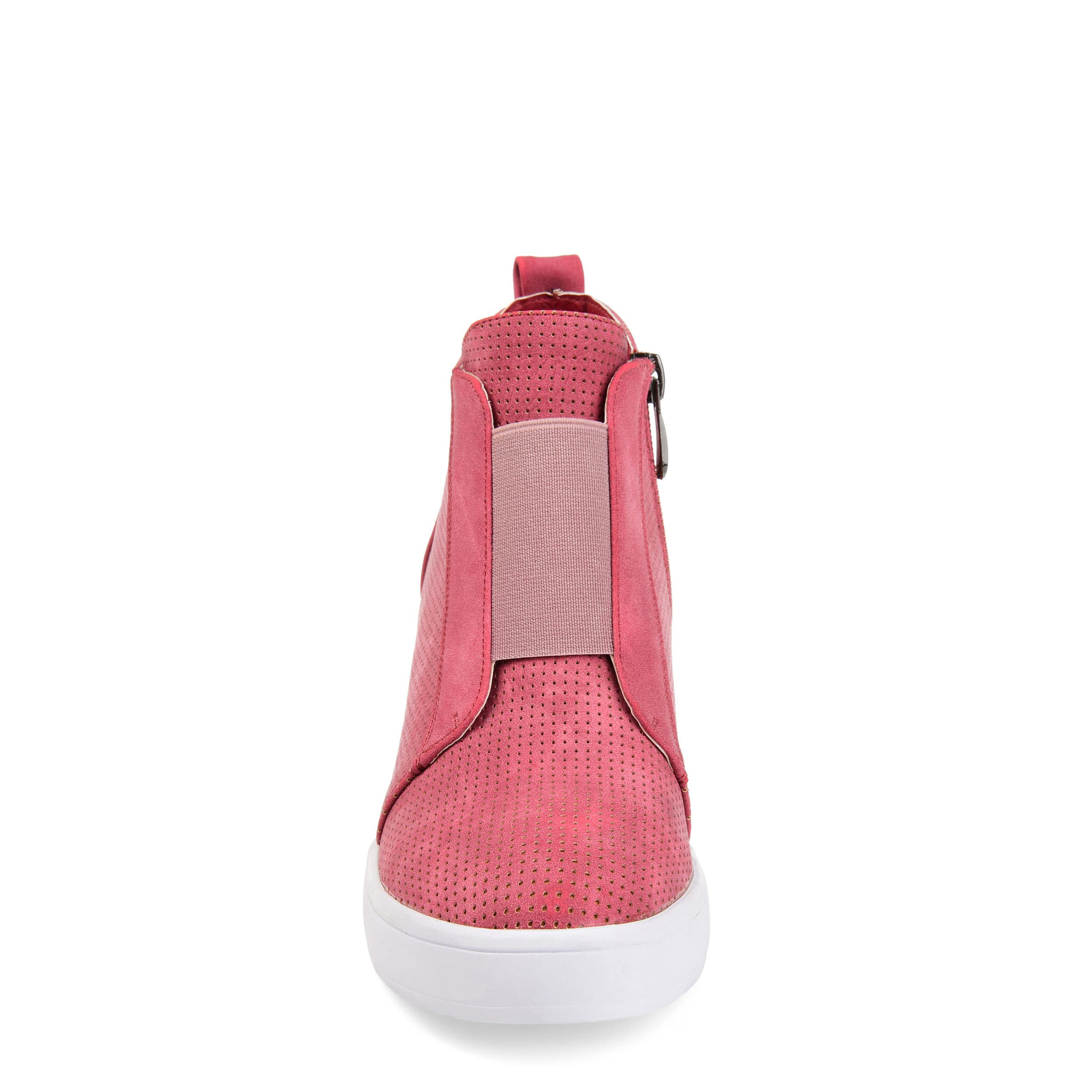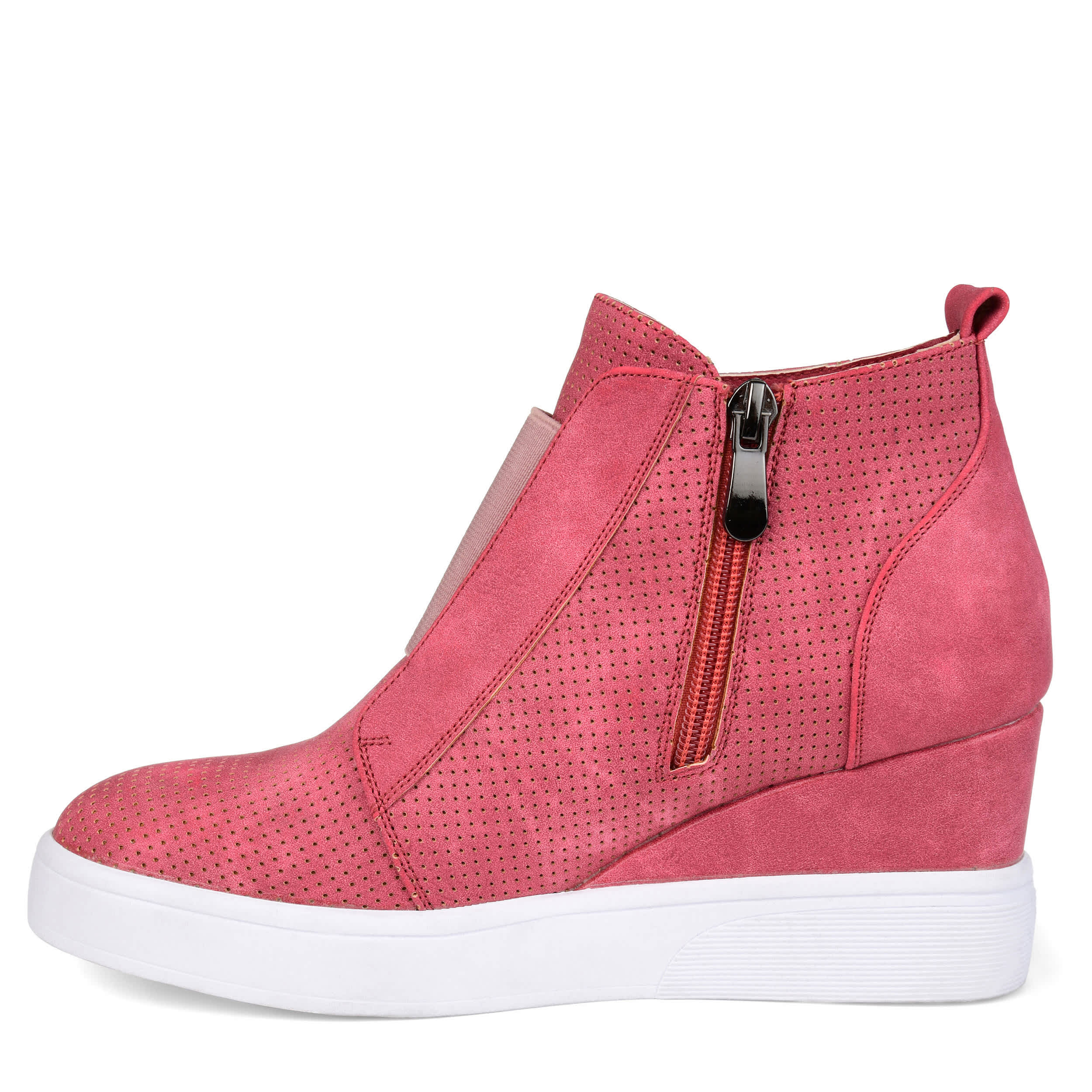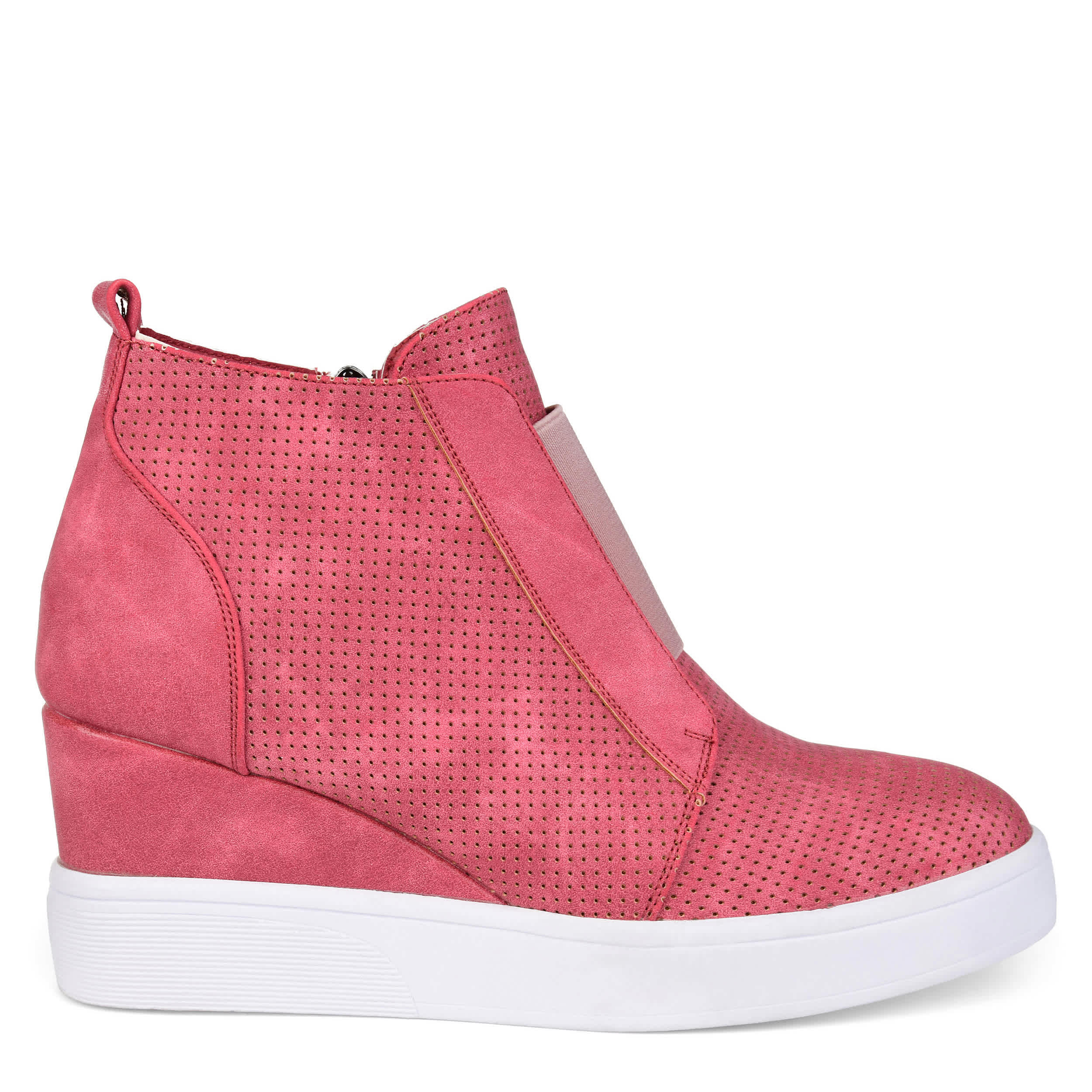 Stylishly update your sporty looks in the Clara wedge sneakers from the Journee Collection. With a 2½" covered wedge heel, these sneakers lift your fashion sense and offer ease of wear with an elastic panel that helps you slip into a comfy cushioned footbed.