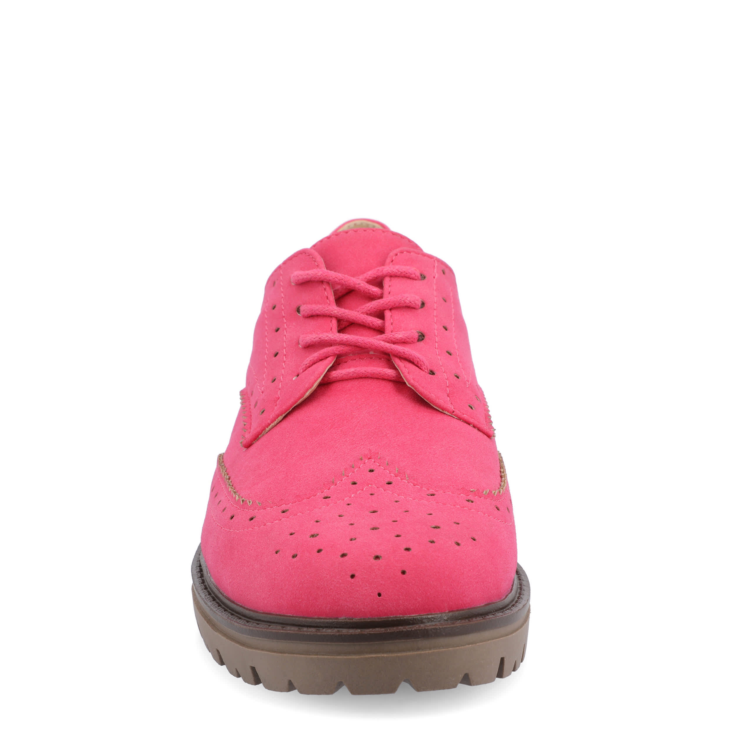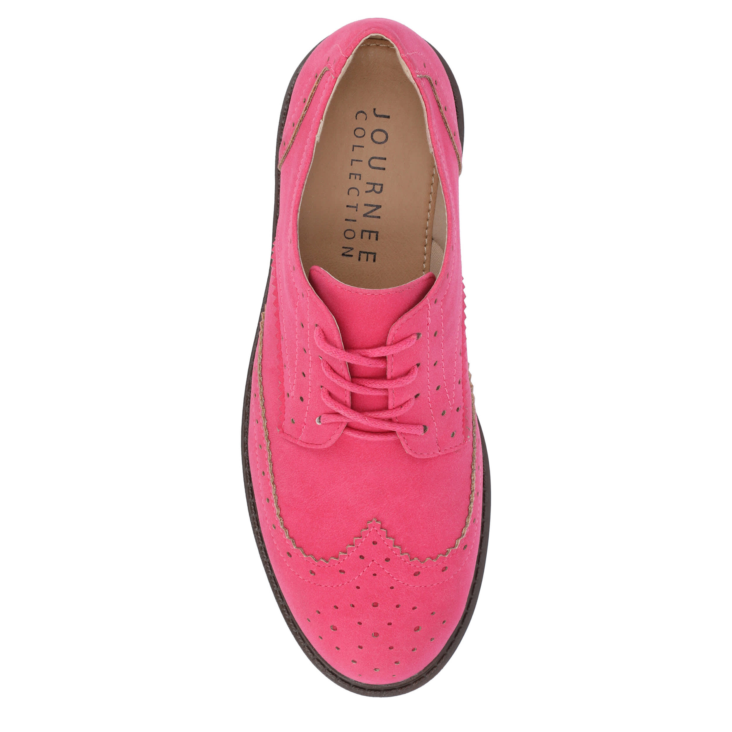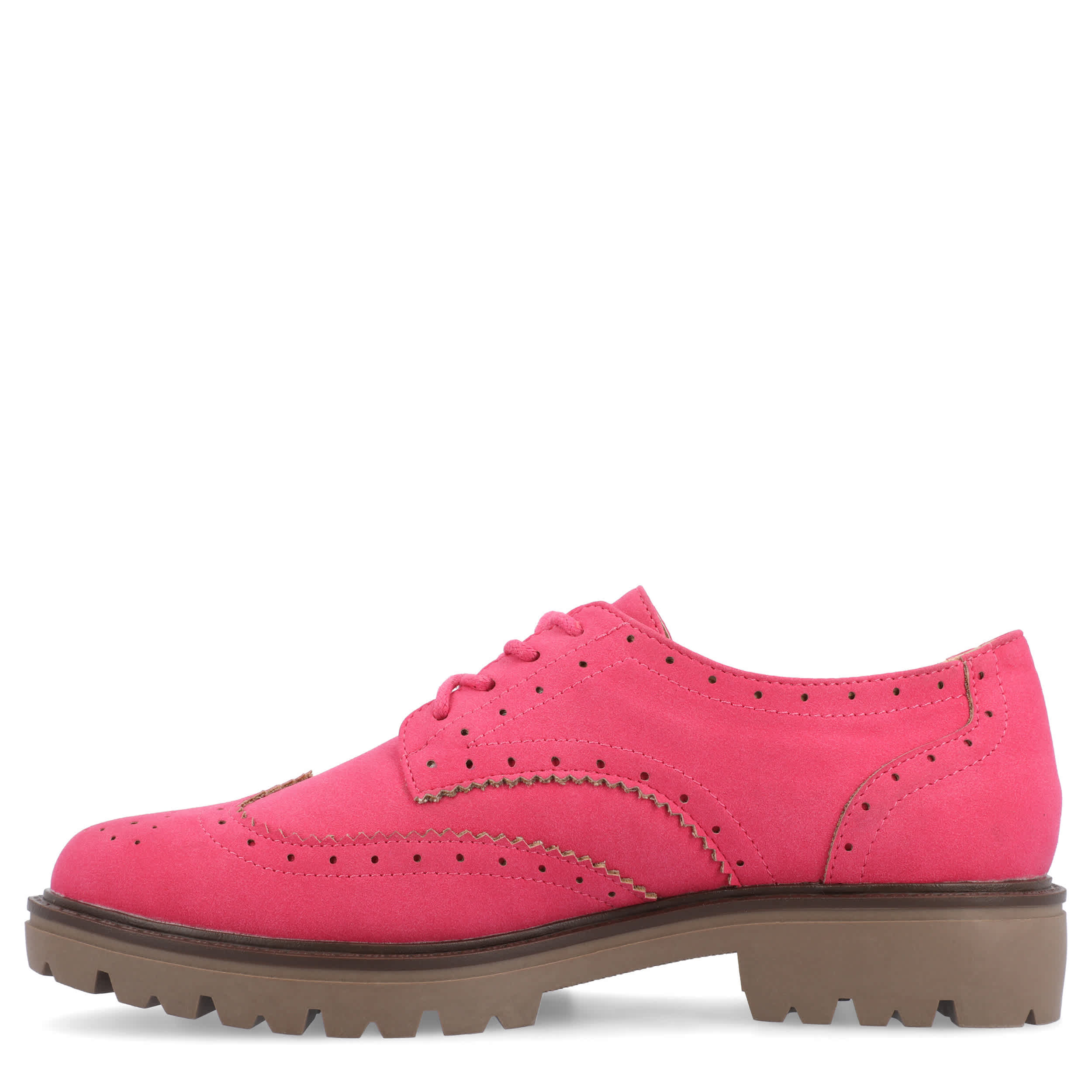 Vintage comfort looks good in the Claudiya women's oxford from Journee Collection. Featuring a vegan leather upper with wingtip detailing and an almond toe, this lace-up shoe is practically preppy in style. The Memory Foam footbed cushions while the lug outsole supports the low heel.